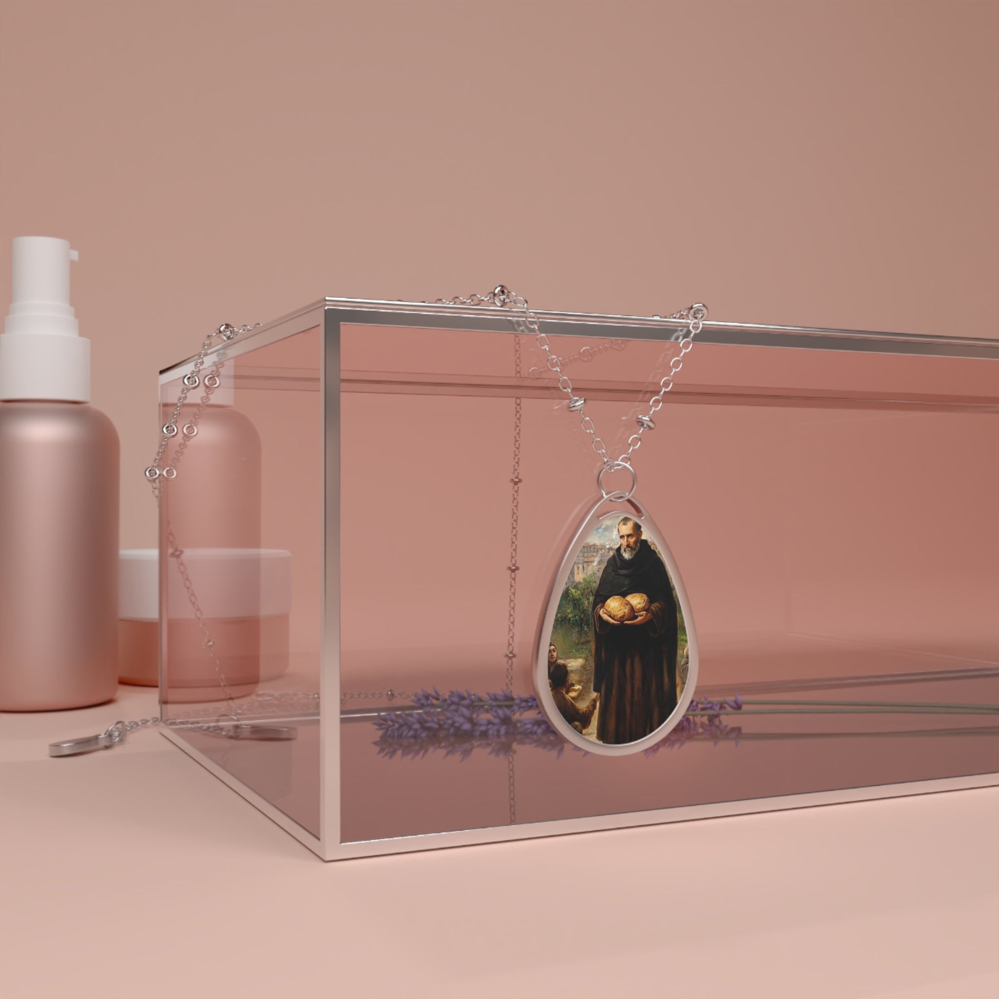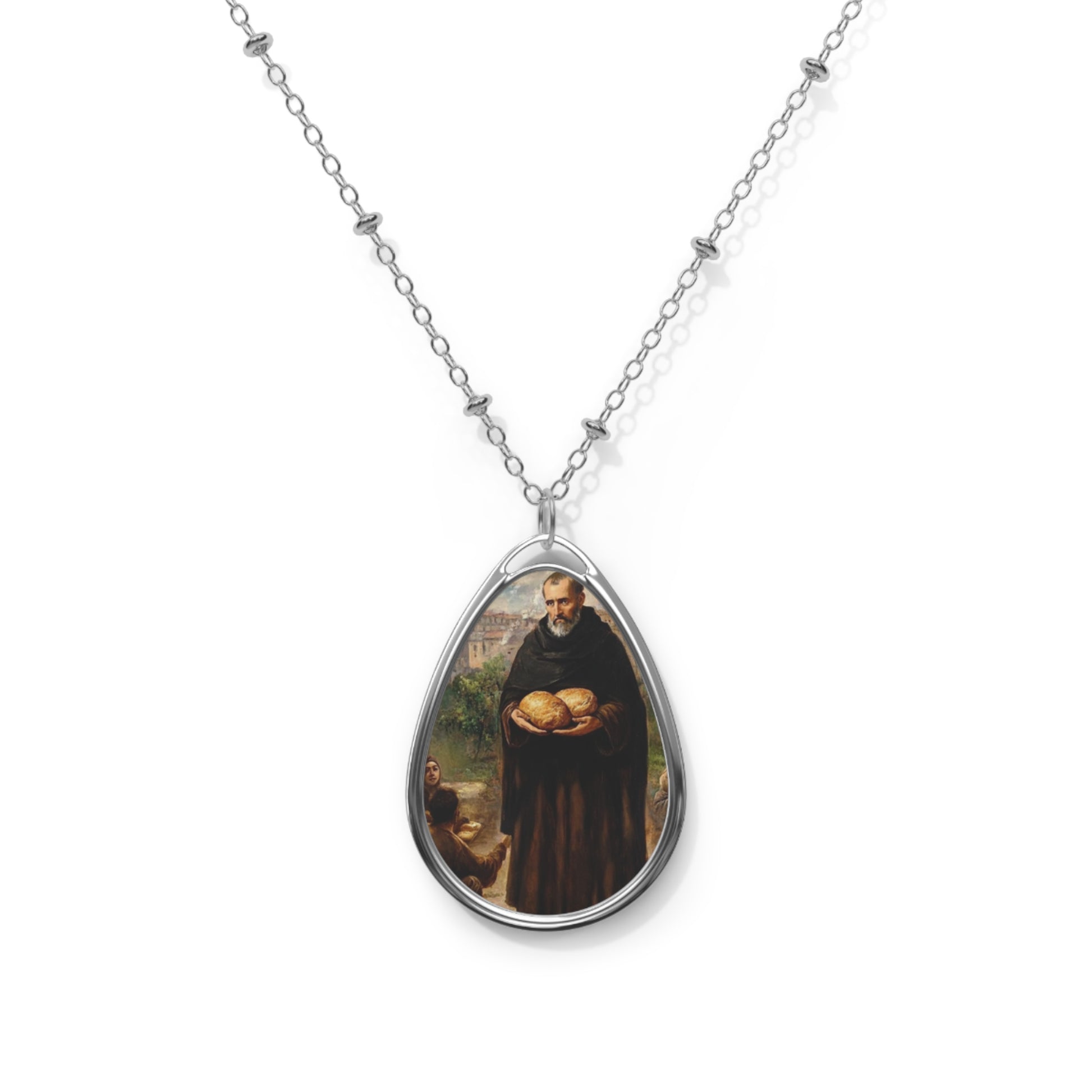 Albert Adam Chmielowski Necklace Drop Oval Pendant Silver Tone Medal