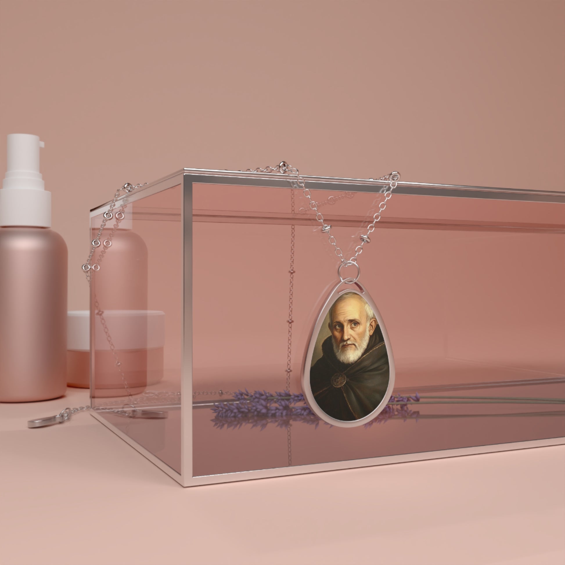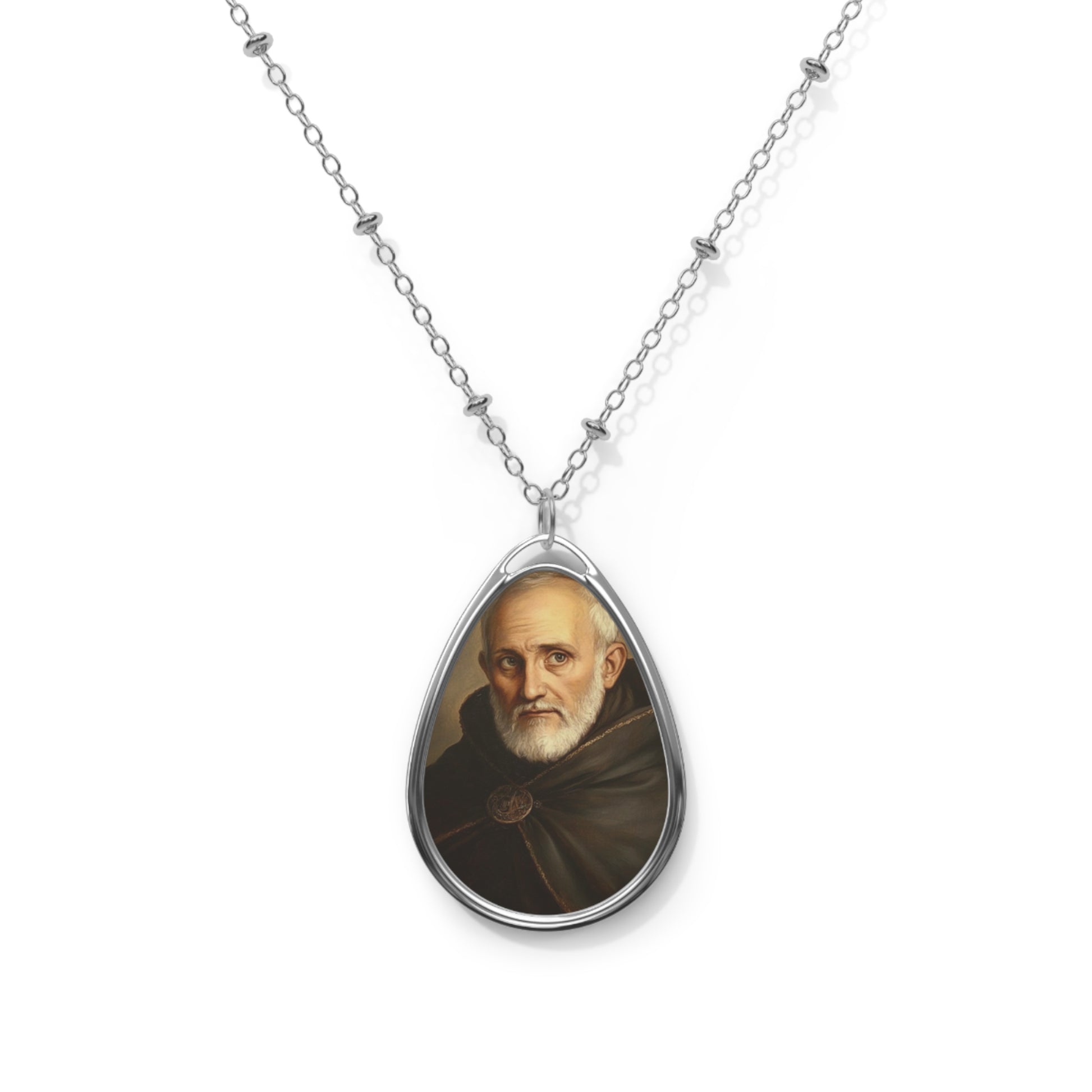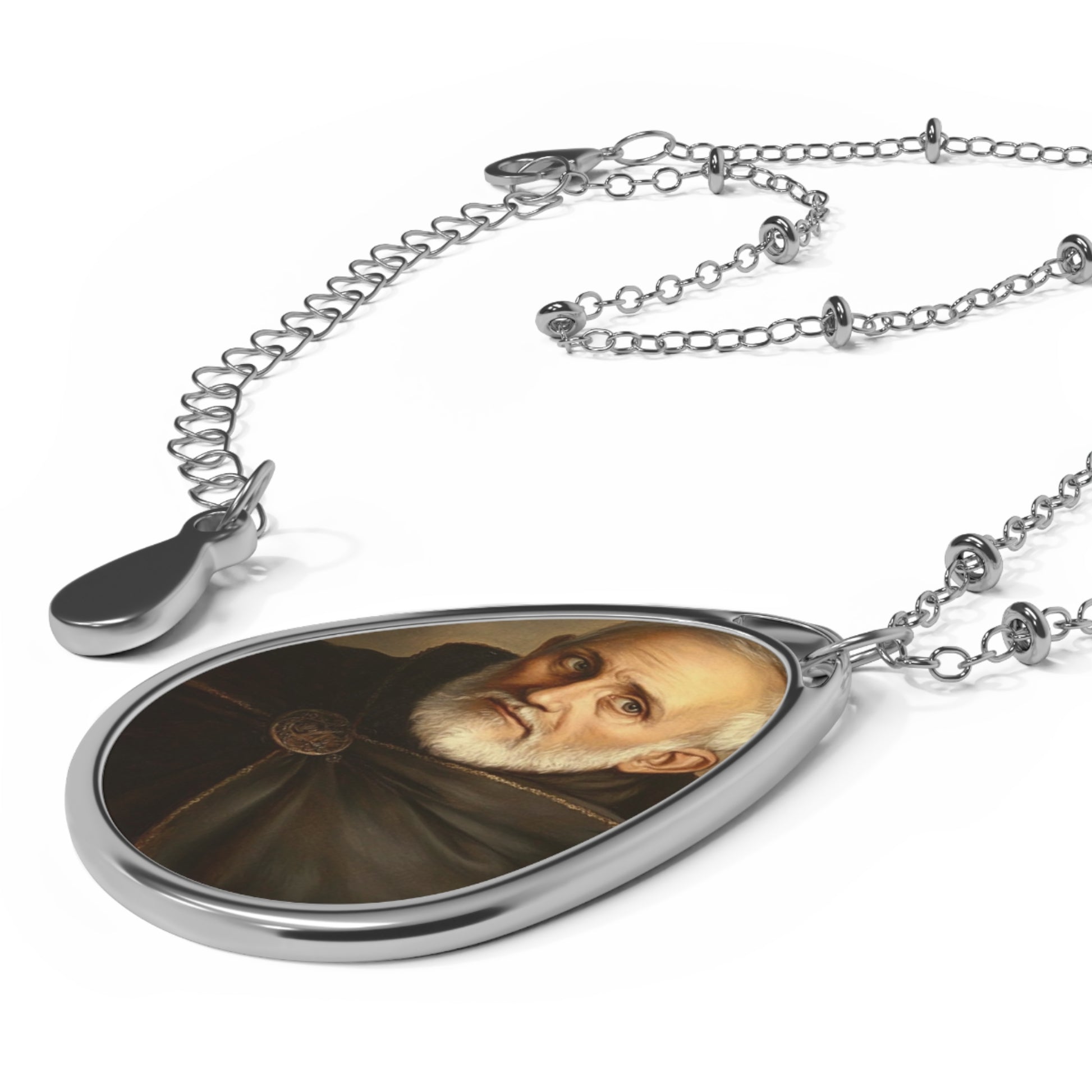 Albert Chmielowski Necklace Drop Oval Pendant Silver Tone Medal