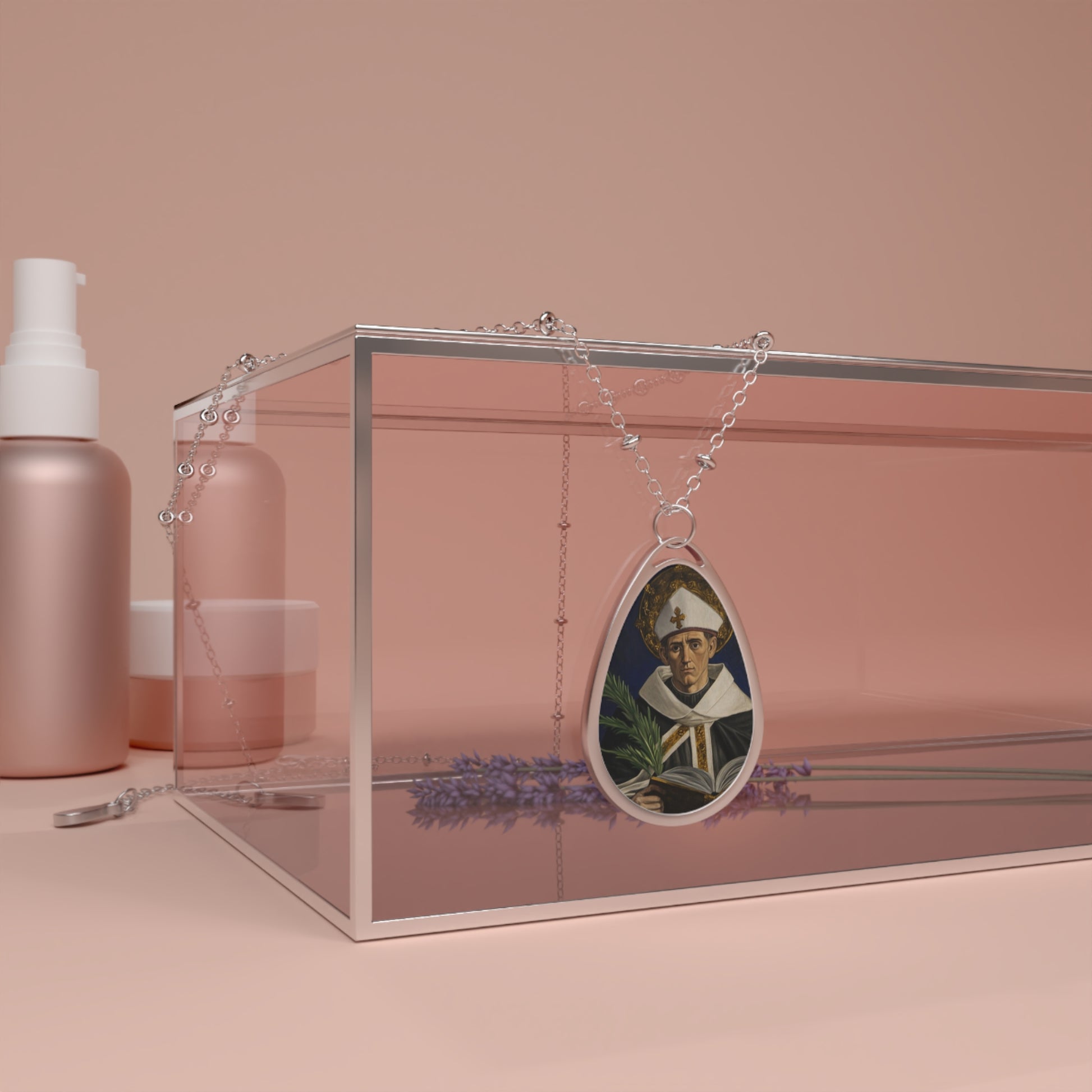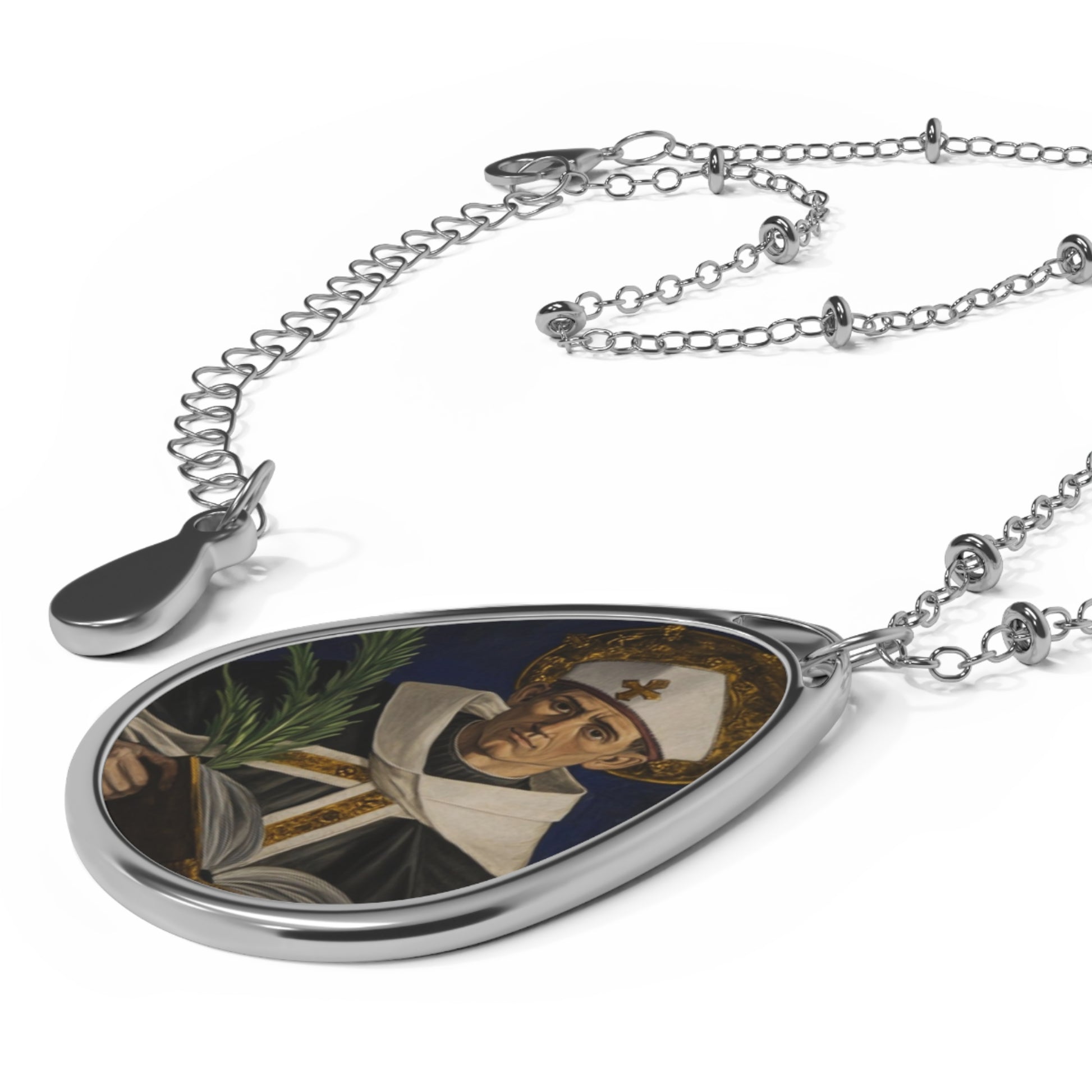 Albert the Great Necklace Drop Oval Pendant Silver Tone Medal