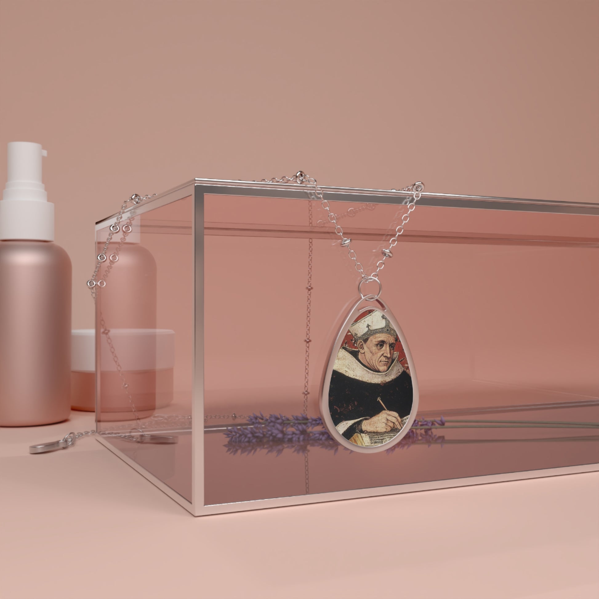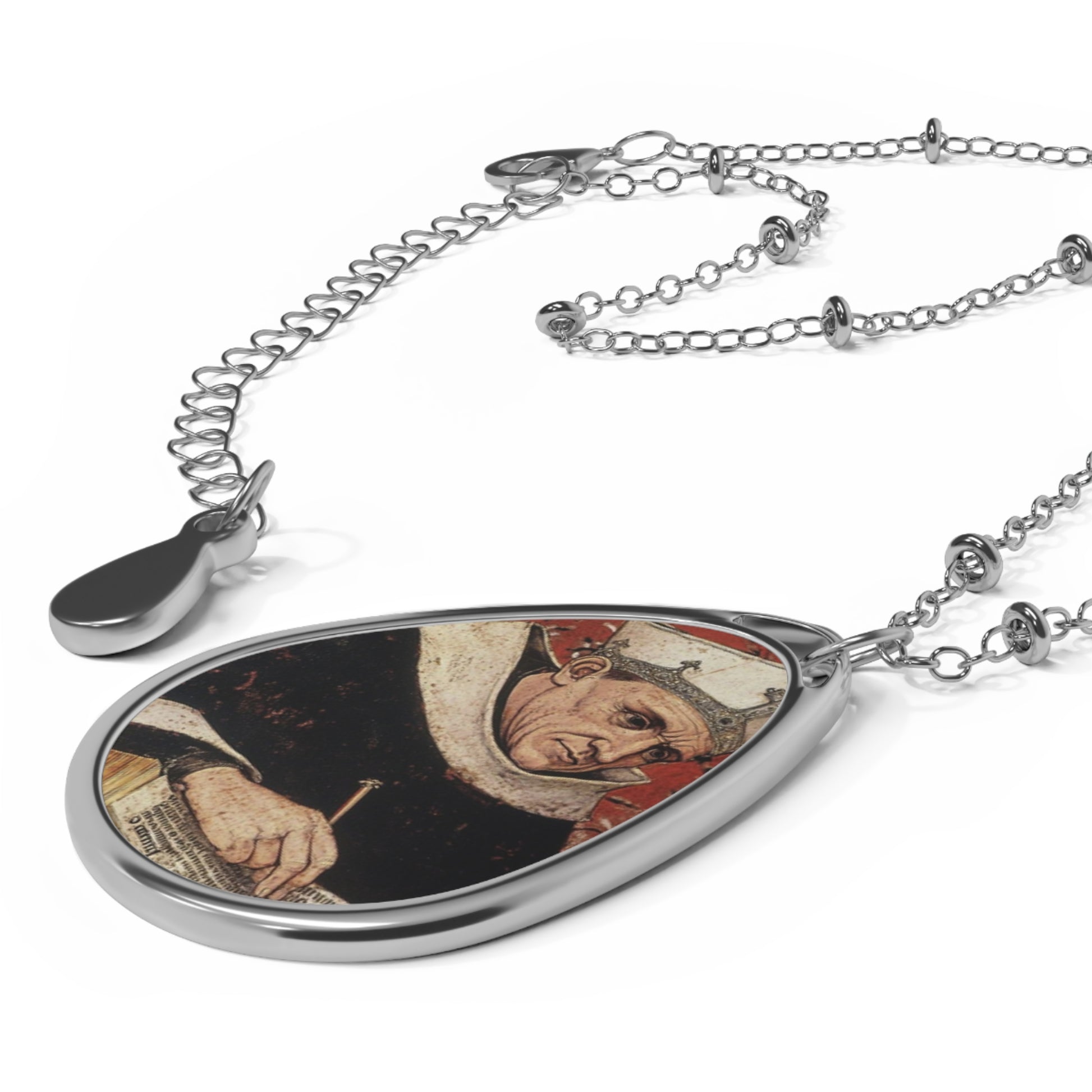 albertus Magnus Necklace Drop Oval Pendant Silver Tone Medal