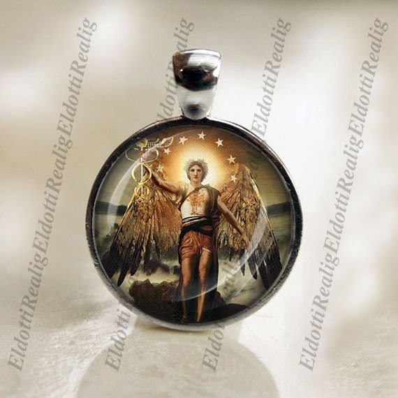 Archangel Ariel Christian Silvertone Medal Pendant Cabochon Religious Jewelry