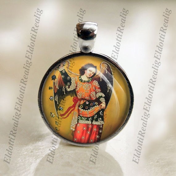 Barachiel the Archangel Christian Silvertone Medal Pendant Cabochon Religious Jewelry