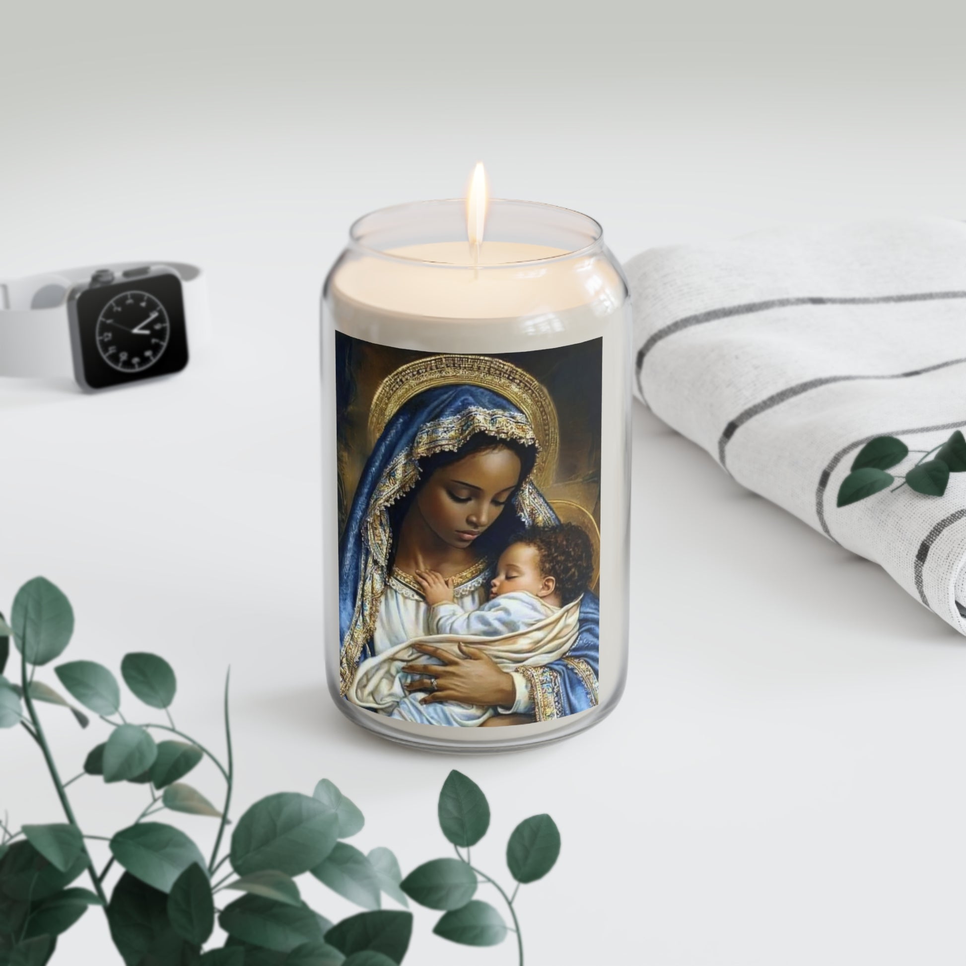 Black Mary African Catholic Serenity Scented Candle, 13.75oz | Relaxation Gift, Home Decor, Calm Atmosphere, Religious Decor
