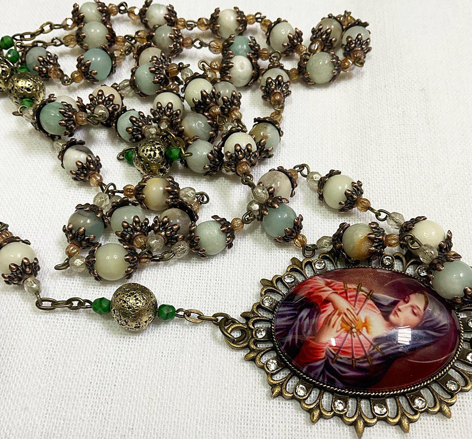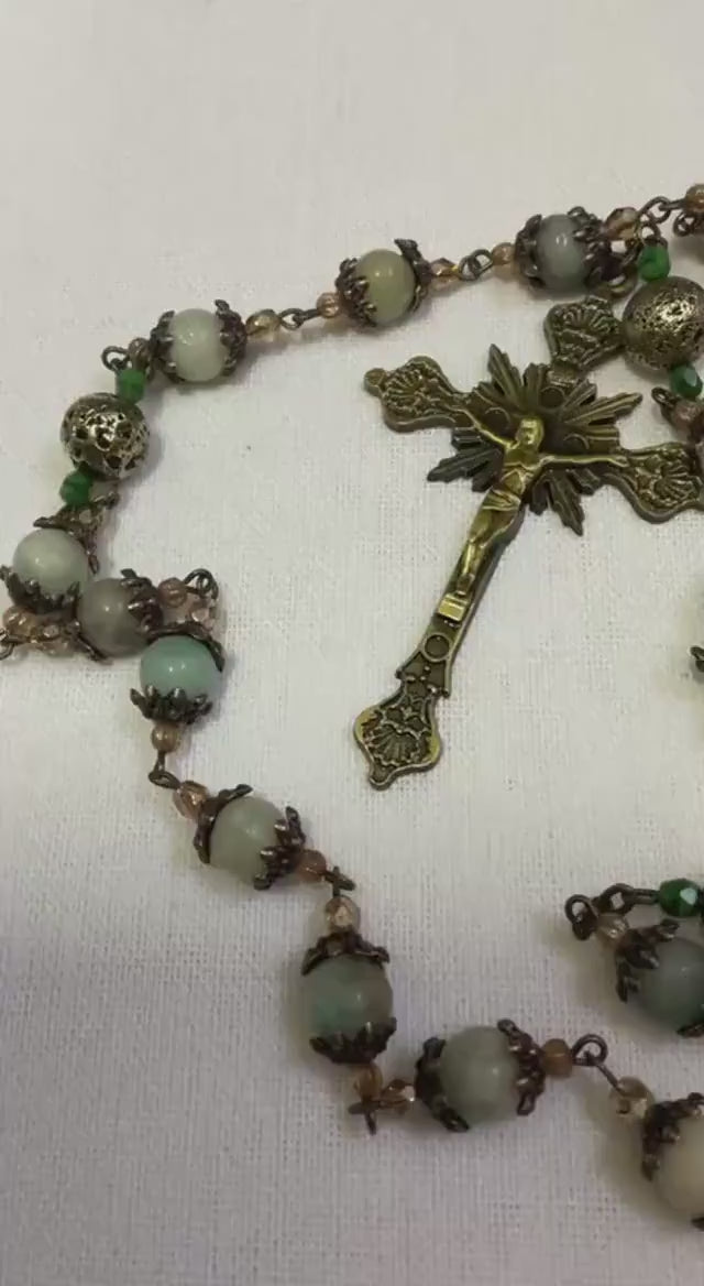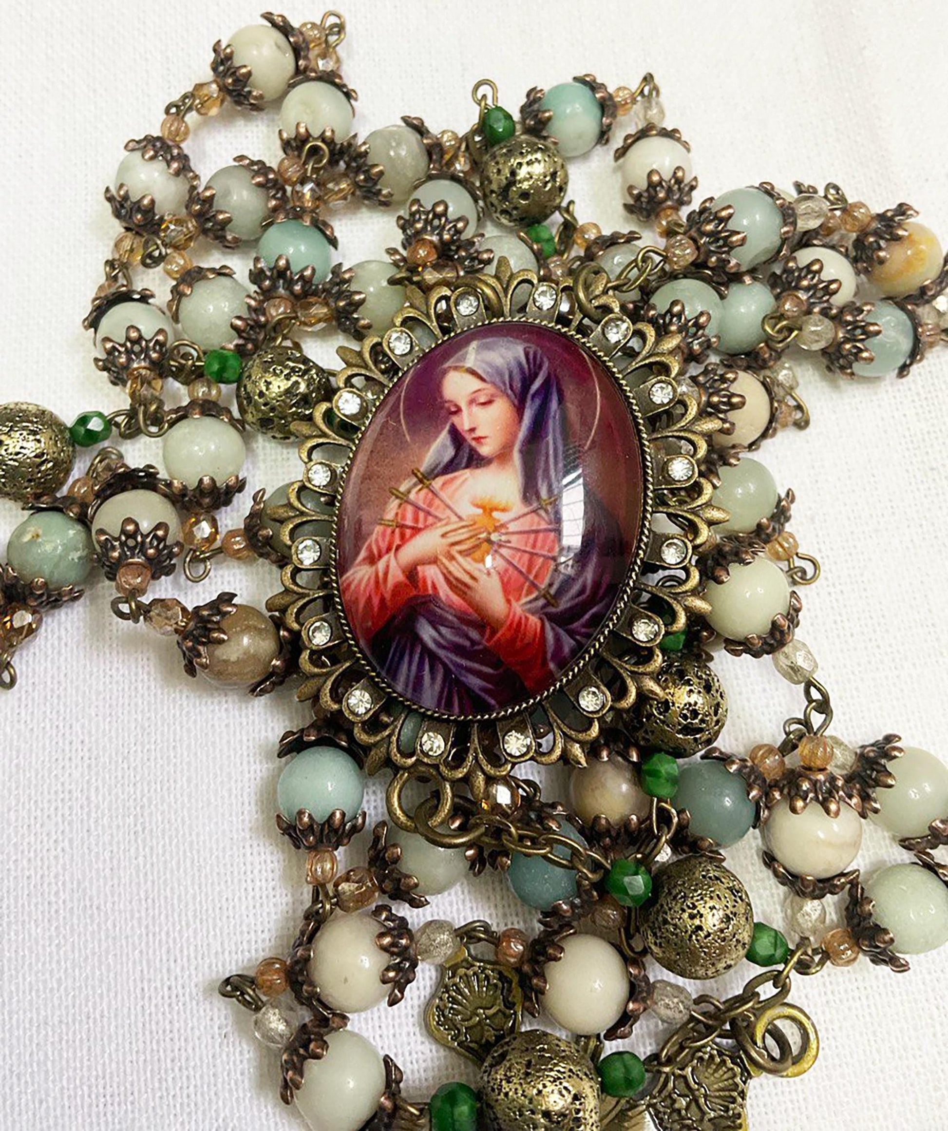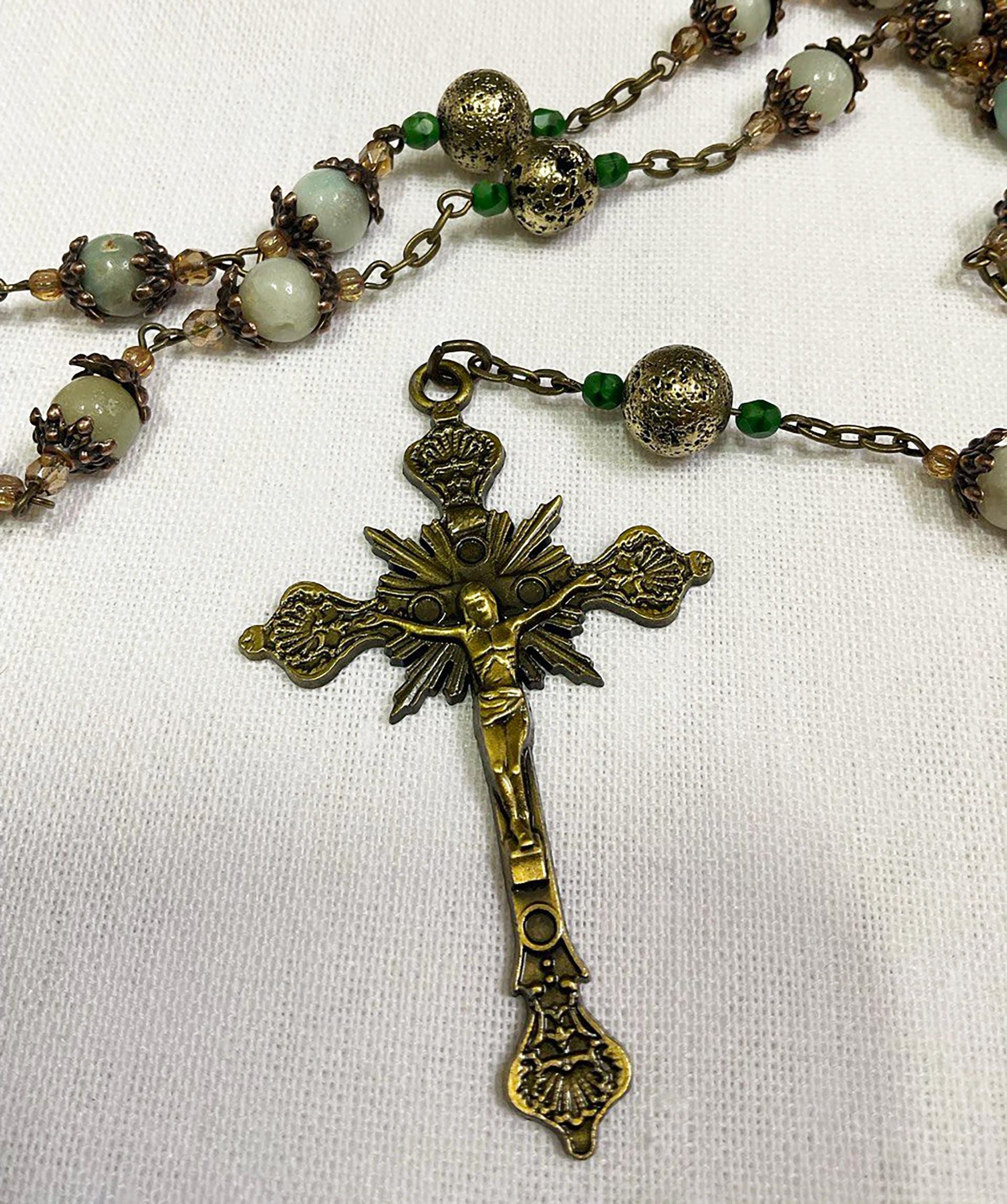 Catholic Heirloom Bronze Rosary Our Lady of Sorrows | Handmade with Amazonite Gemstones + Czech Glass Beads