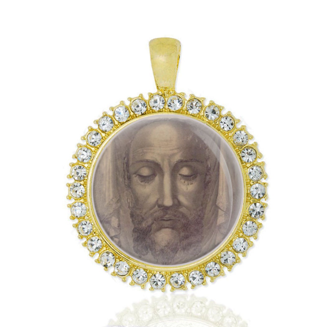 Devotion to the Holy Face of Our Lord Jesus Christ Gold tone Rhinestones Pendant