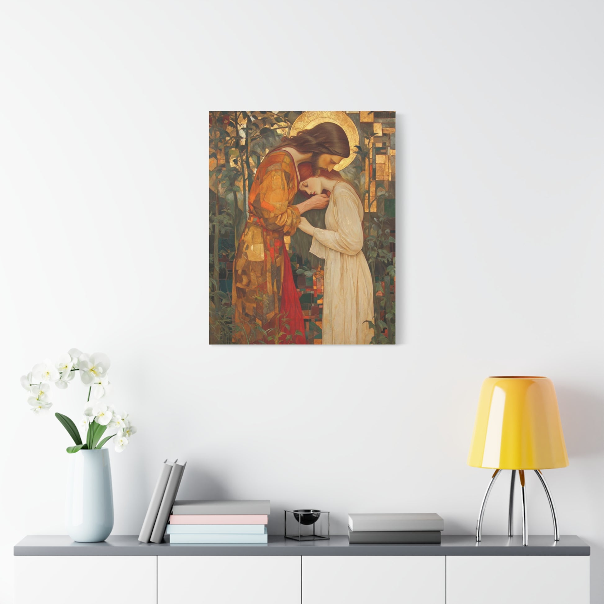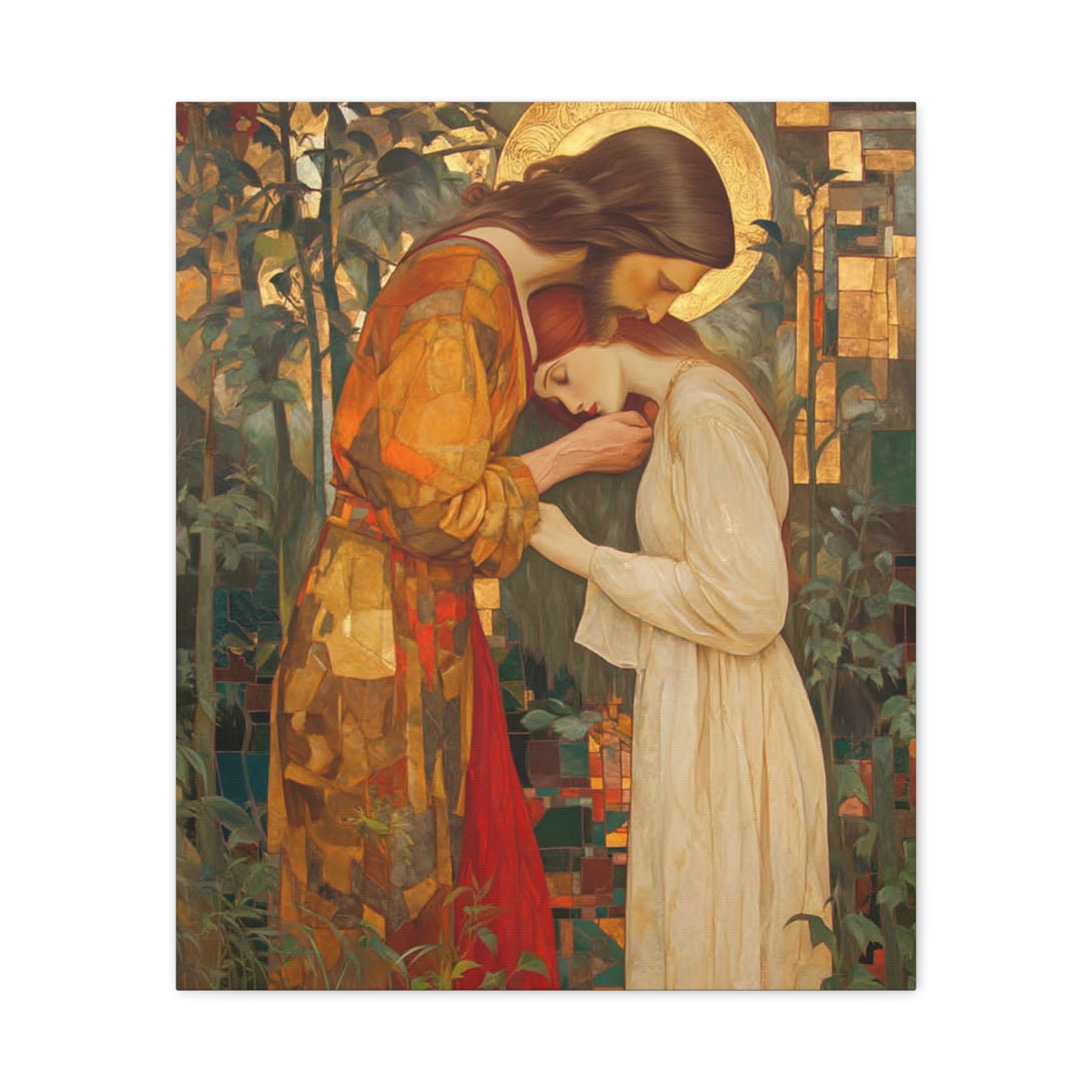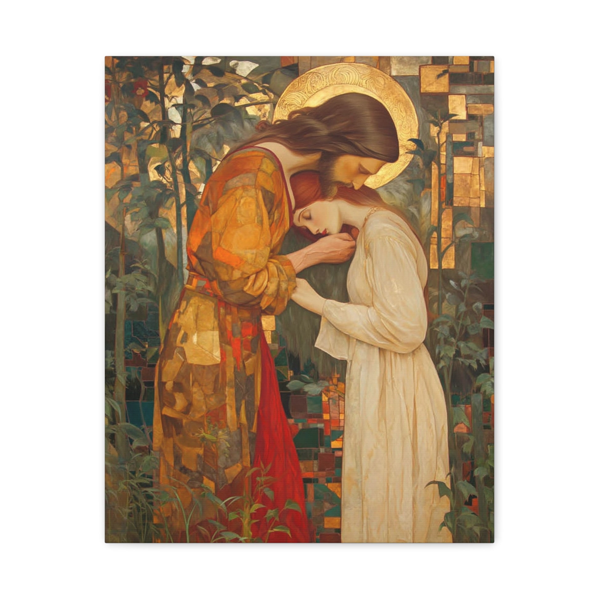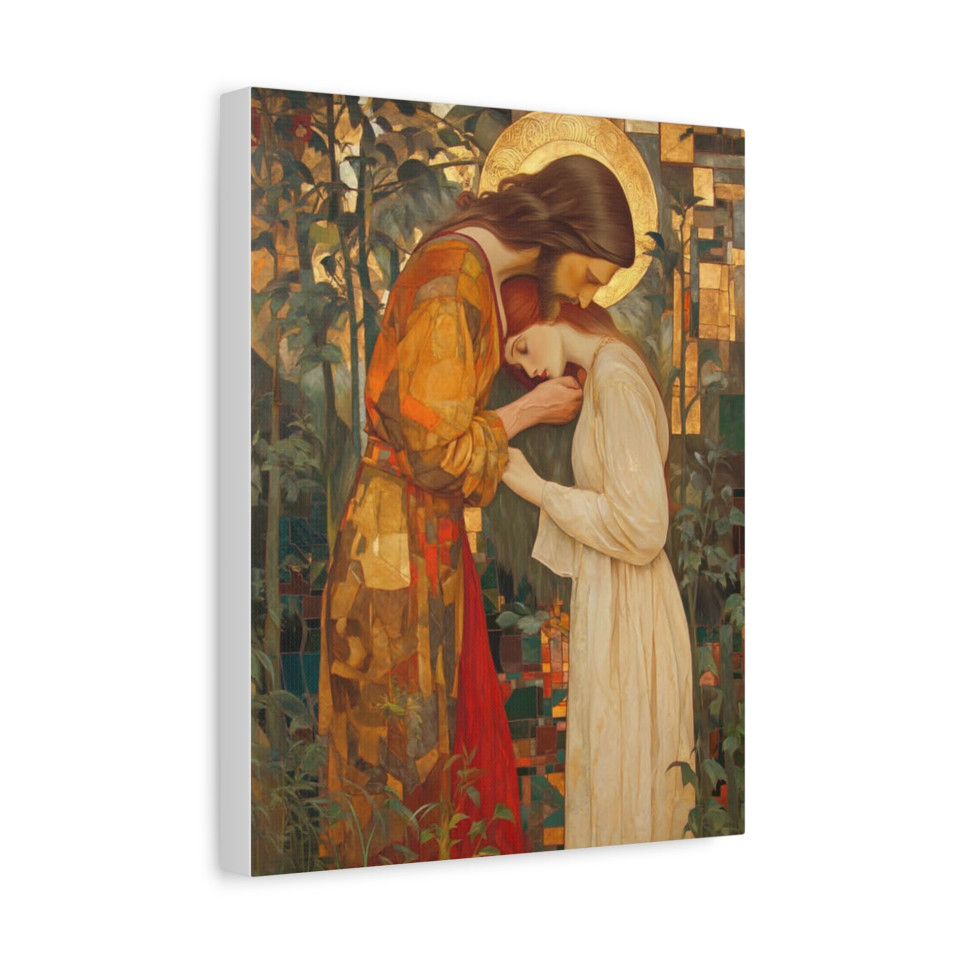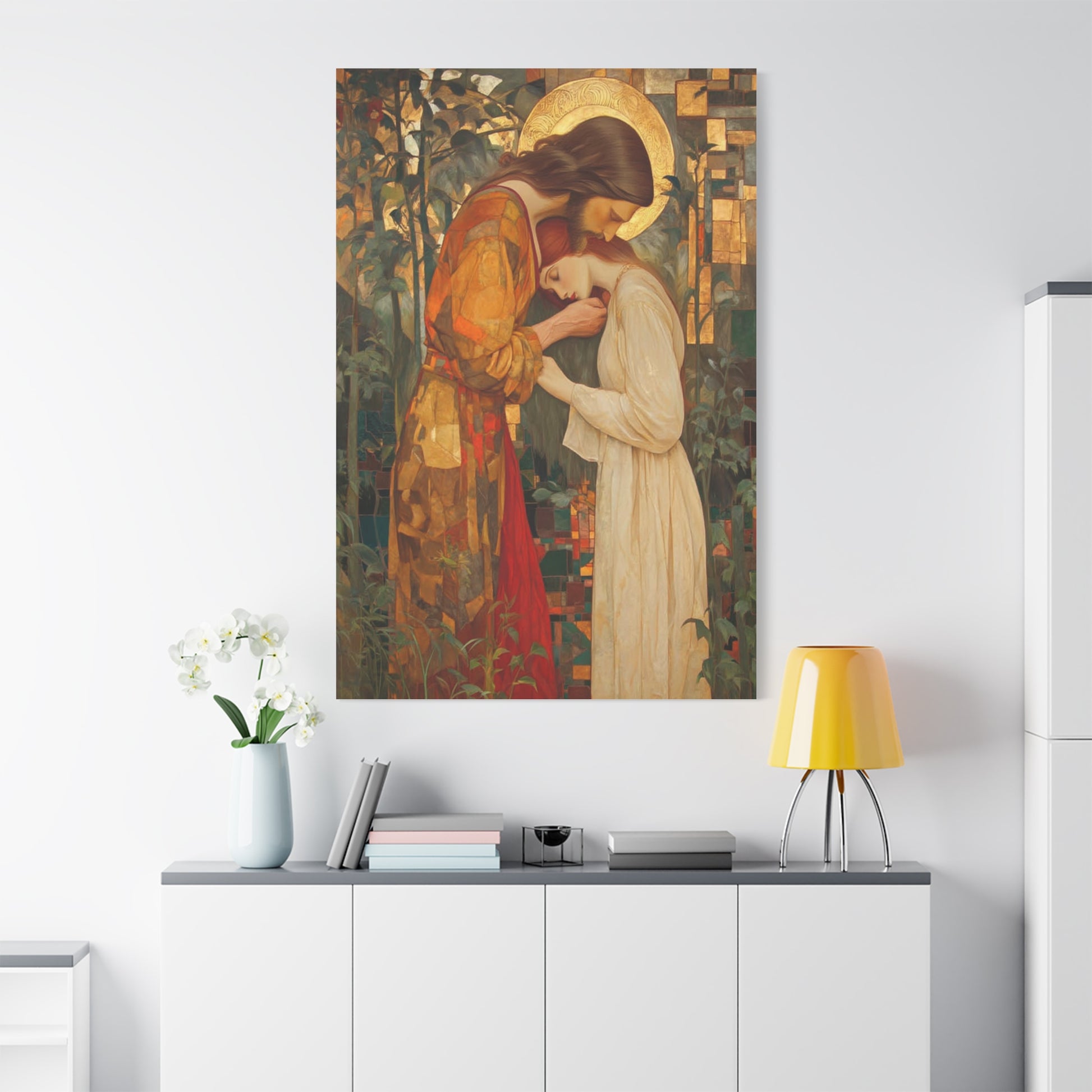 Healing Love - Christ Embracing Mary Magdalene Catholic Canvas Wall Art, Christian Decor