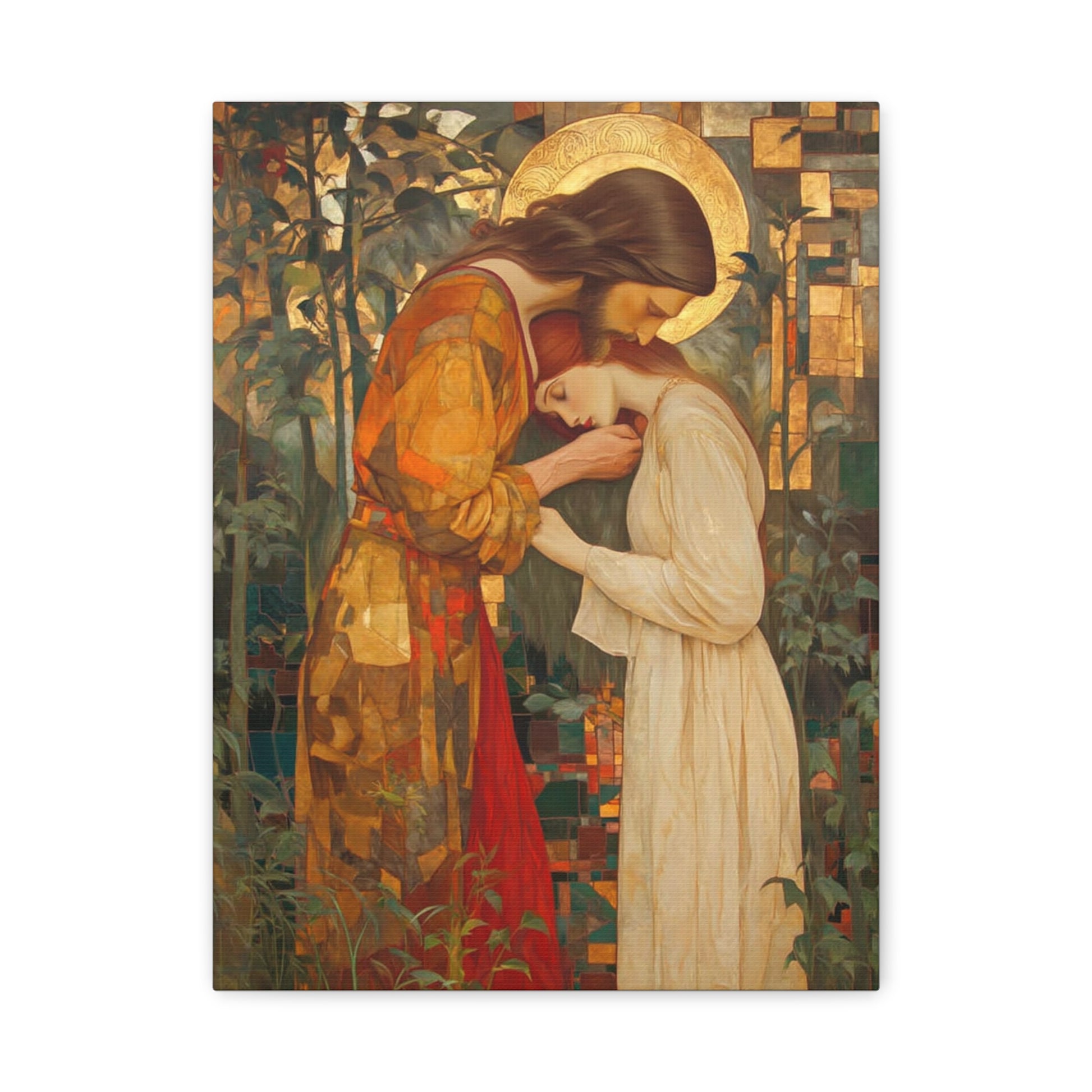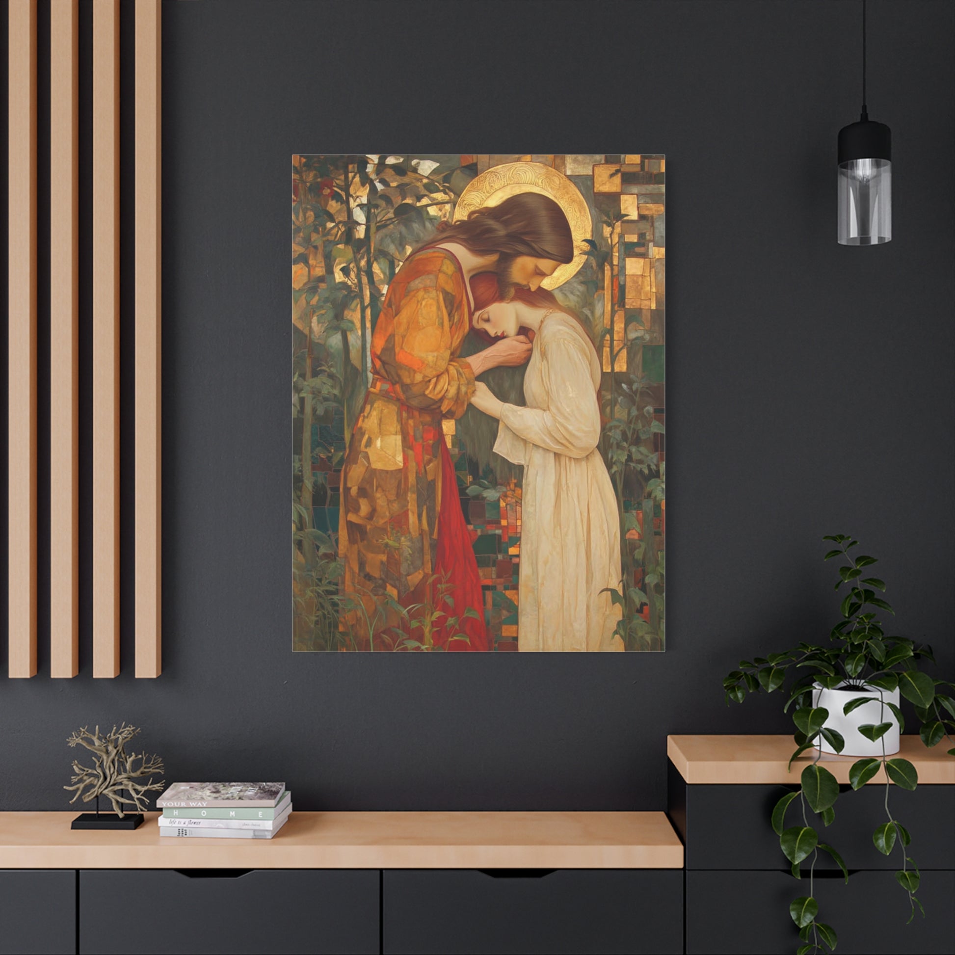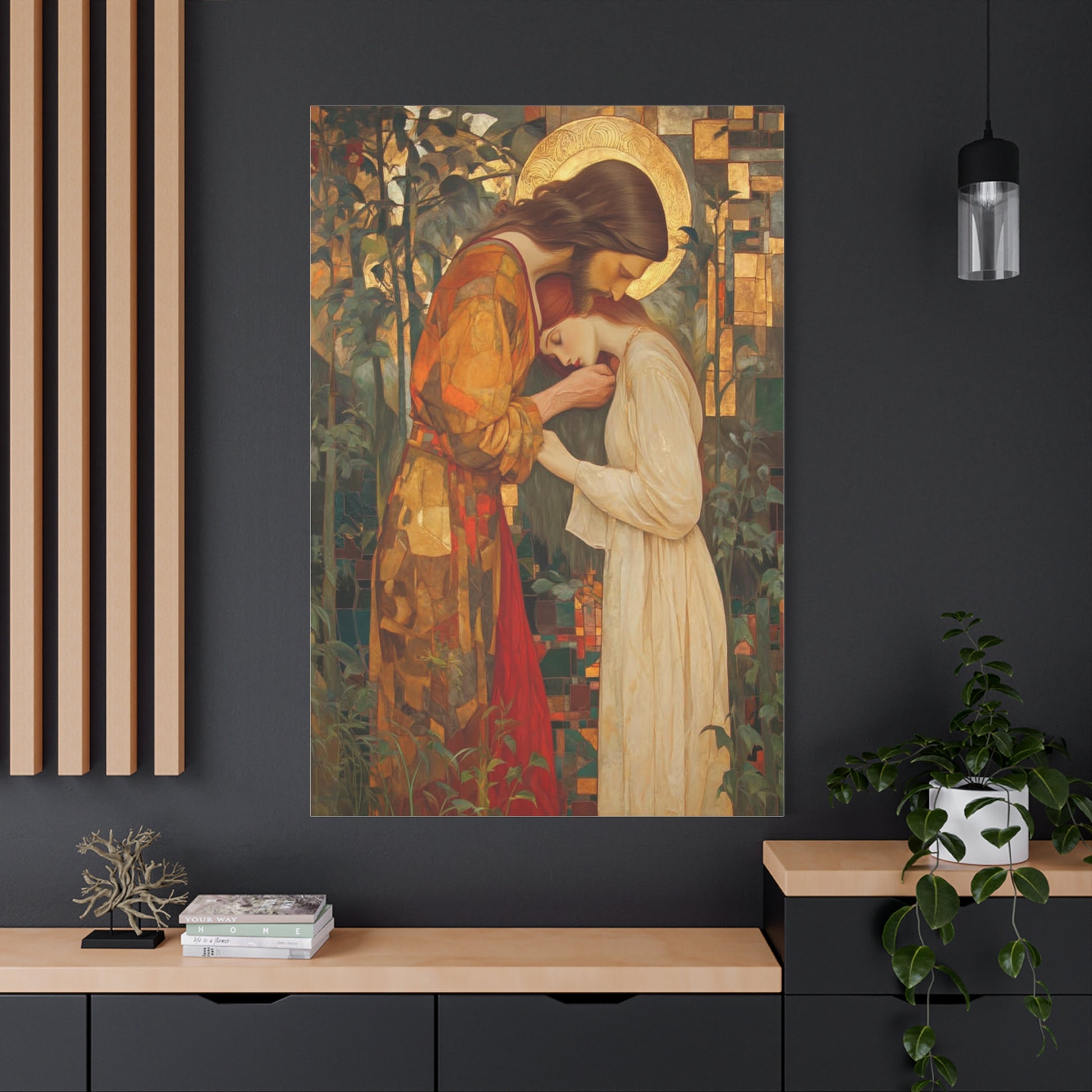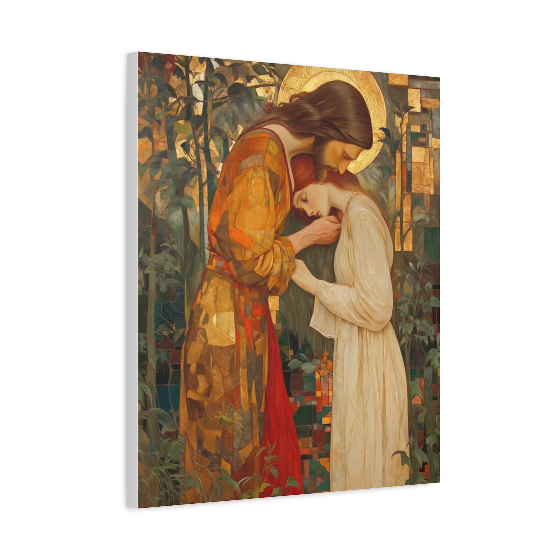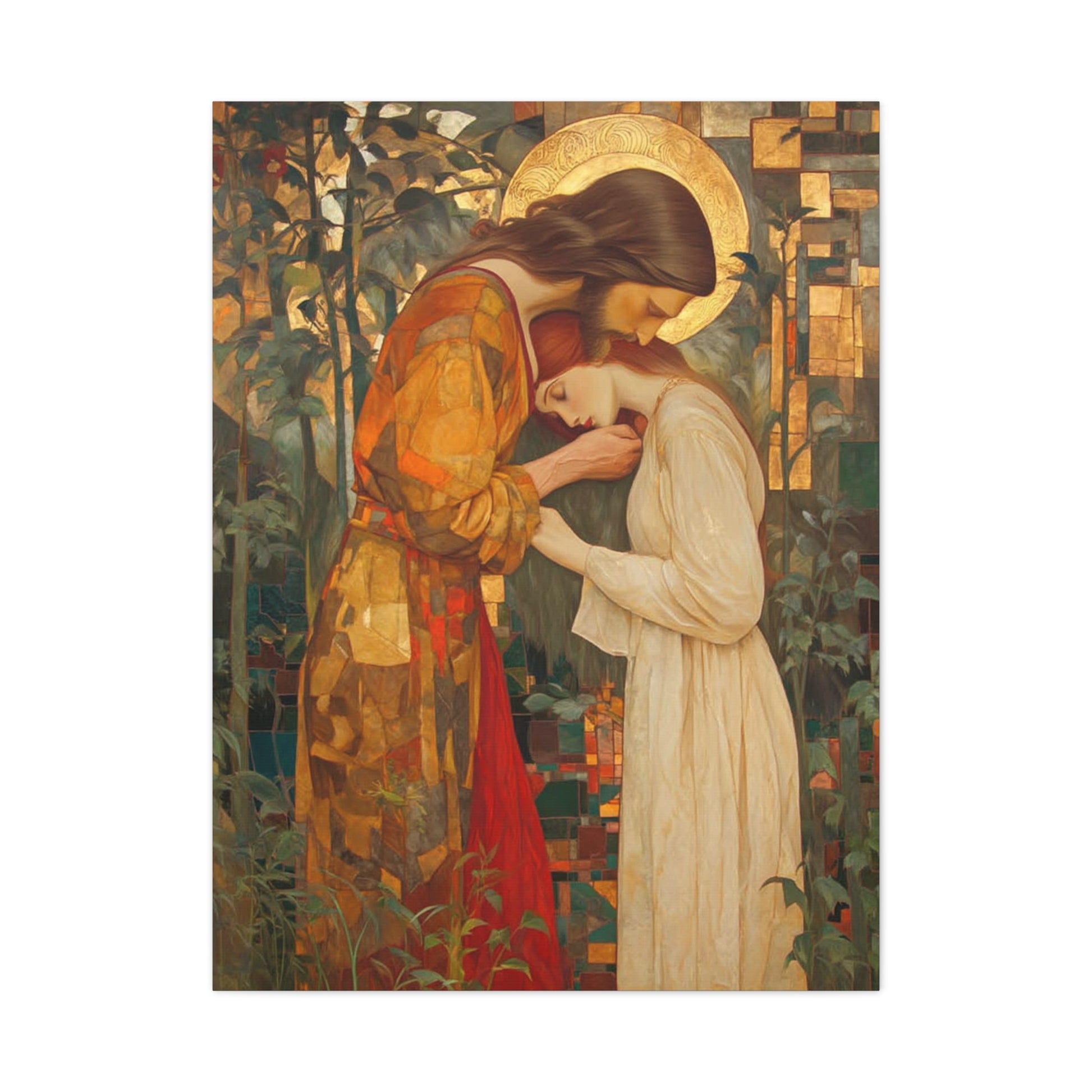 Healing Love - Christ Embracing Mary Magdalene Catholic Canvas Wall Art, Christian Decor
