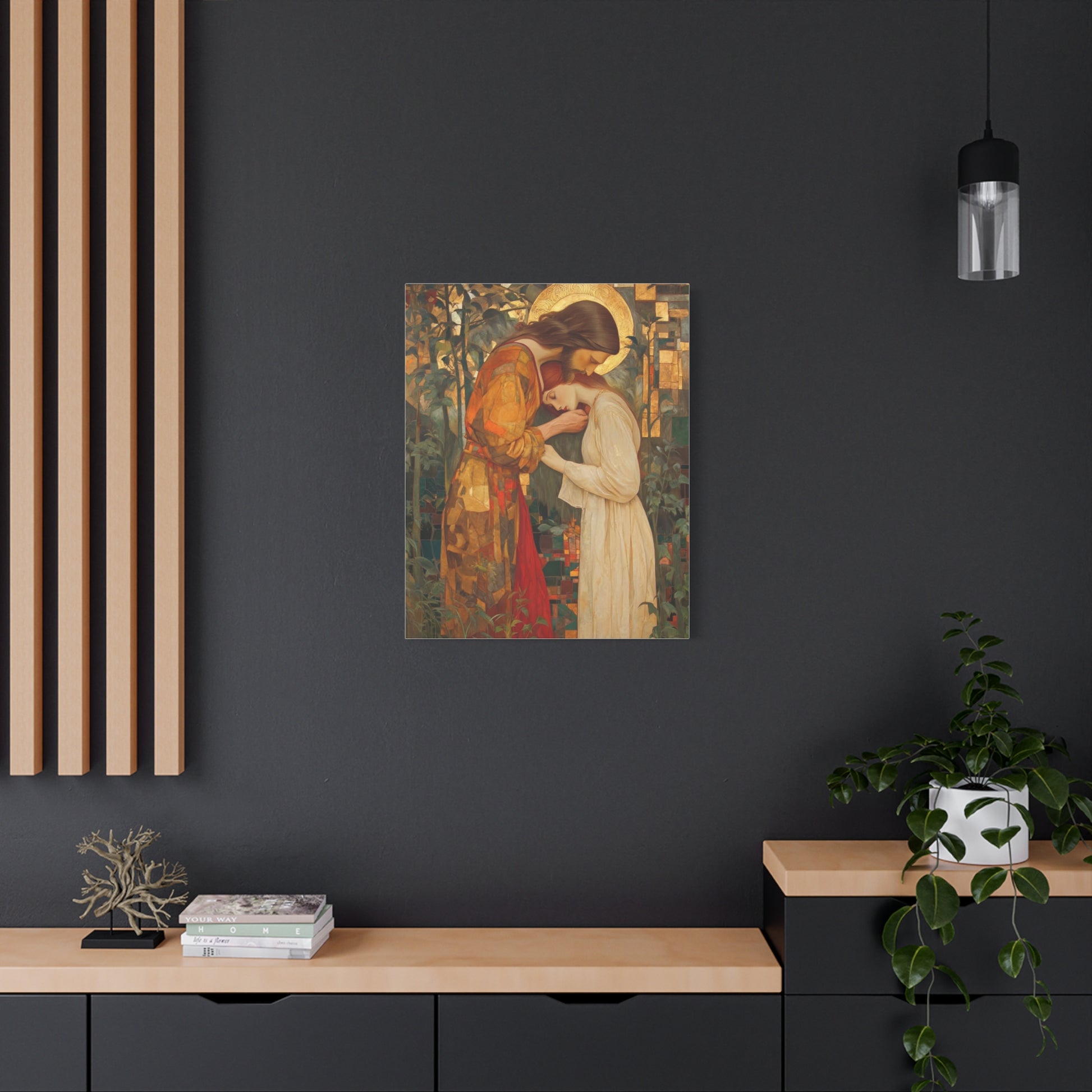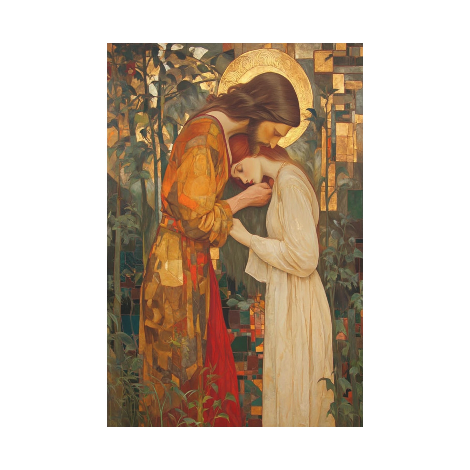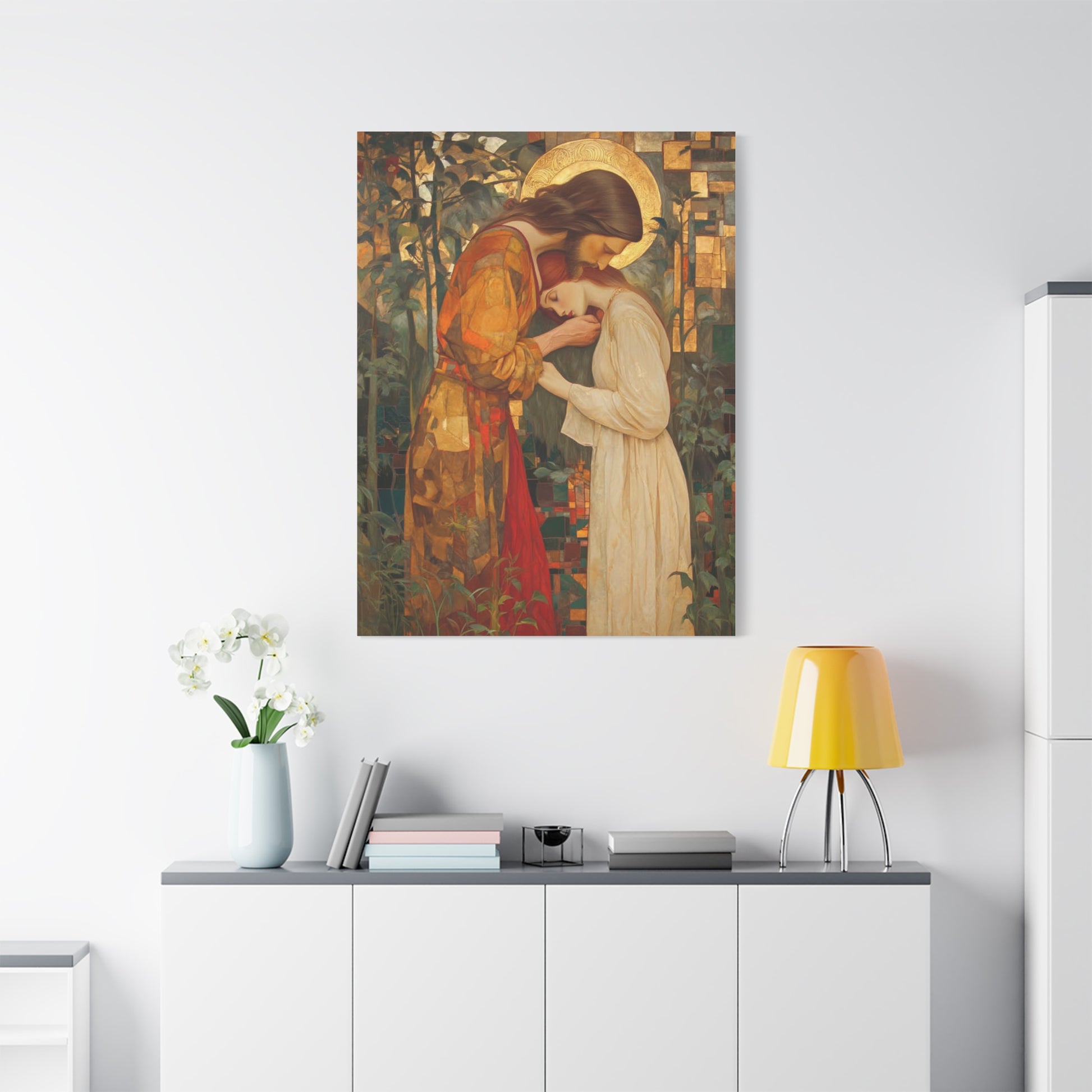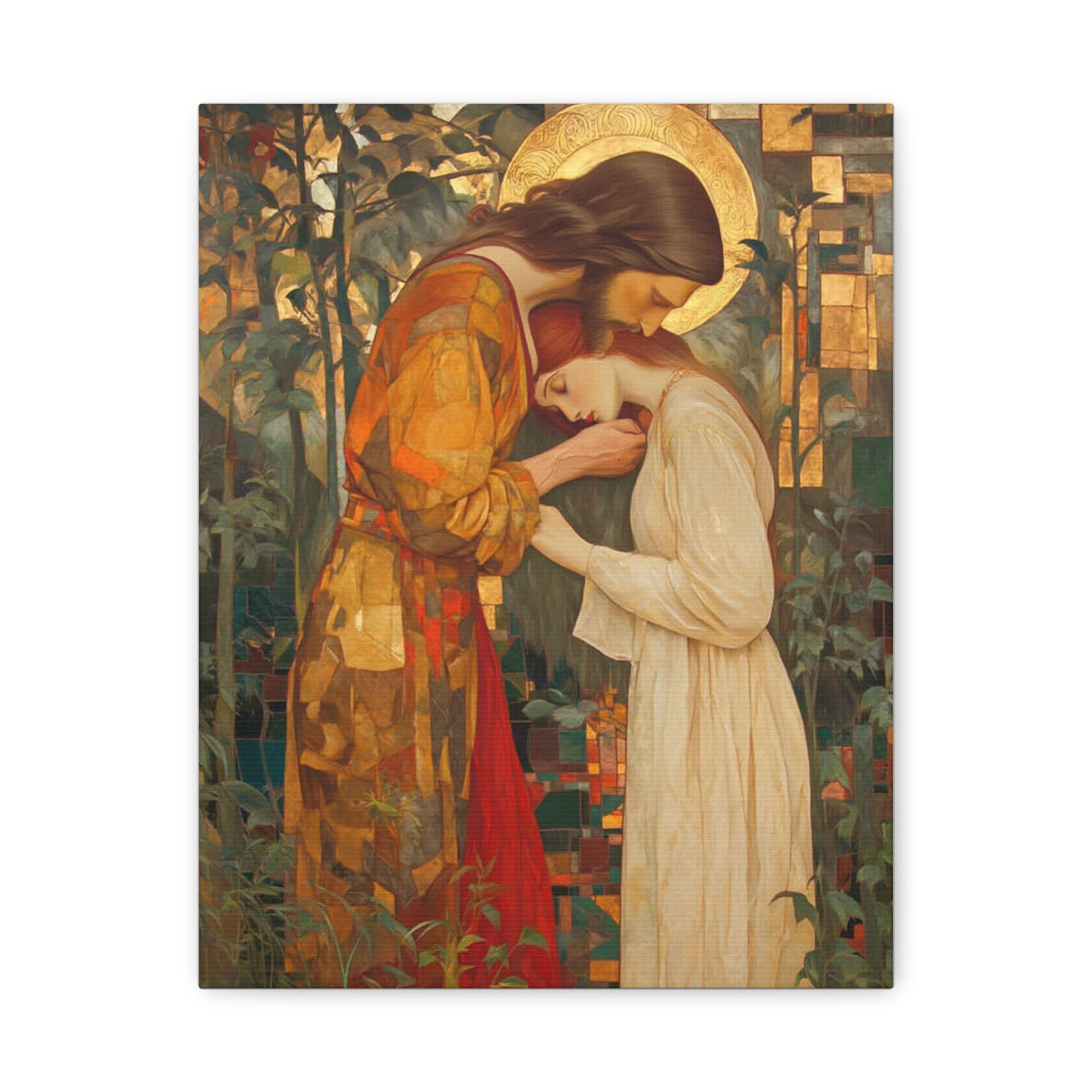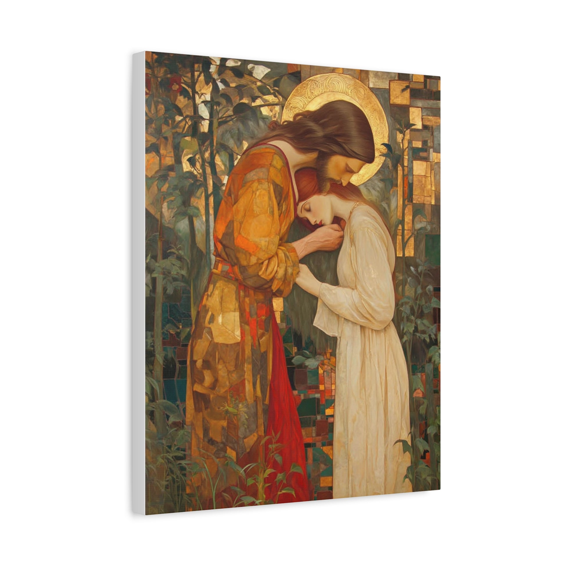 Healing Love - Christ Embracing Mary Magdalene Catholic Canvas Wall Art, Christian Decor