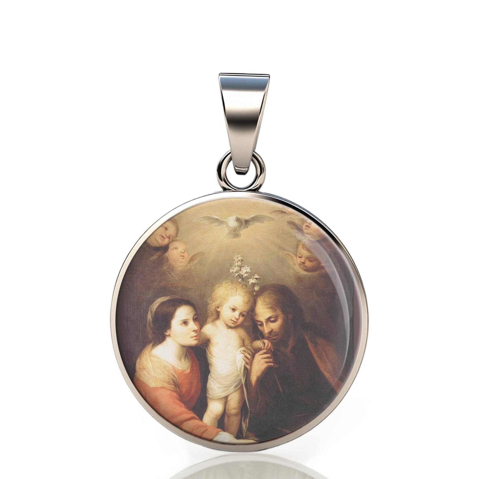 Holy Family 925 Sterling Silver Round Pendant IV Christian Religious Medal Small 20mm