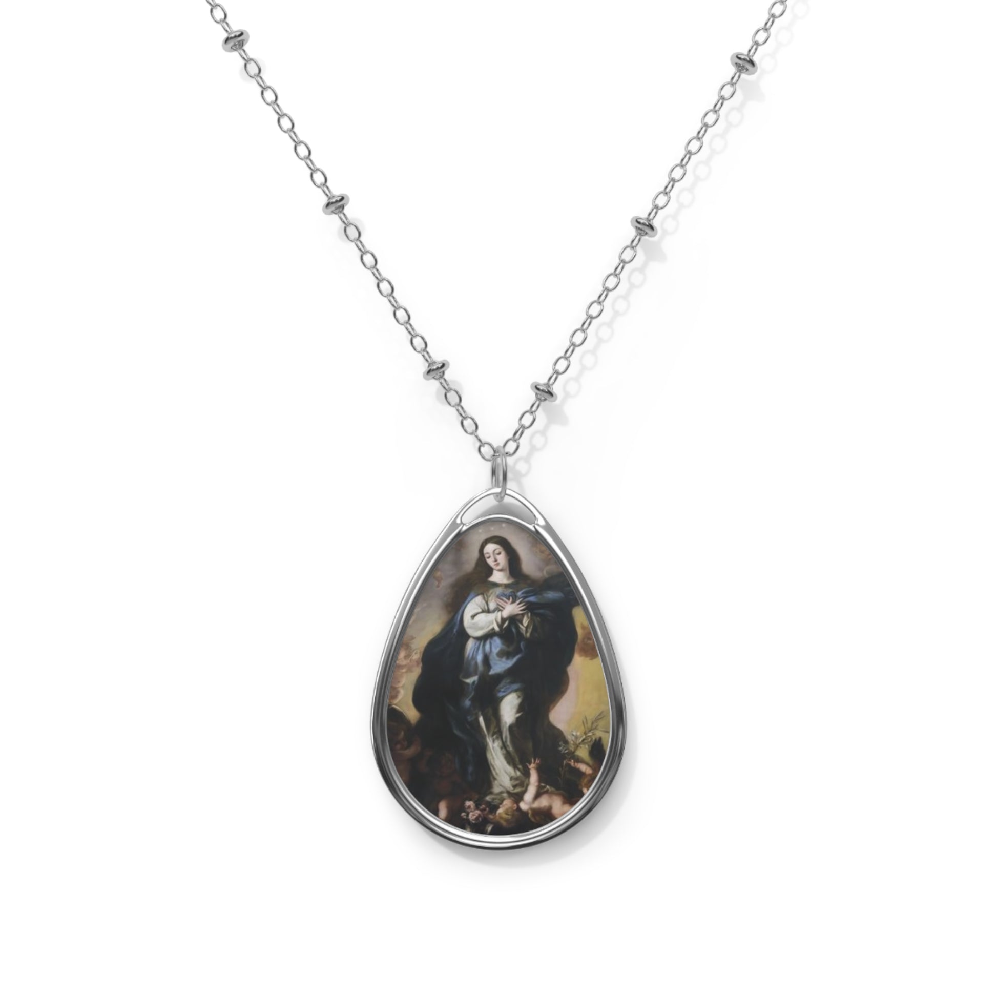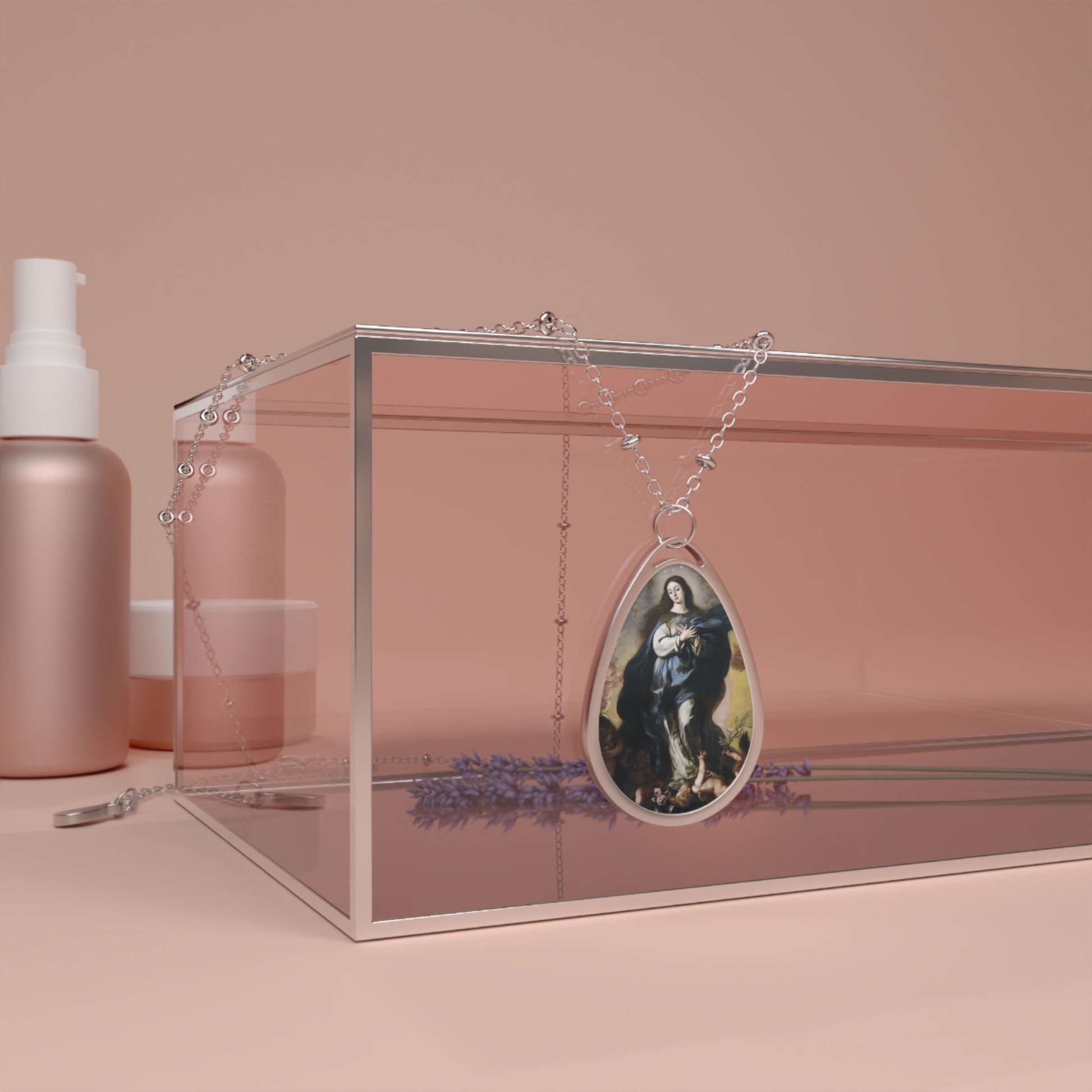 Immaculate Conception Our Lady Catholic Necklace - Drop Pendant Silver tone Medal Necklace