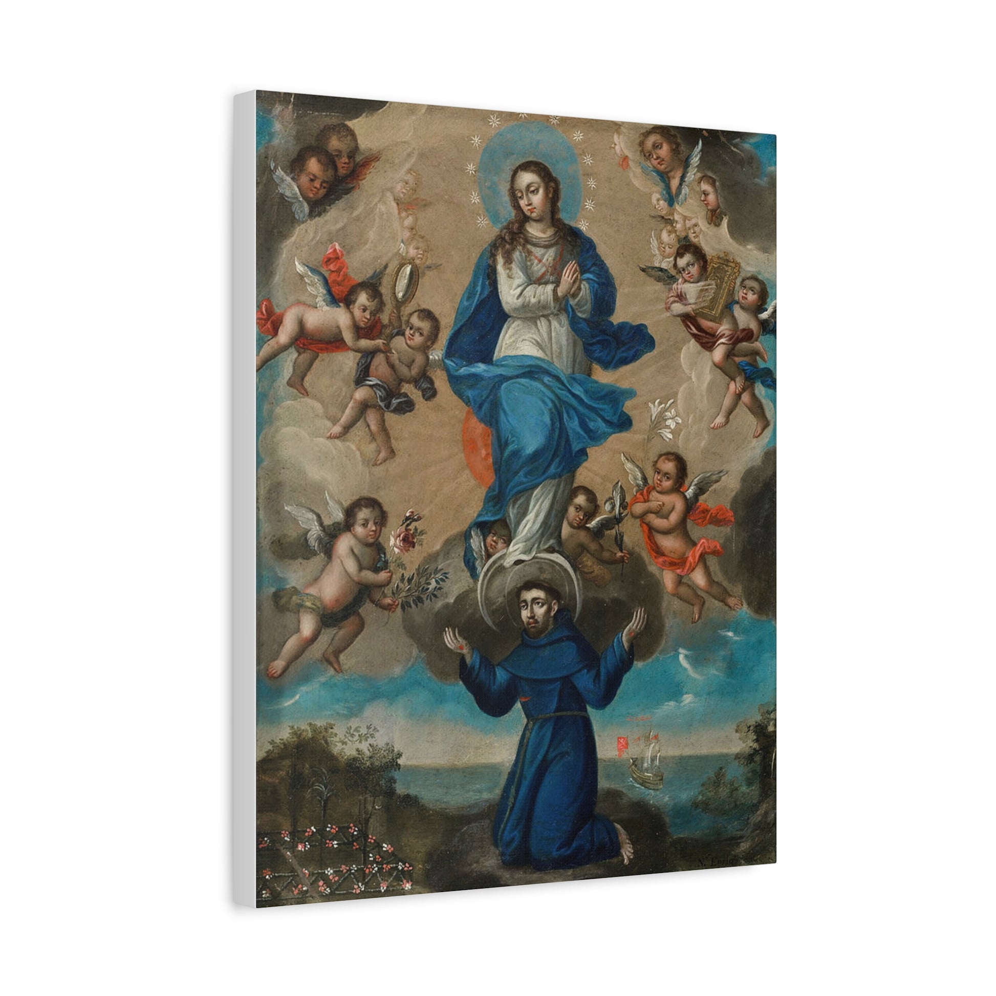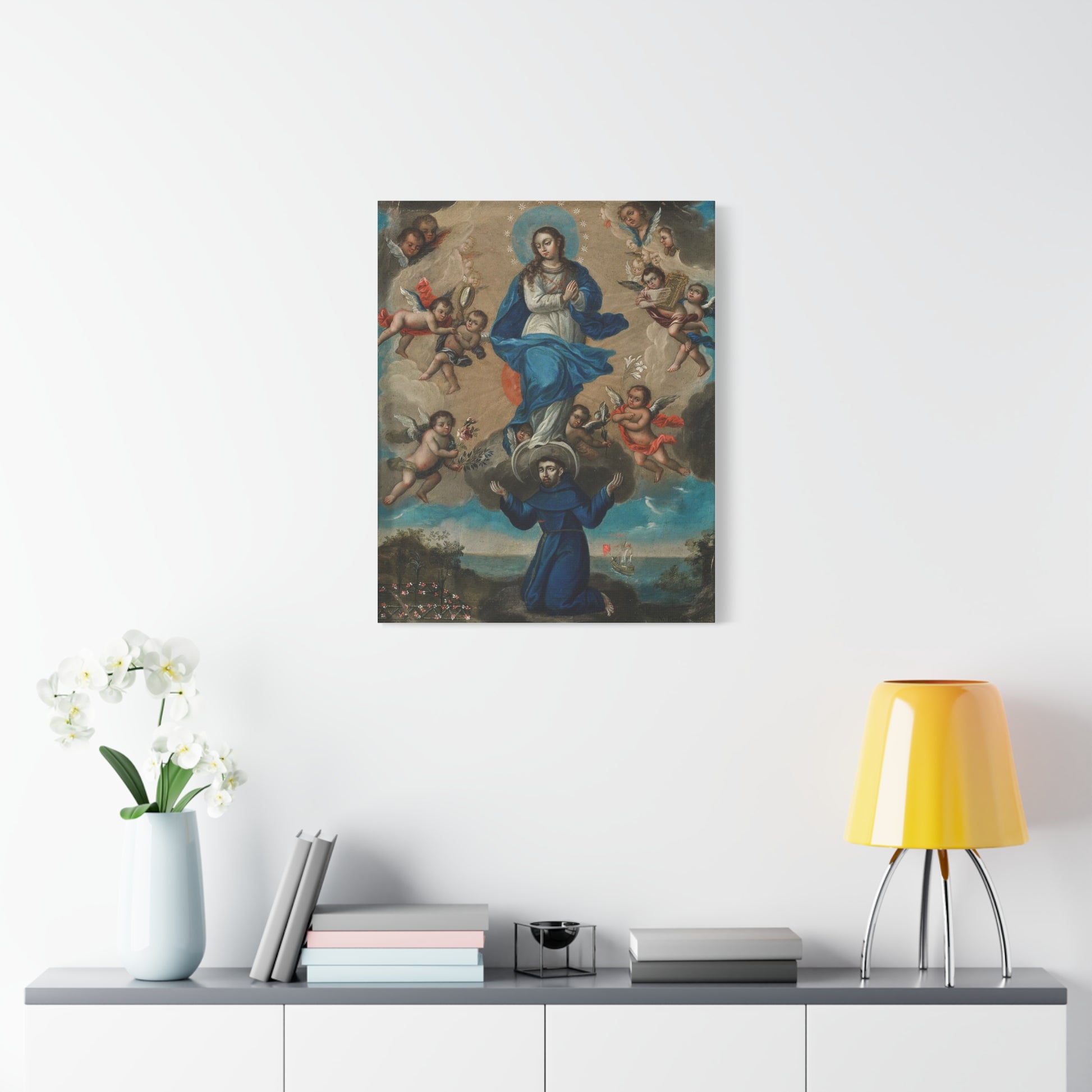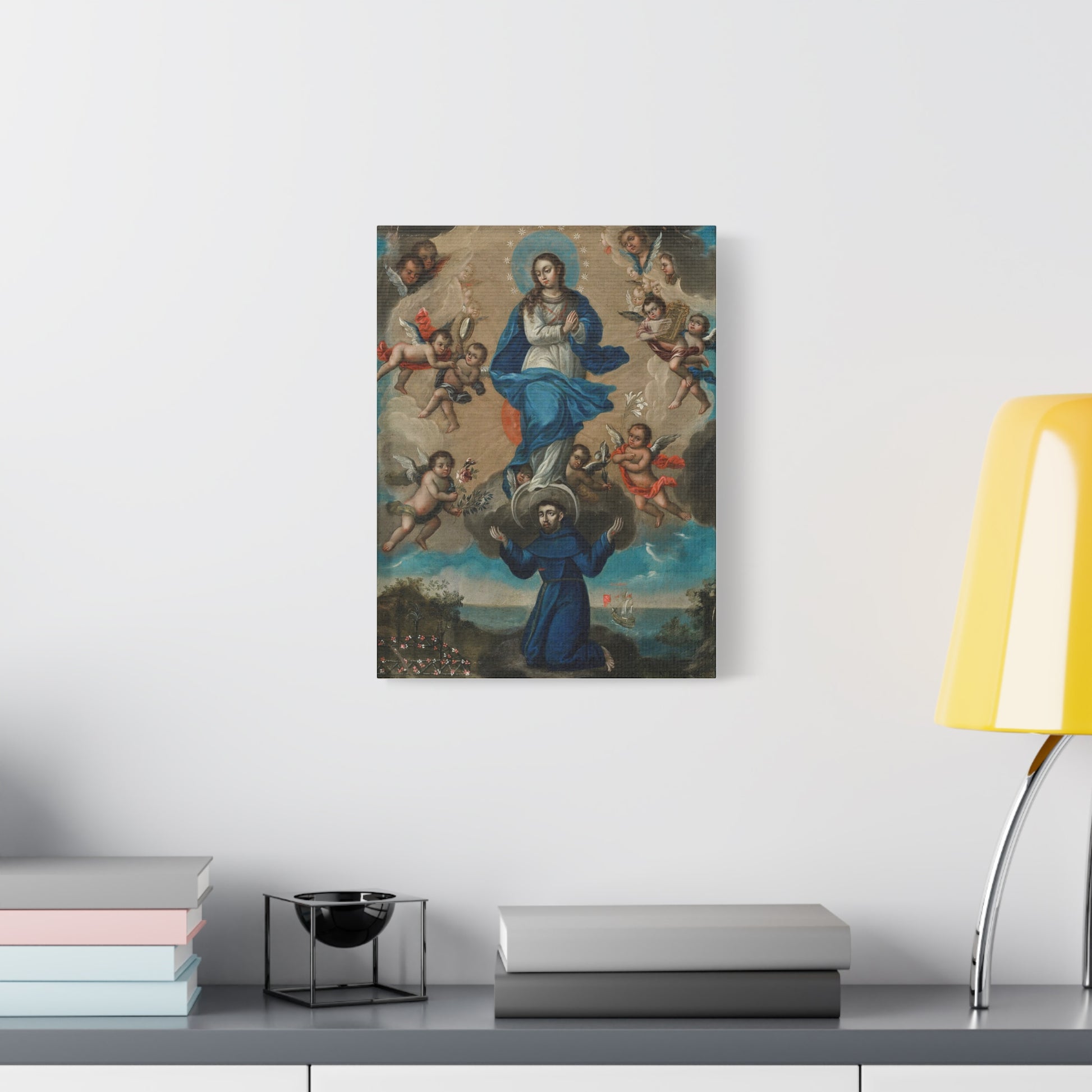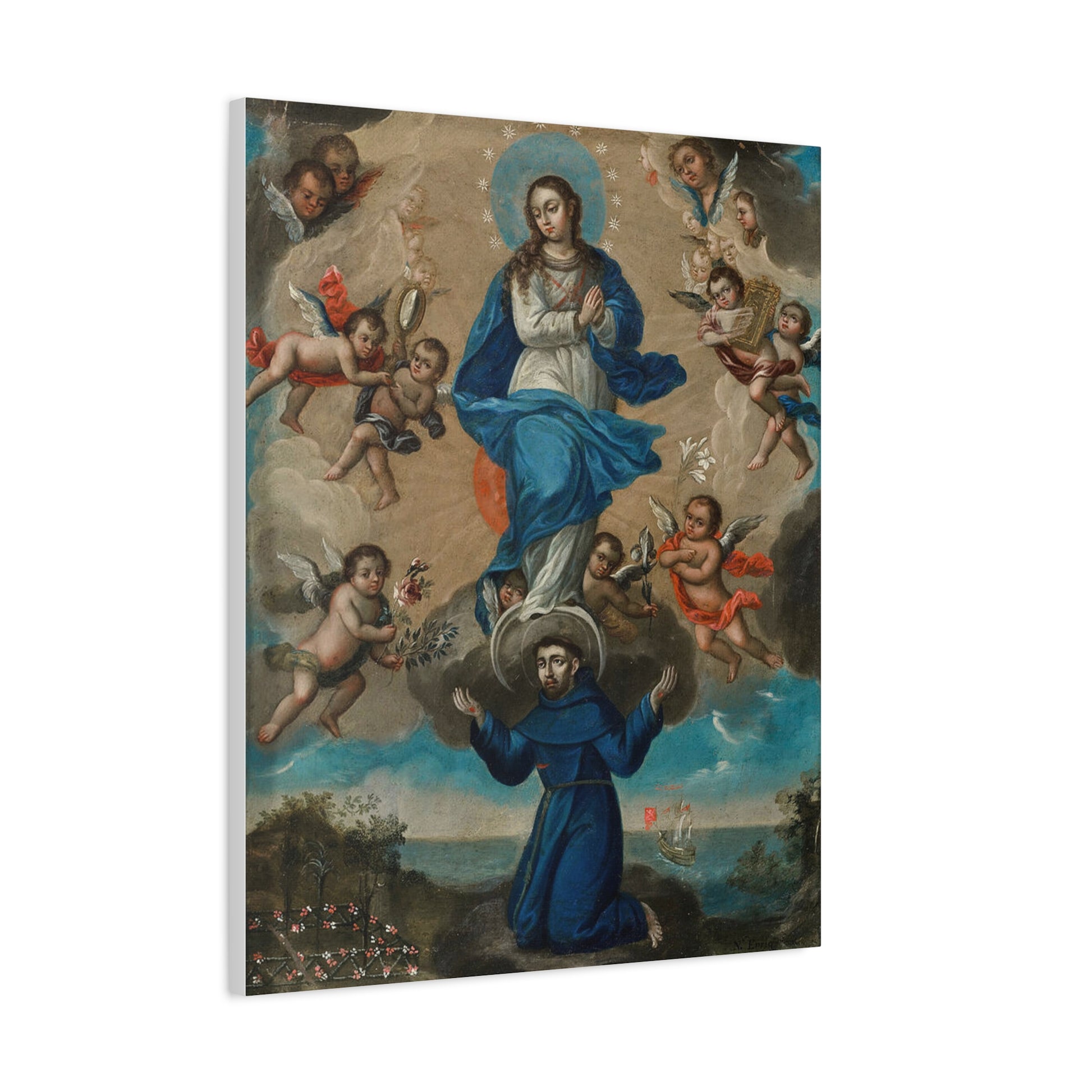 Immaculate Conception with Saint Francis and Angels Catholic HQ Print on Canvas Ready To Hang - Virgin Mary Canvas