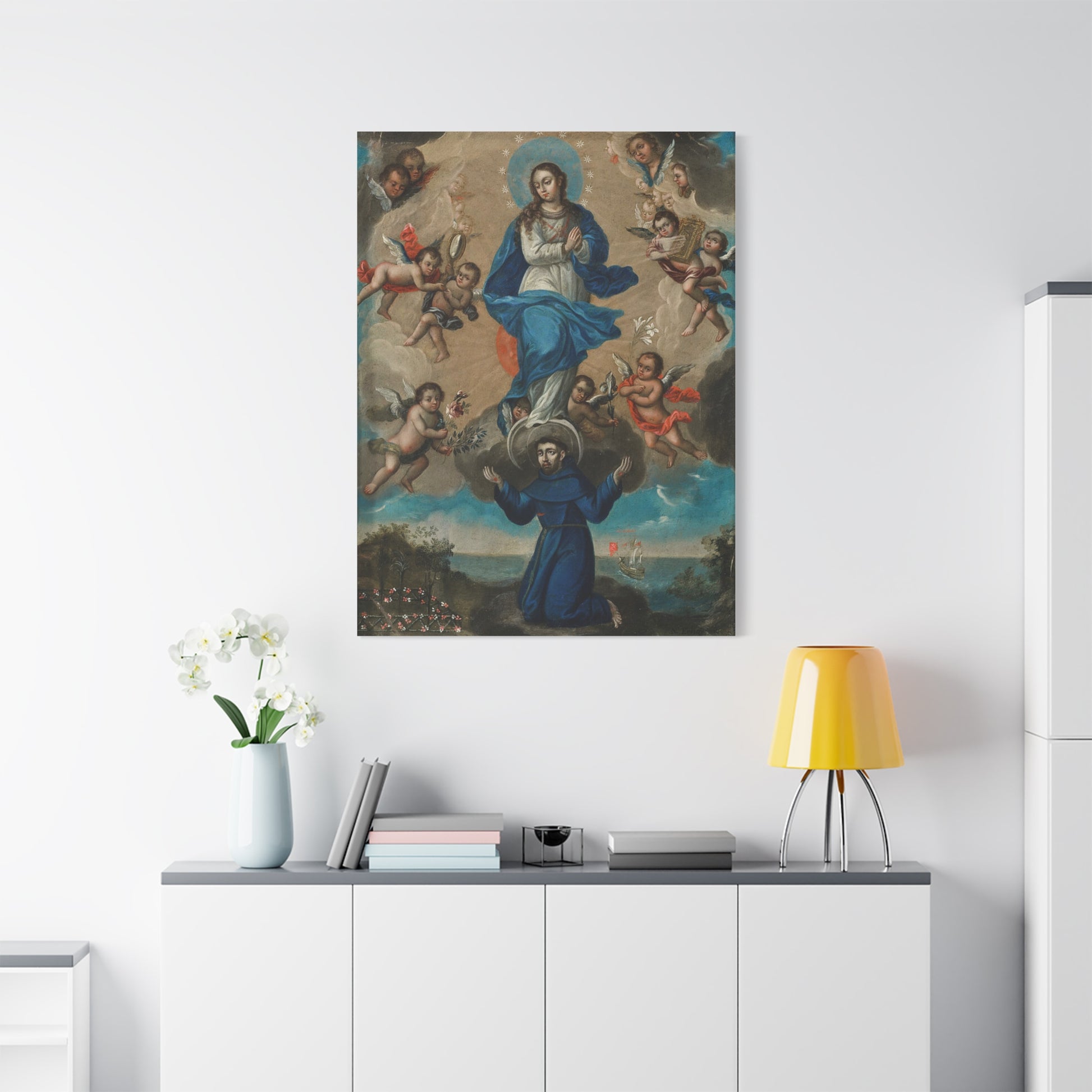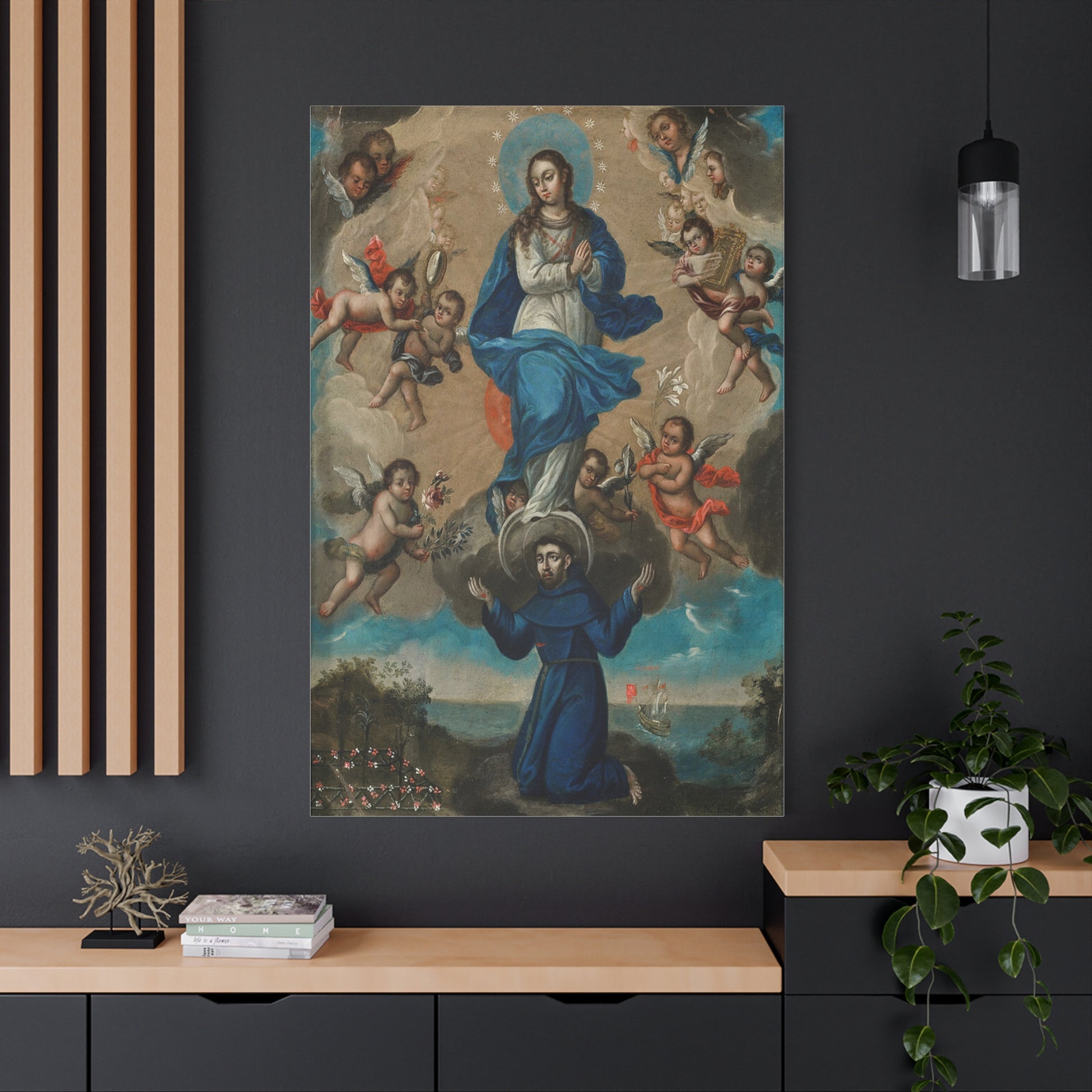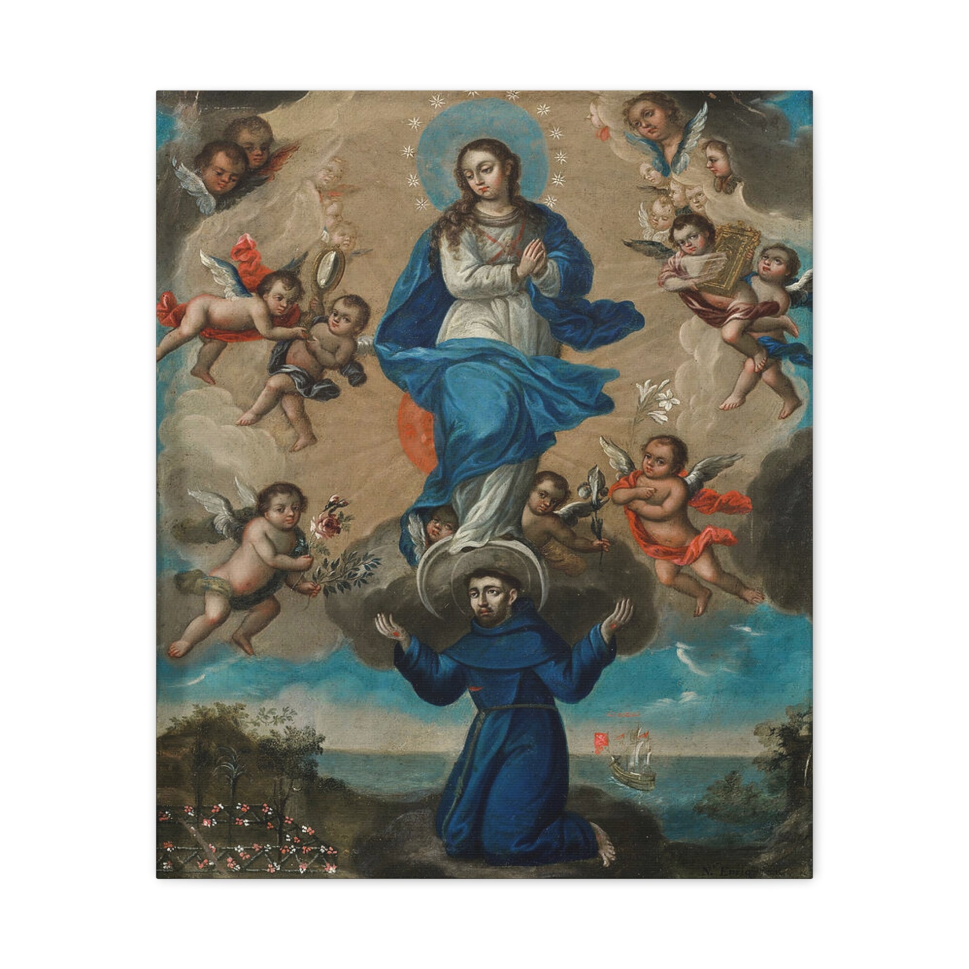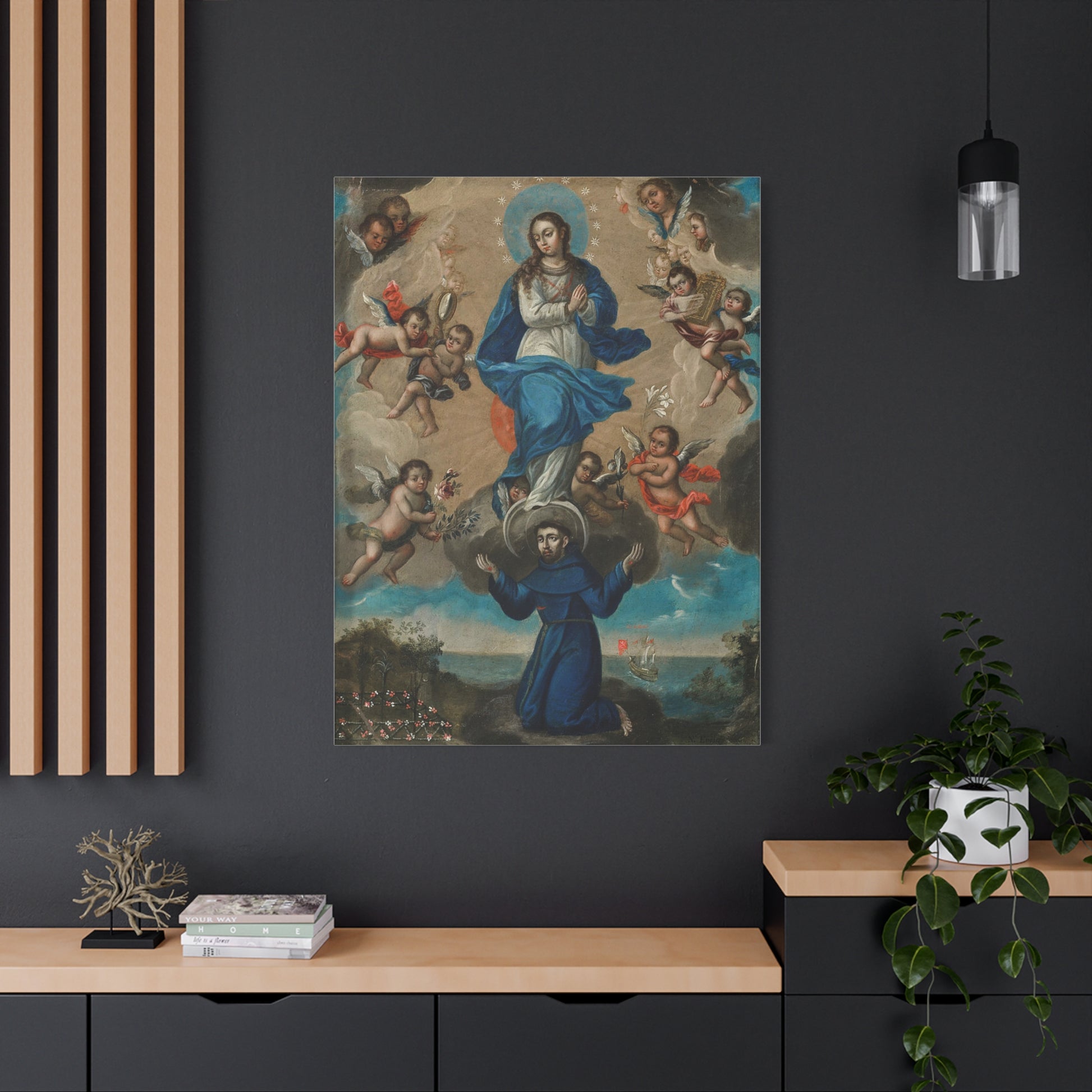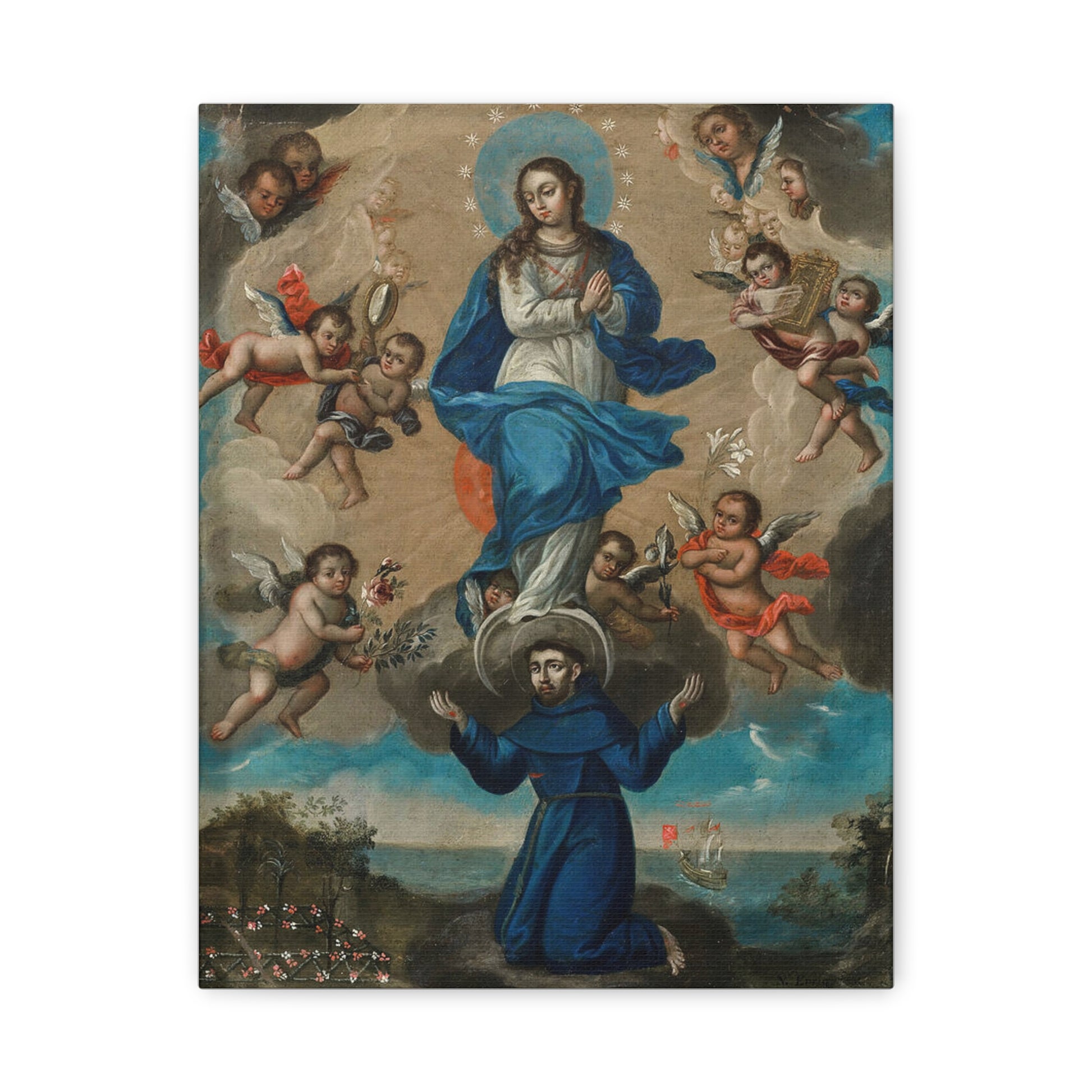 Immaculate Conception with Saint Francis and Angels Catholic HQ Print on Canvas Ready To Hang - Virgin Mary Canvas