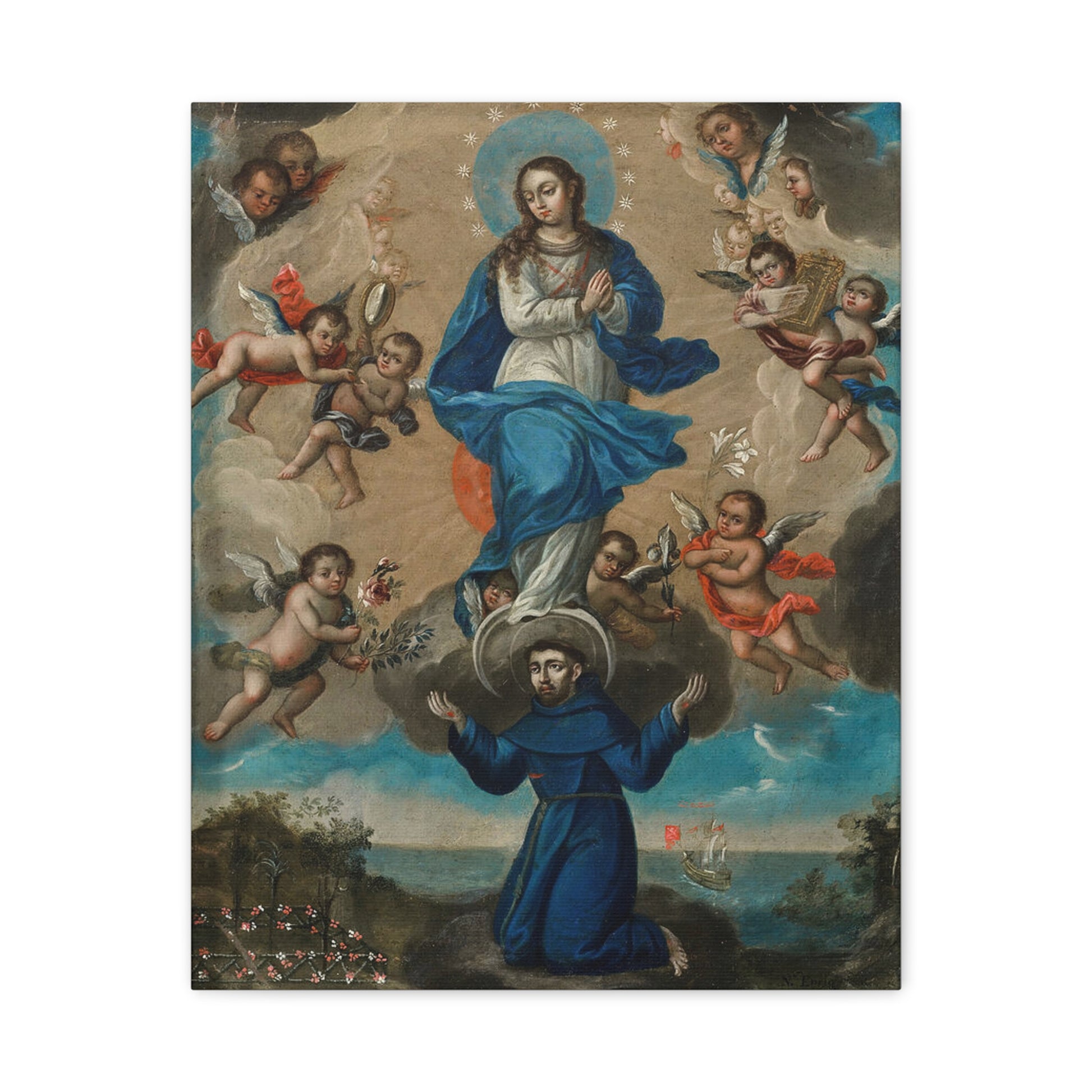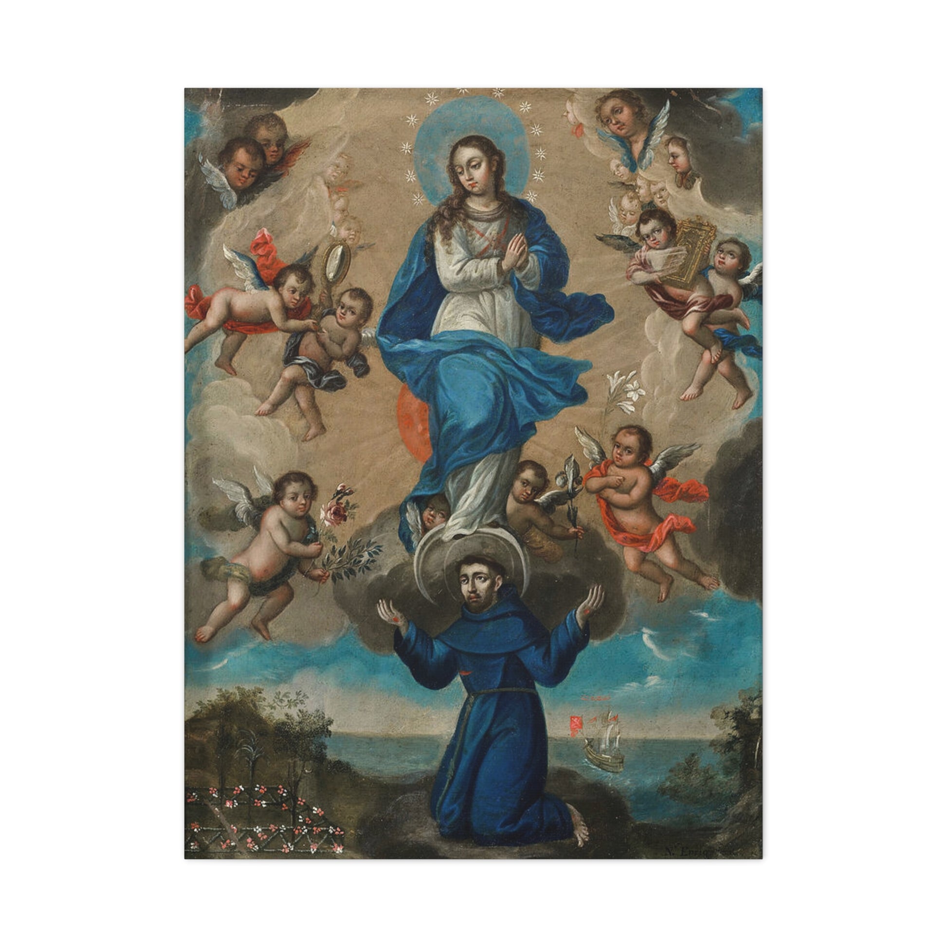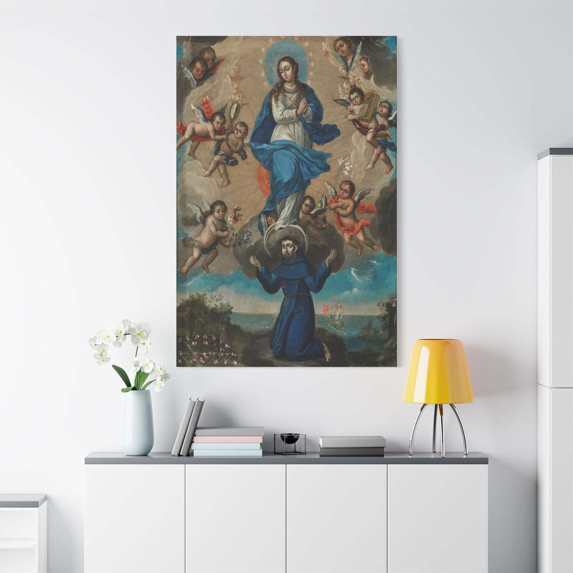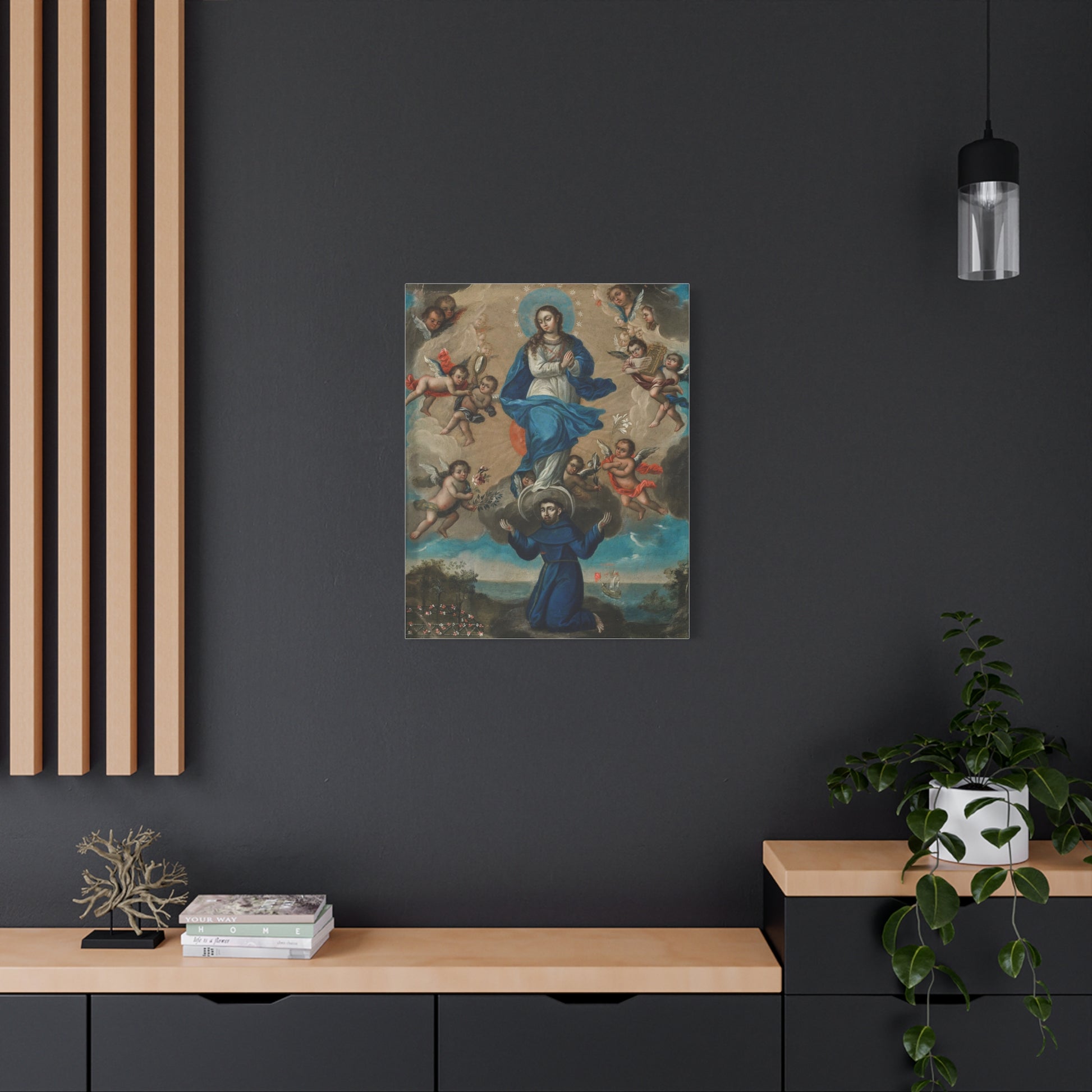 Immaculate Conception with Saint Francis and Angels Catholic HQ Print on Canvas Ready To Hang - Virgin Mary Canvas