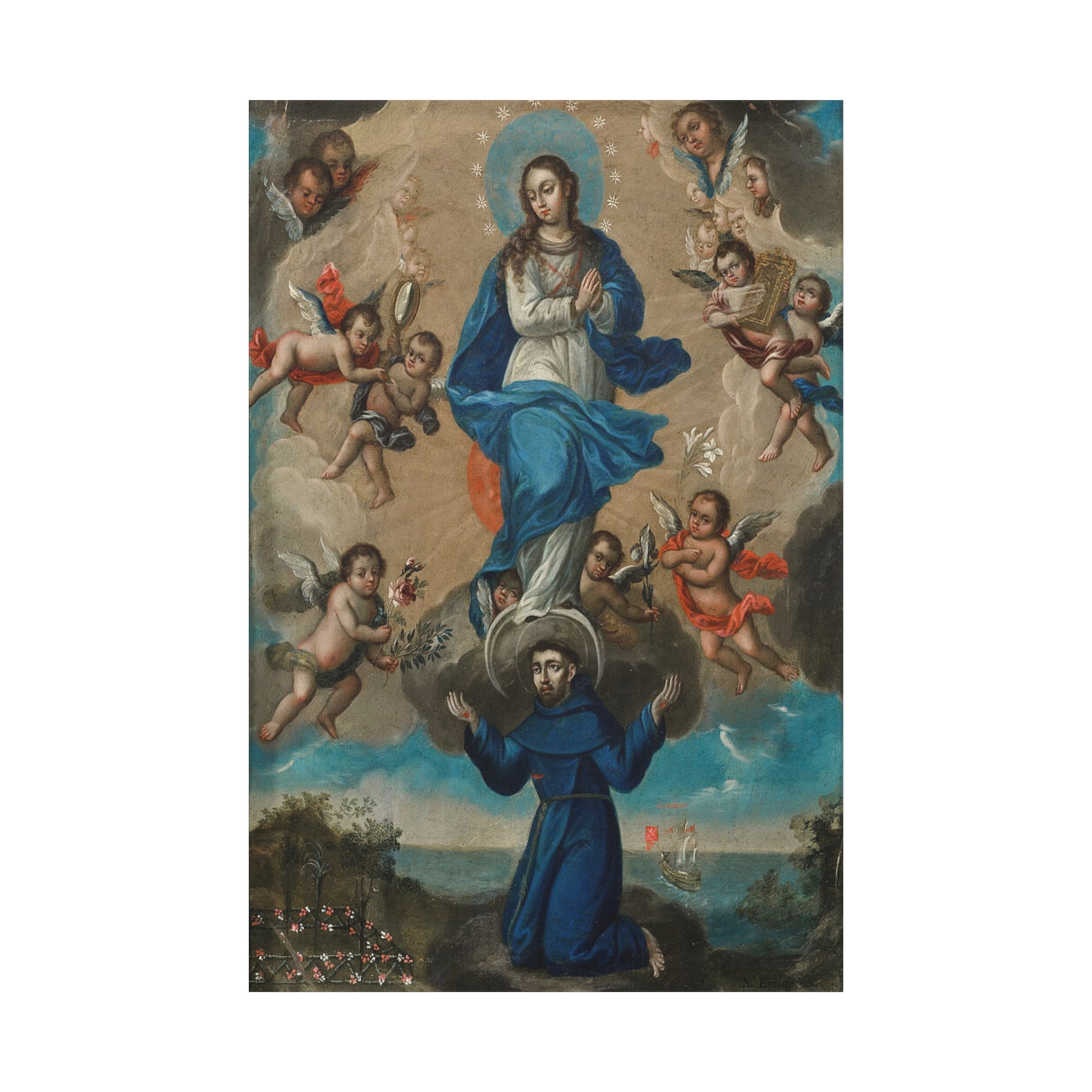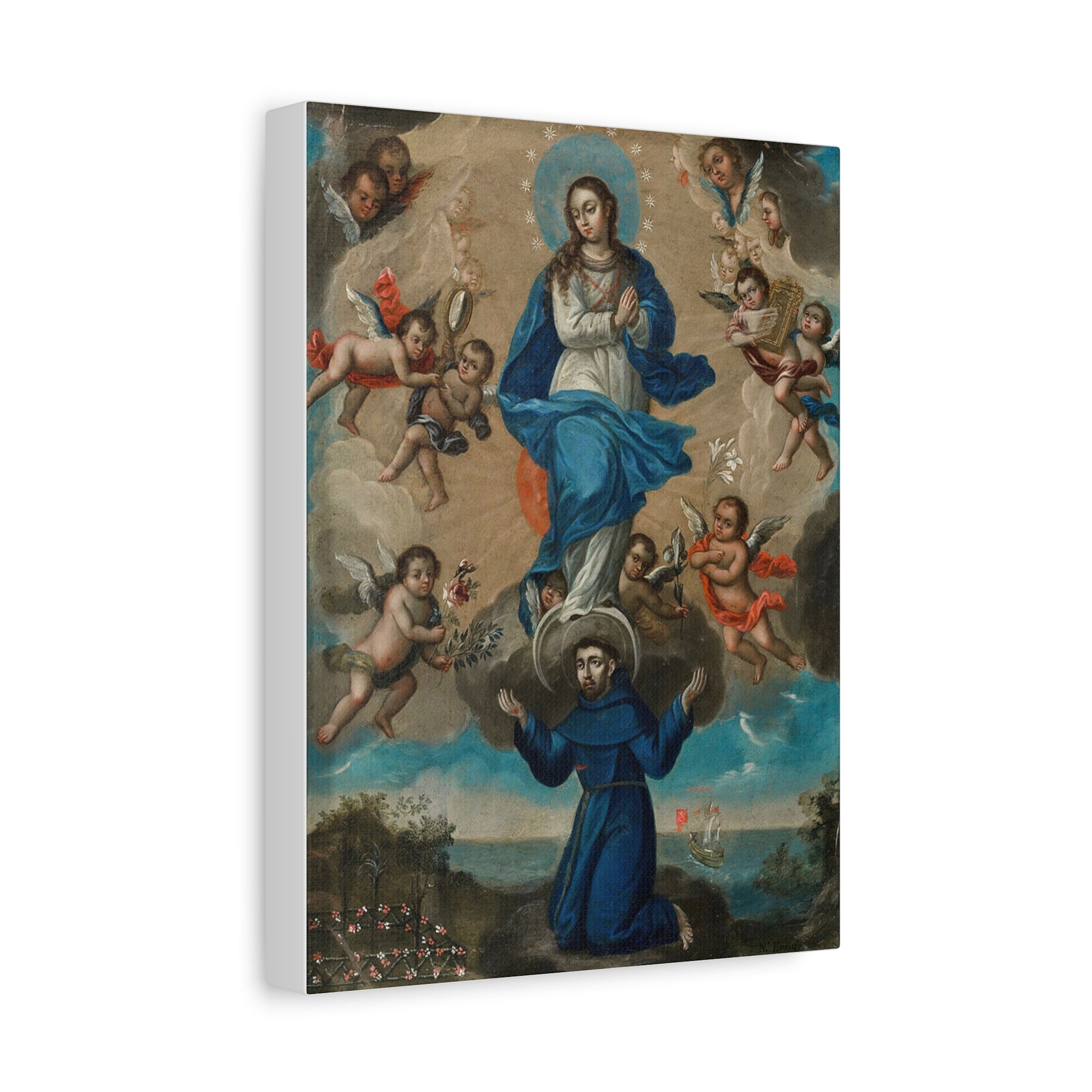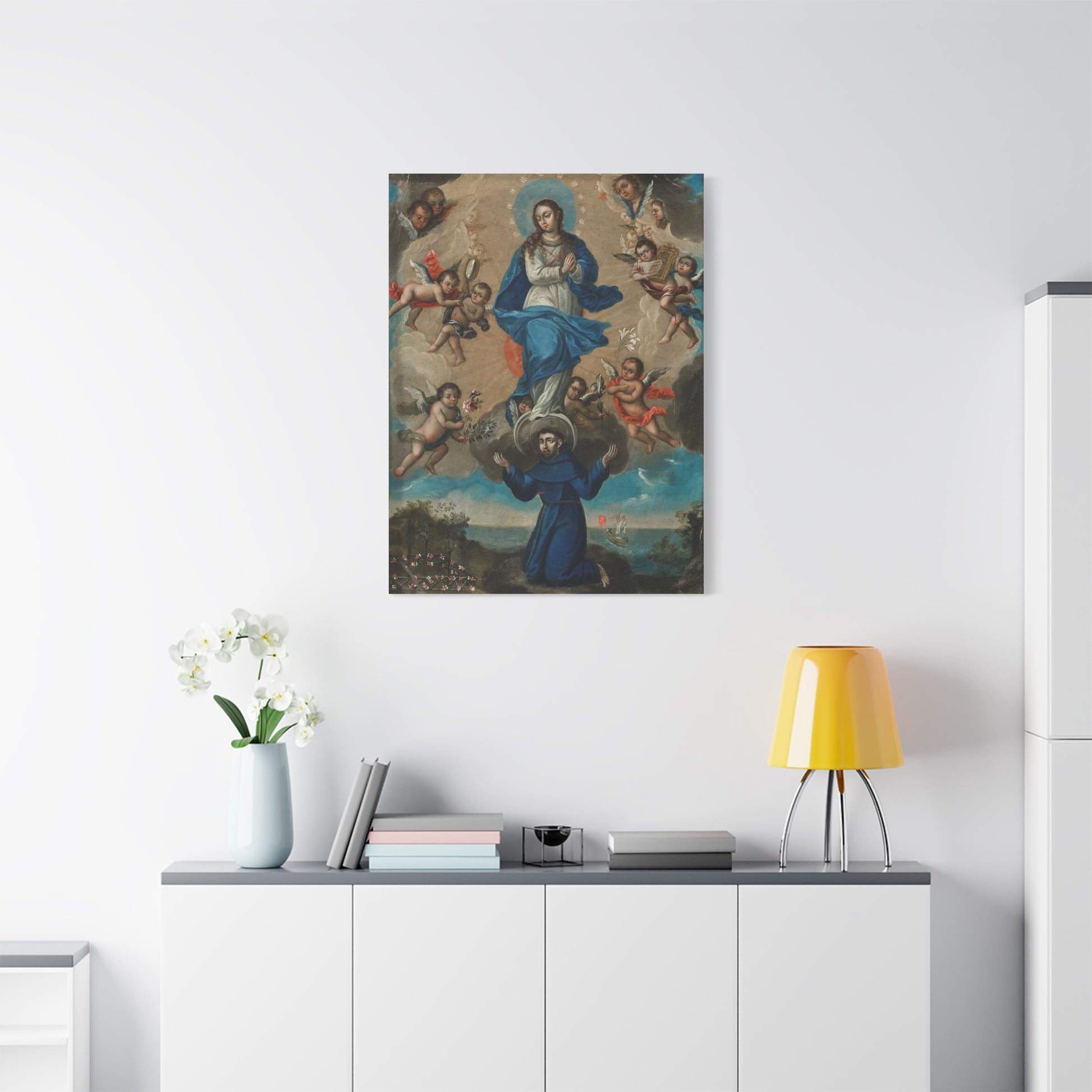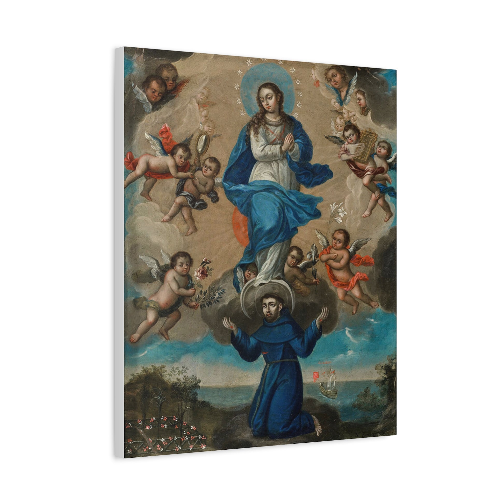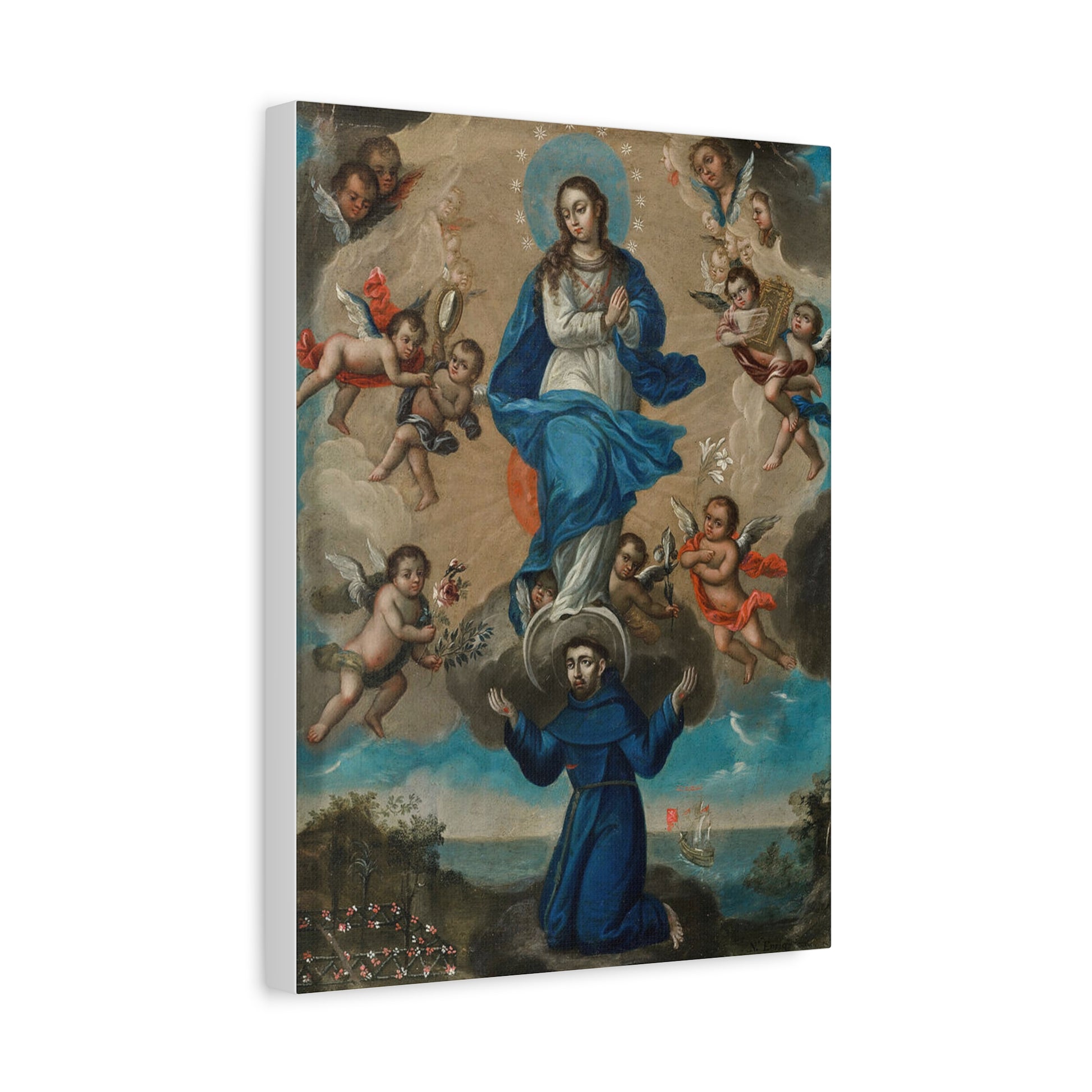 Immaculate Conception with Saint Francis and Angels Catholic HQ Print on Canvas Ready To Hang - Virgin Mary Canvas