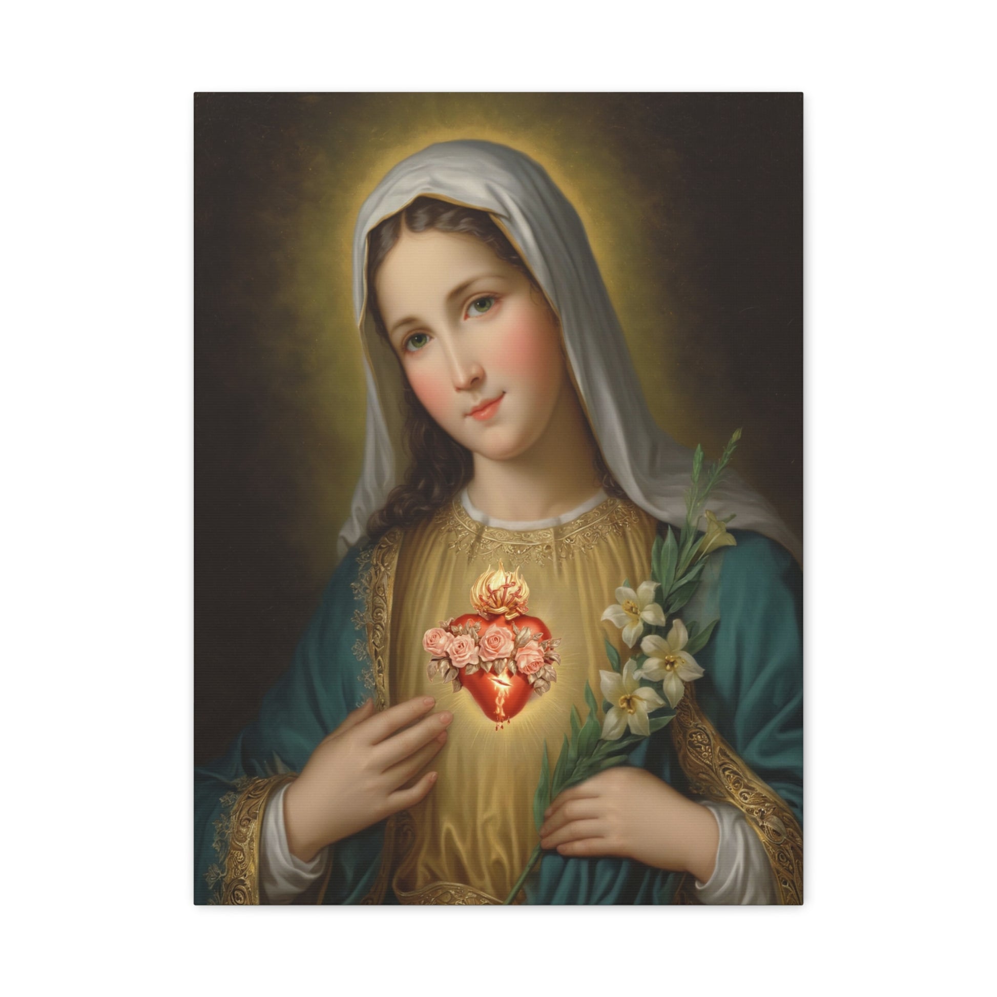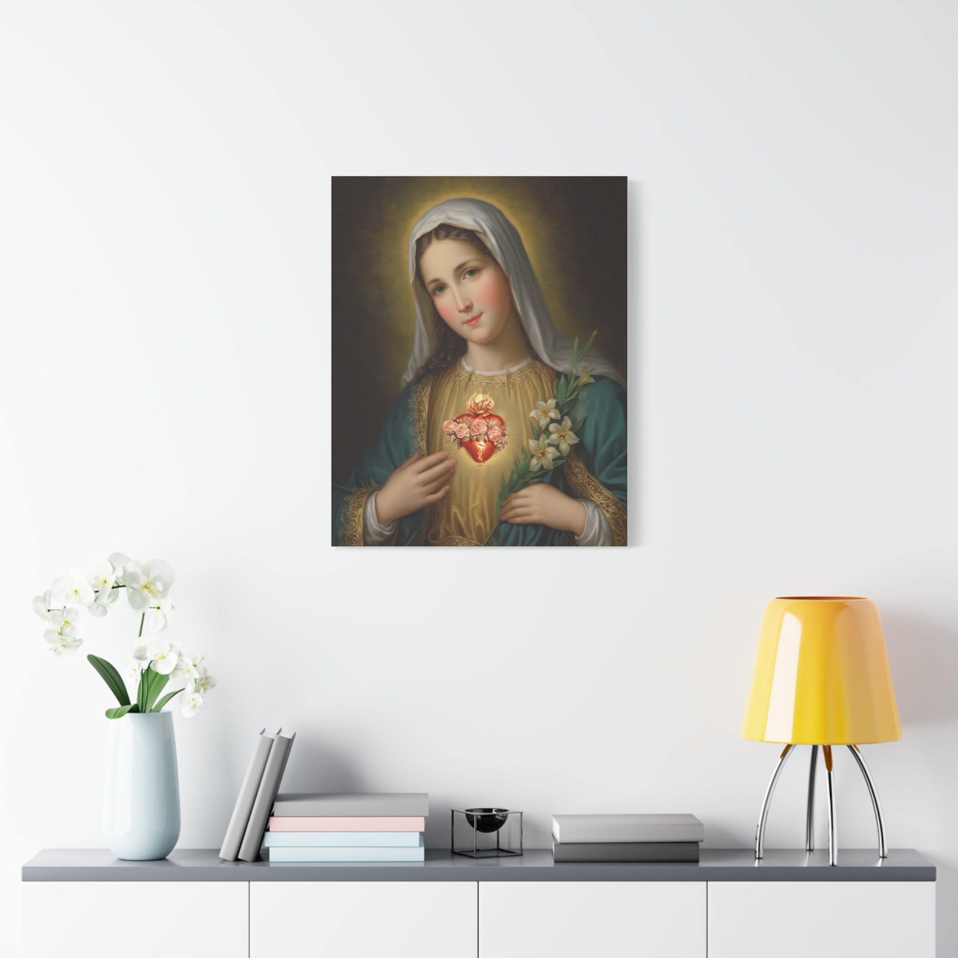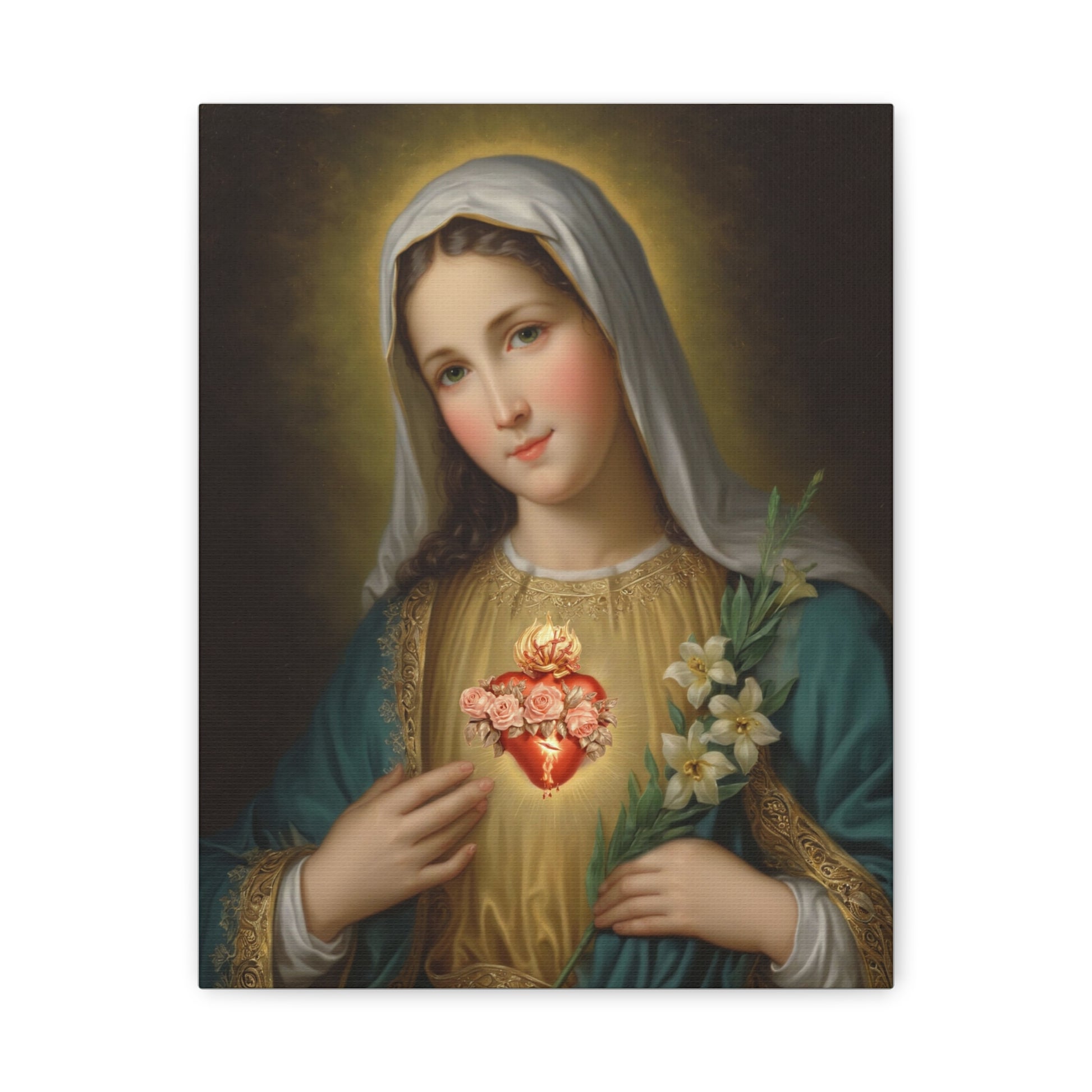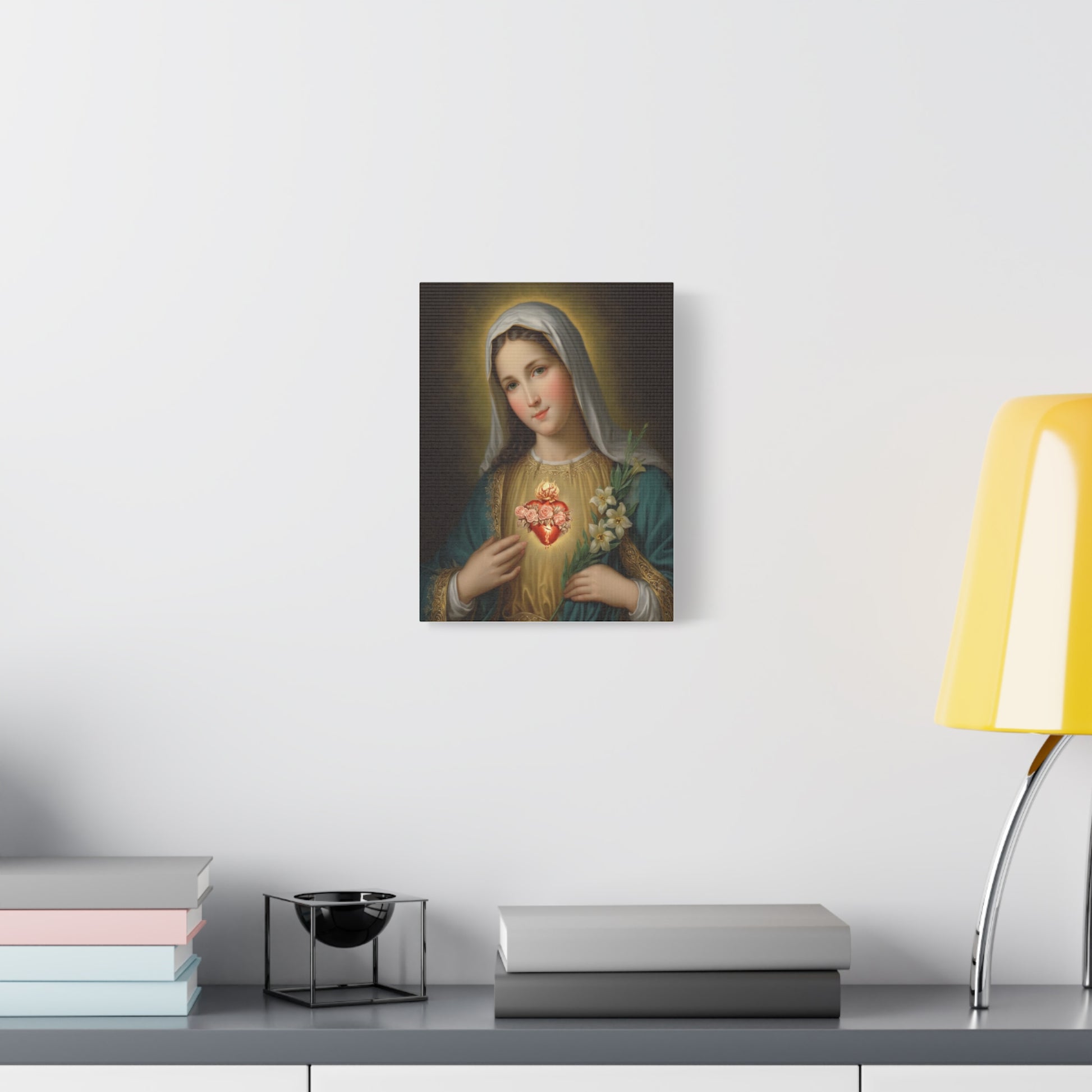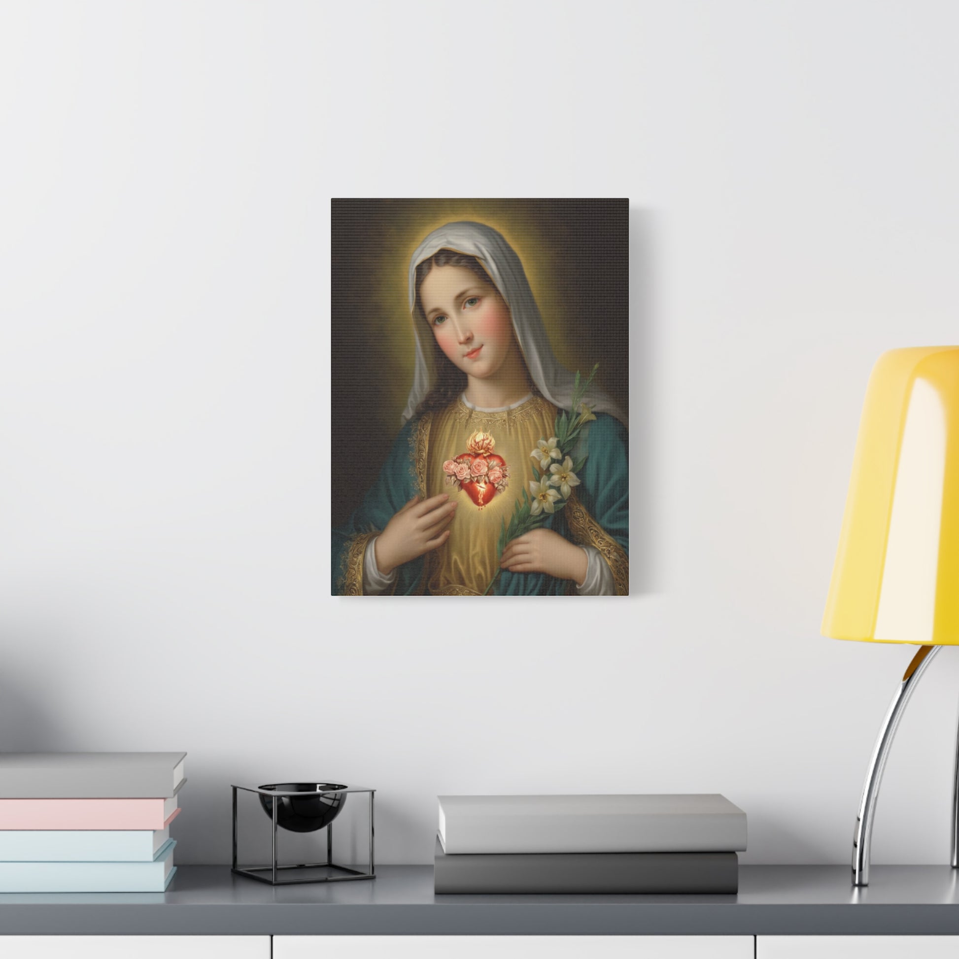 Immaculate Heart Mary Catholic Canvas Wall Art, Christian Decor
