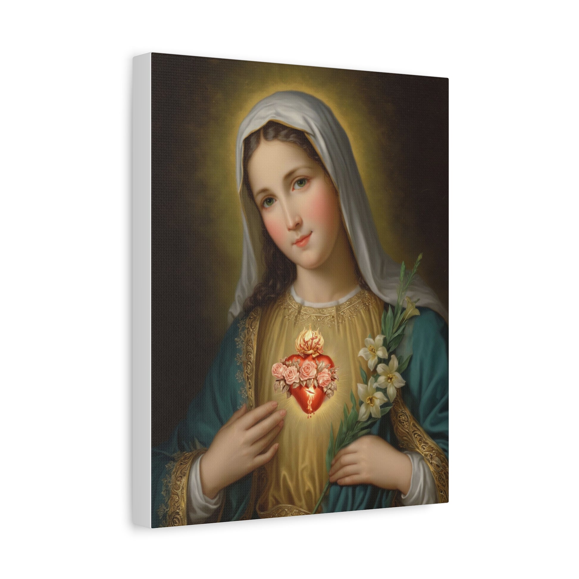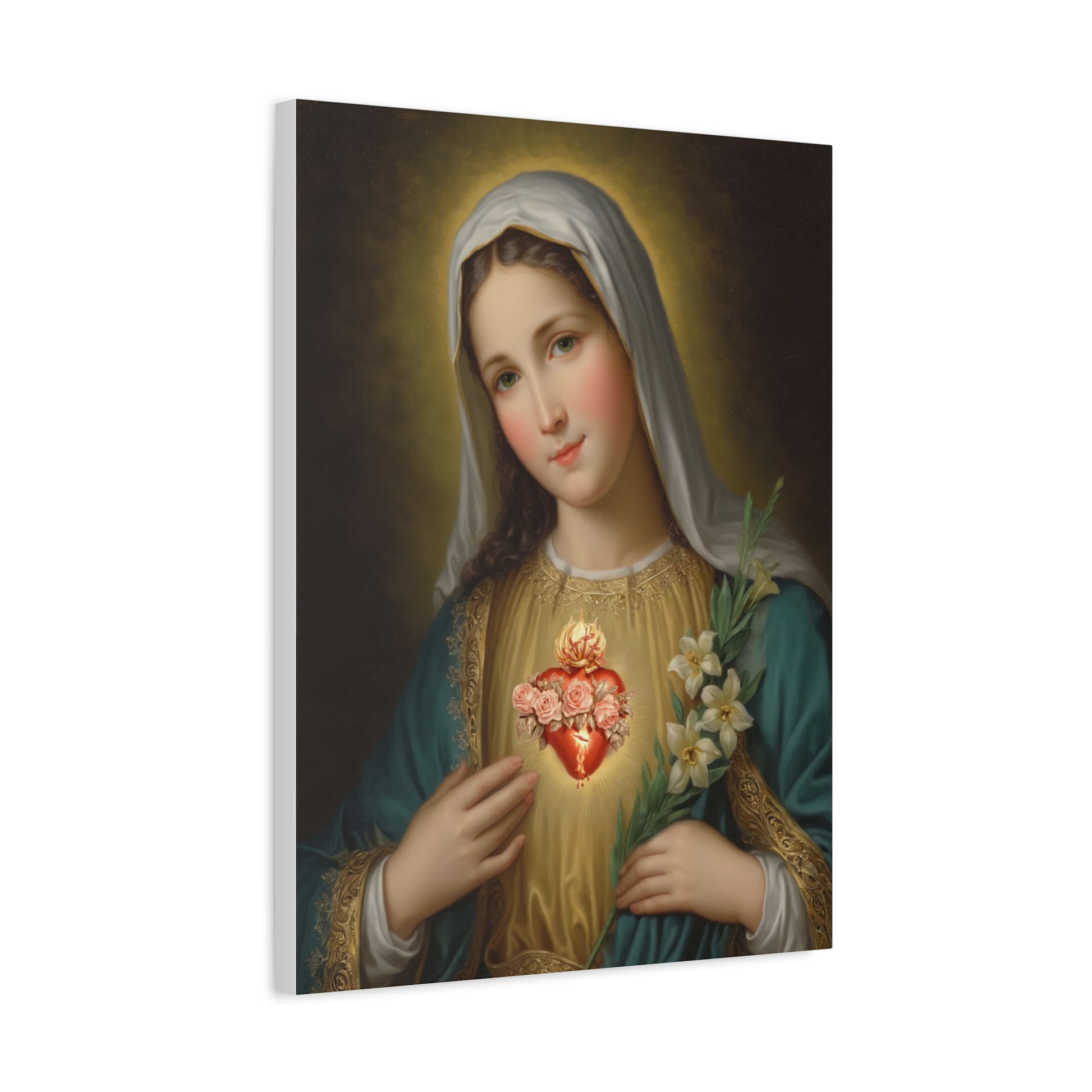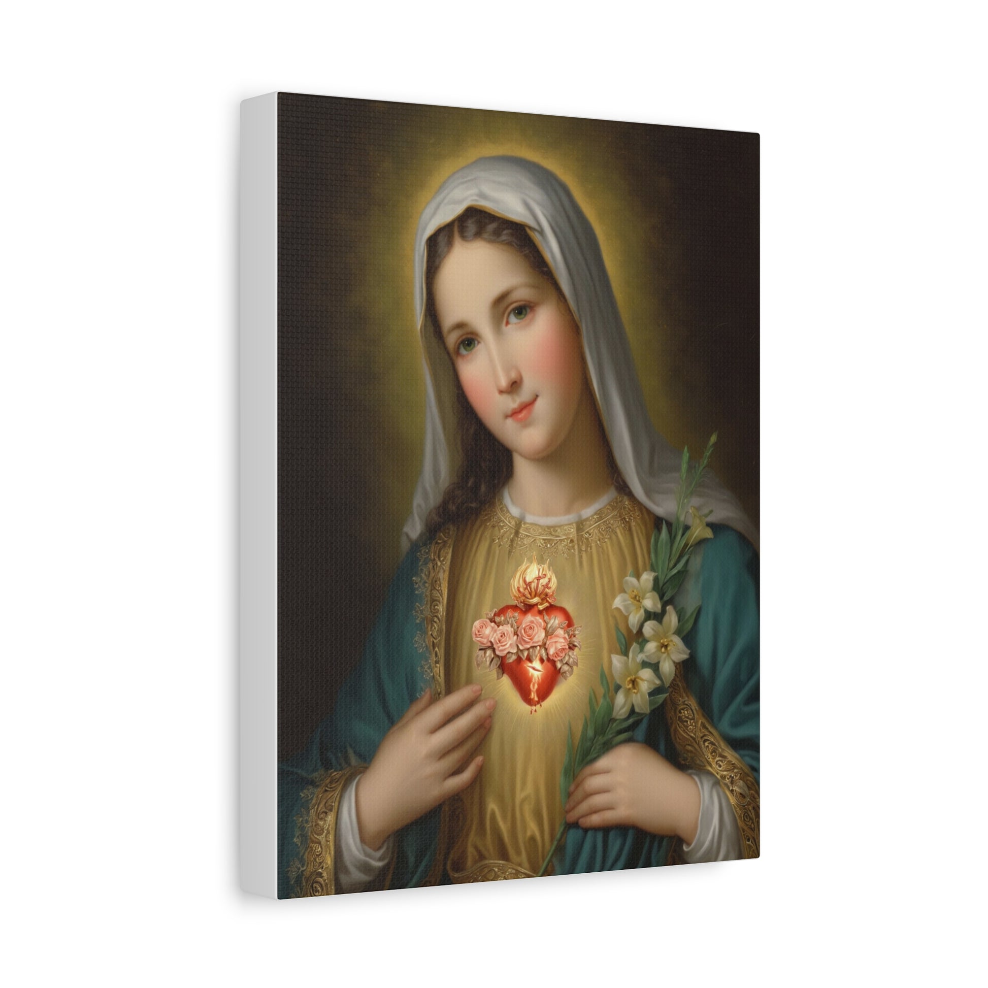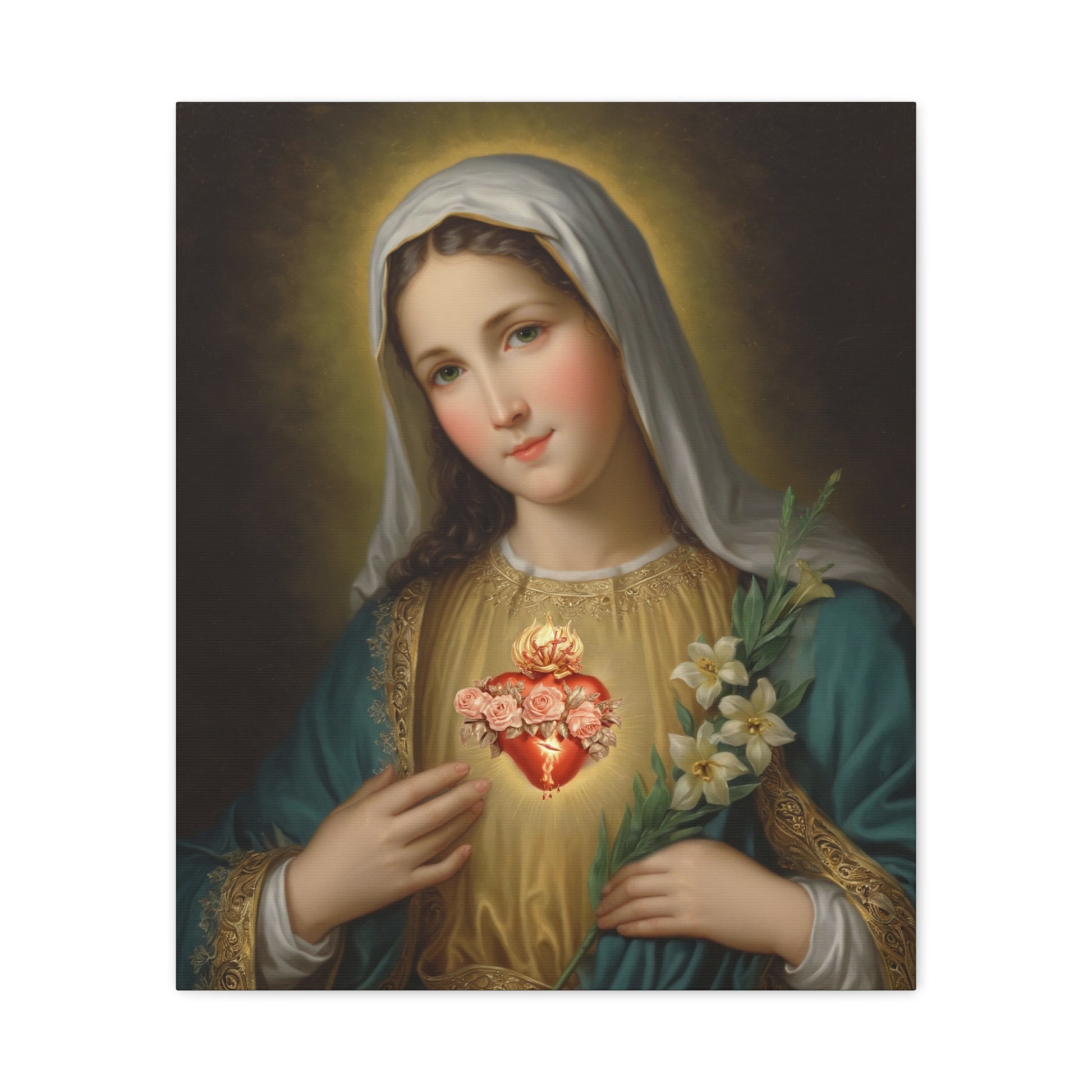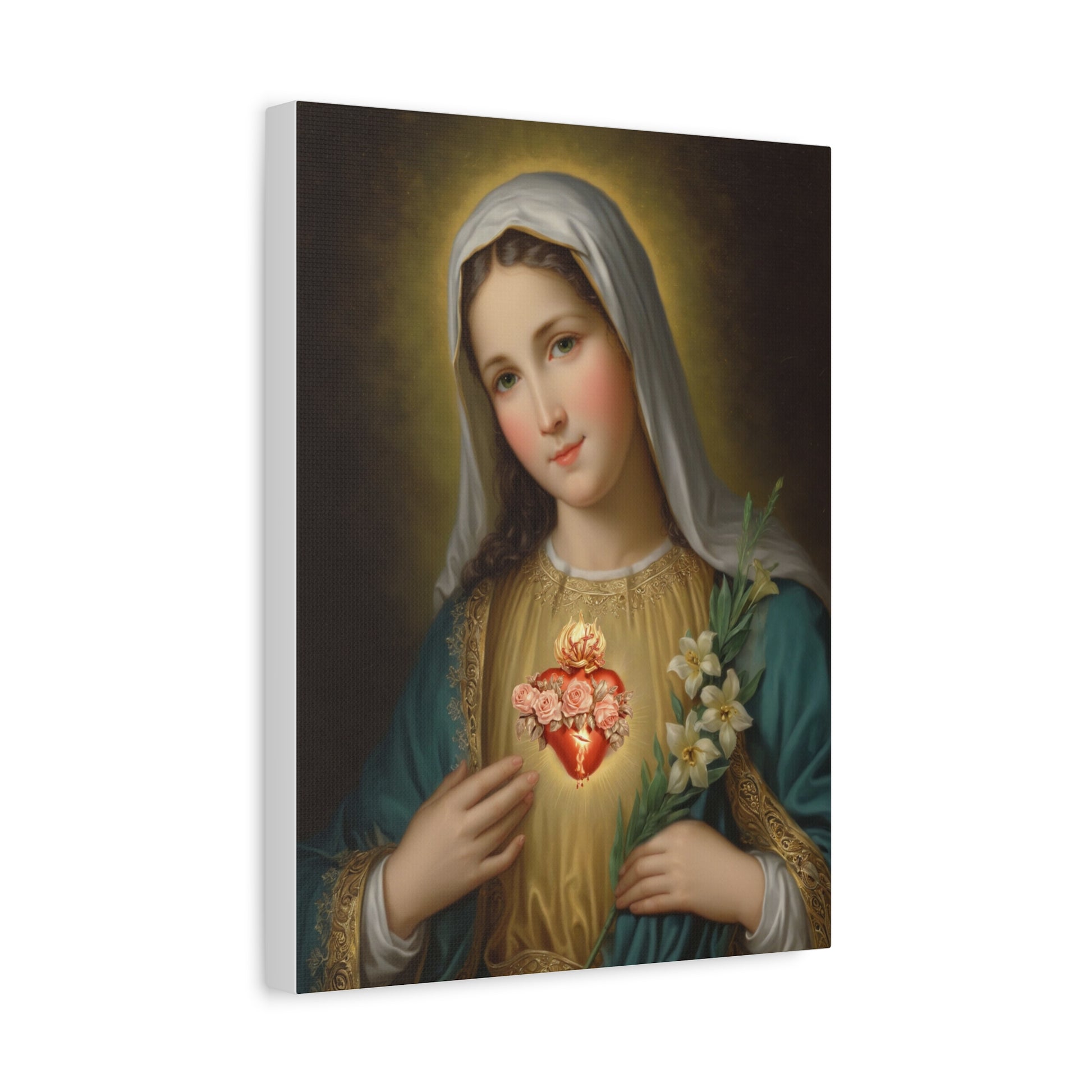 Immaculate Heart Mary Catholic Canvas Wall Art, Christian Decor