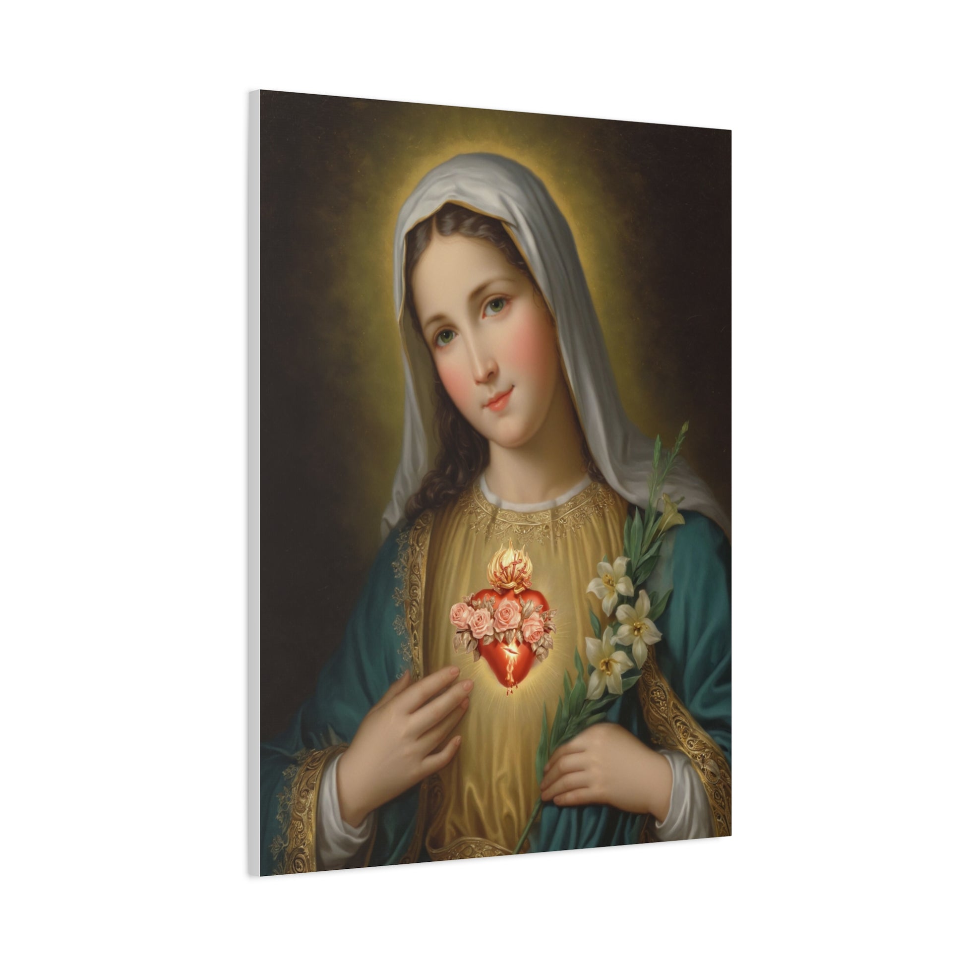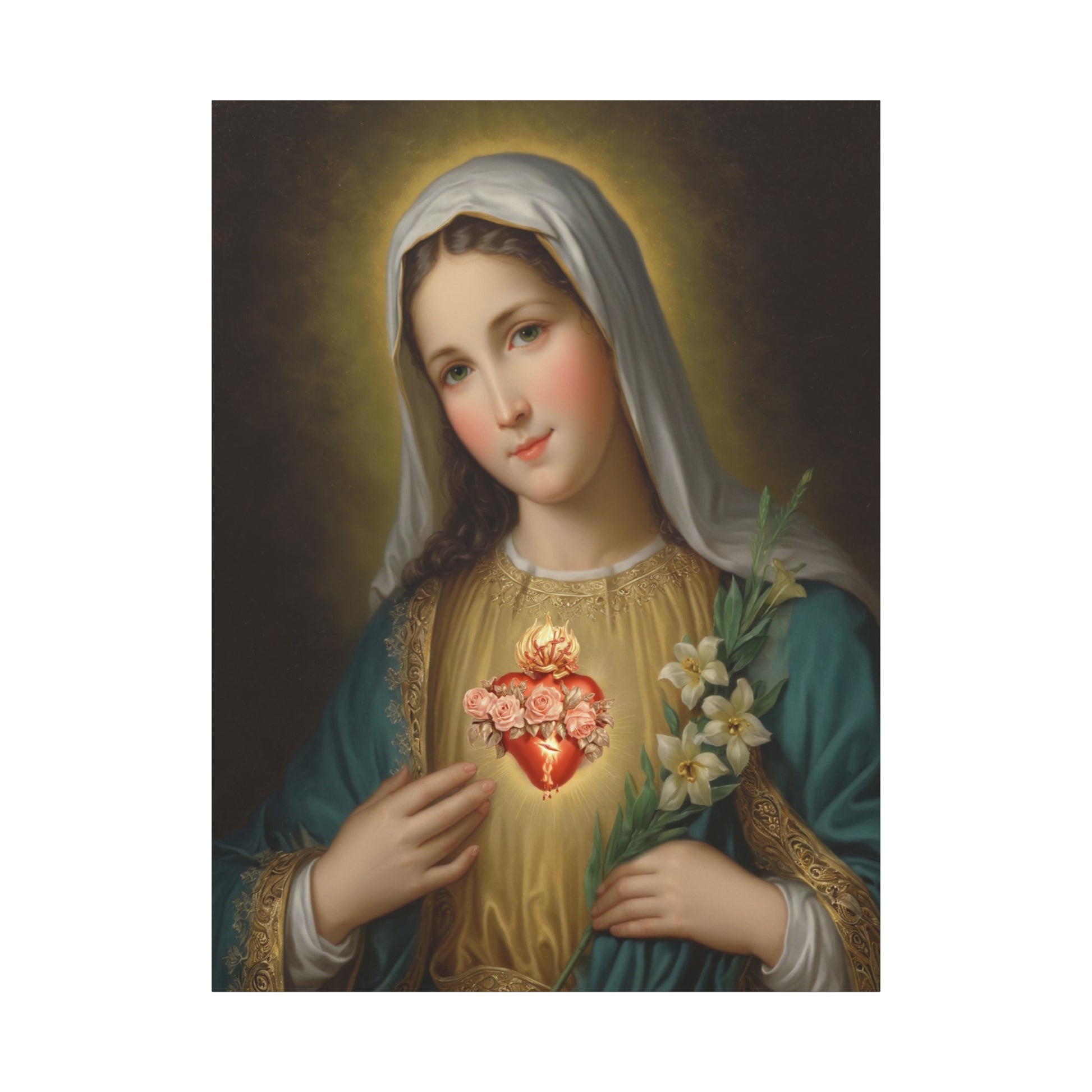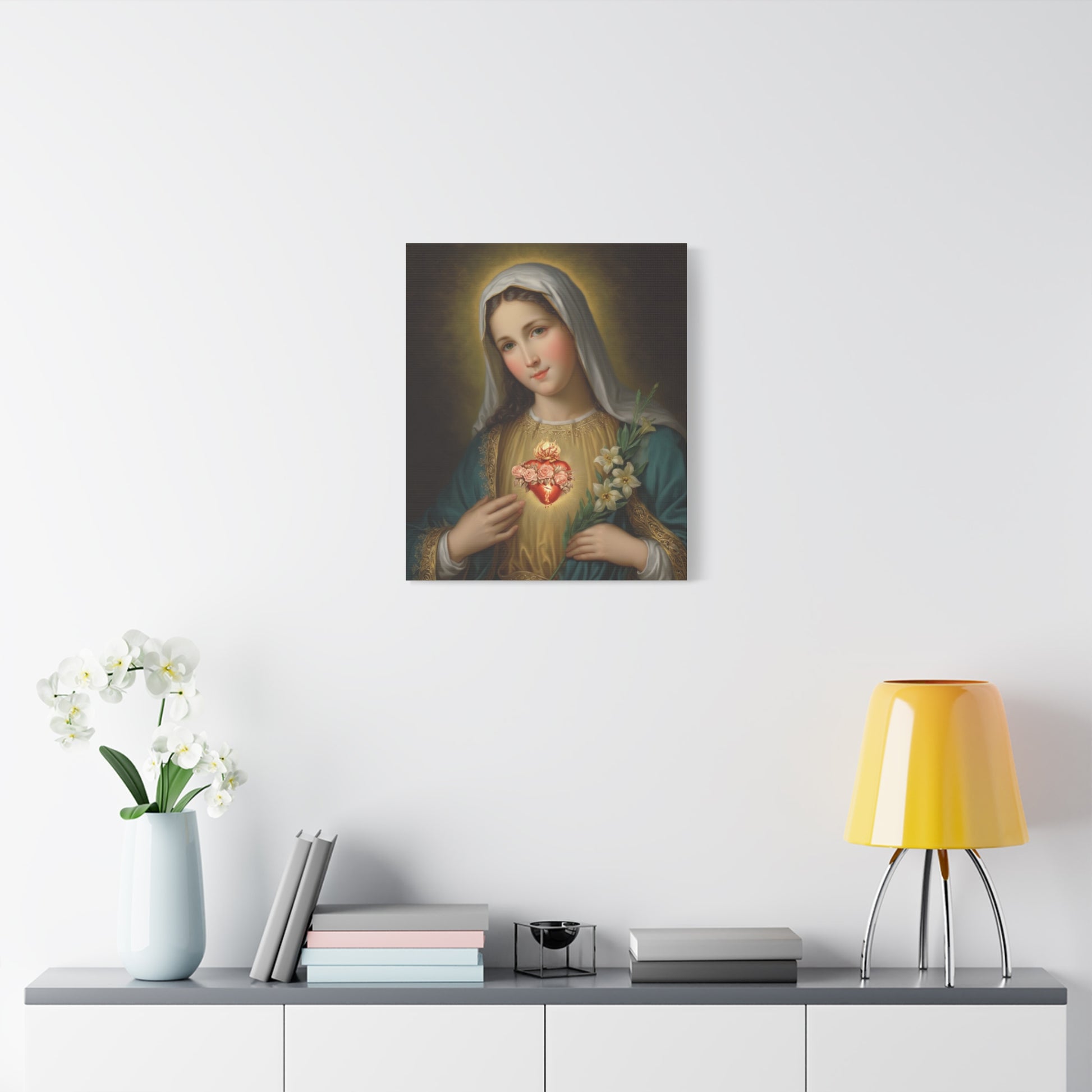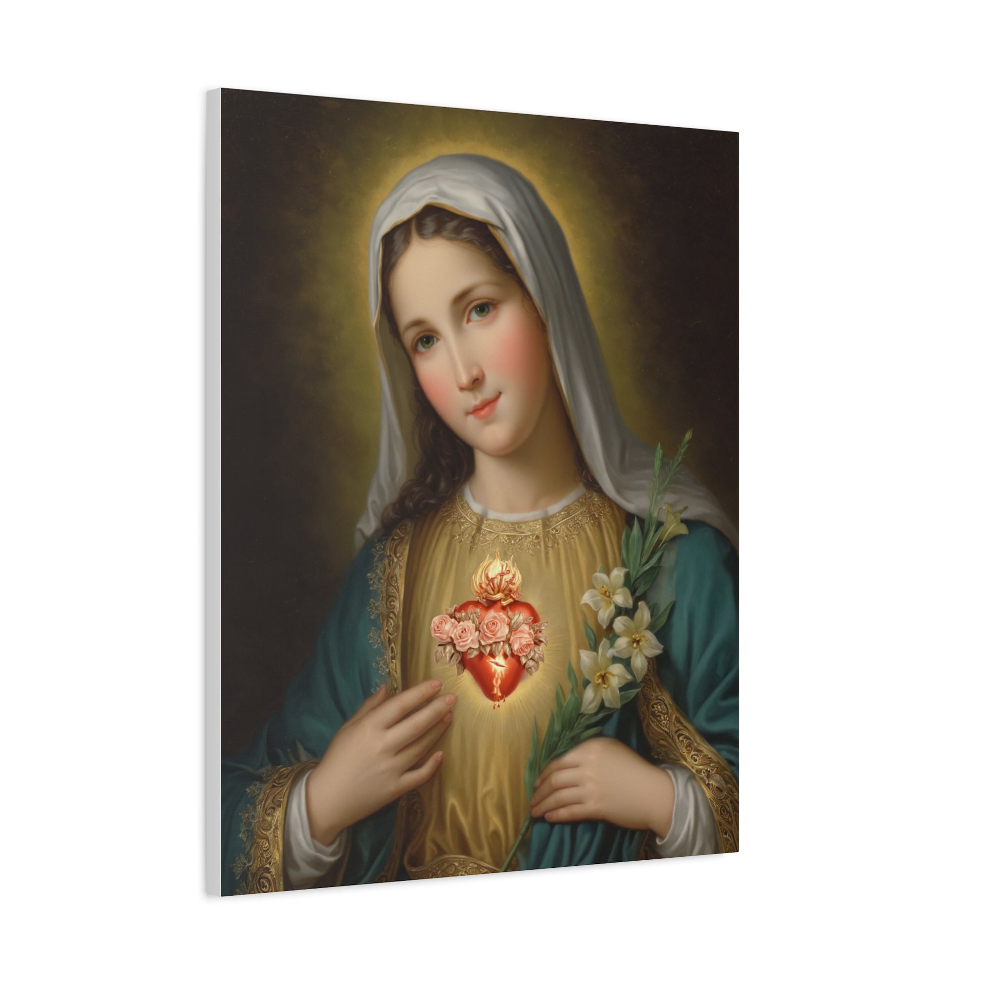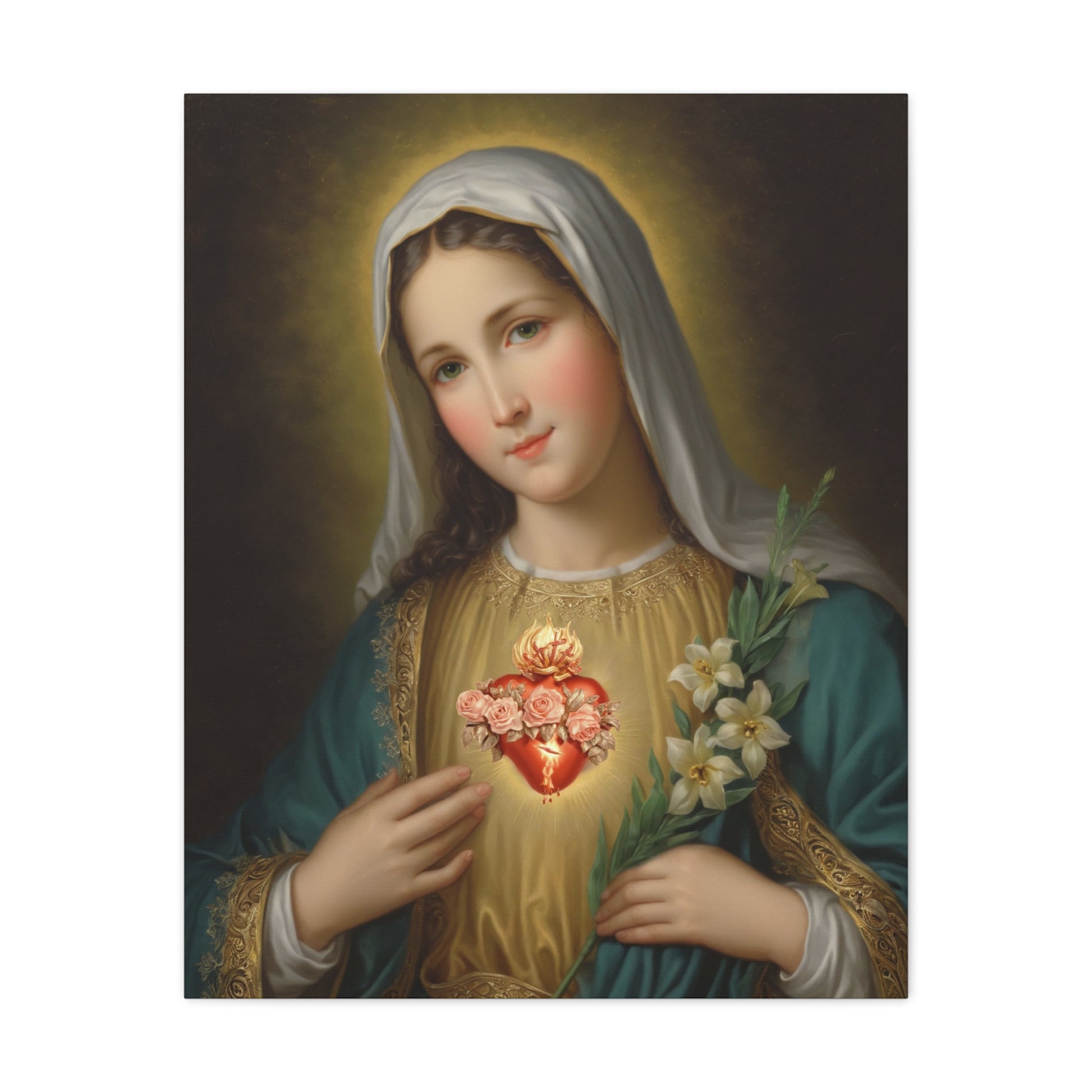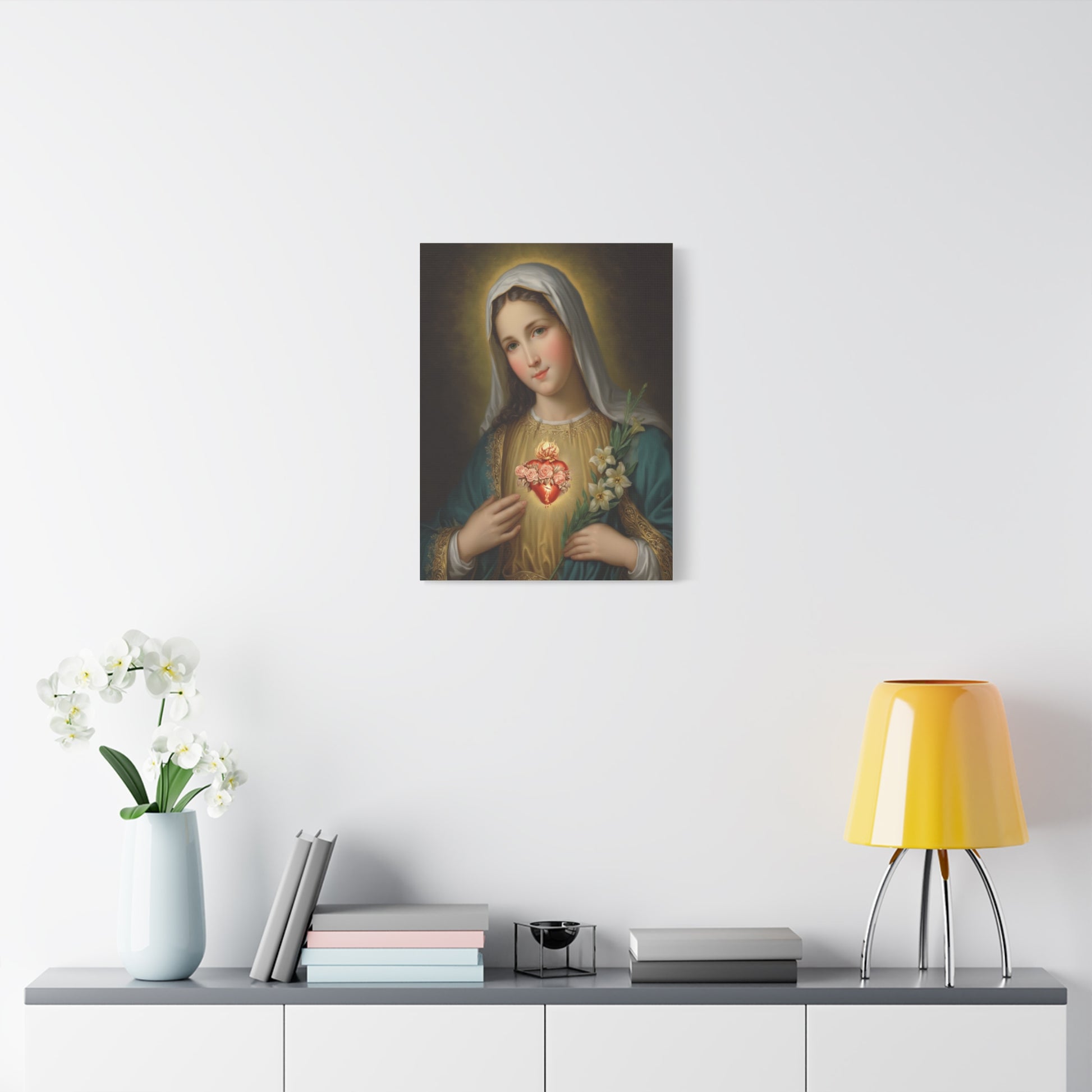 Immaculate Heart Mary Catholic Canvas Wall Art, Christian Decor