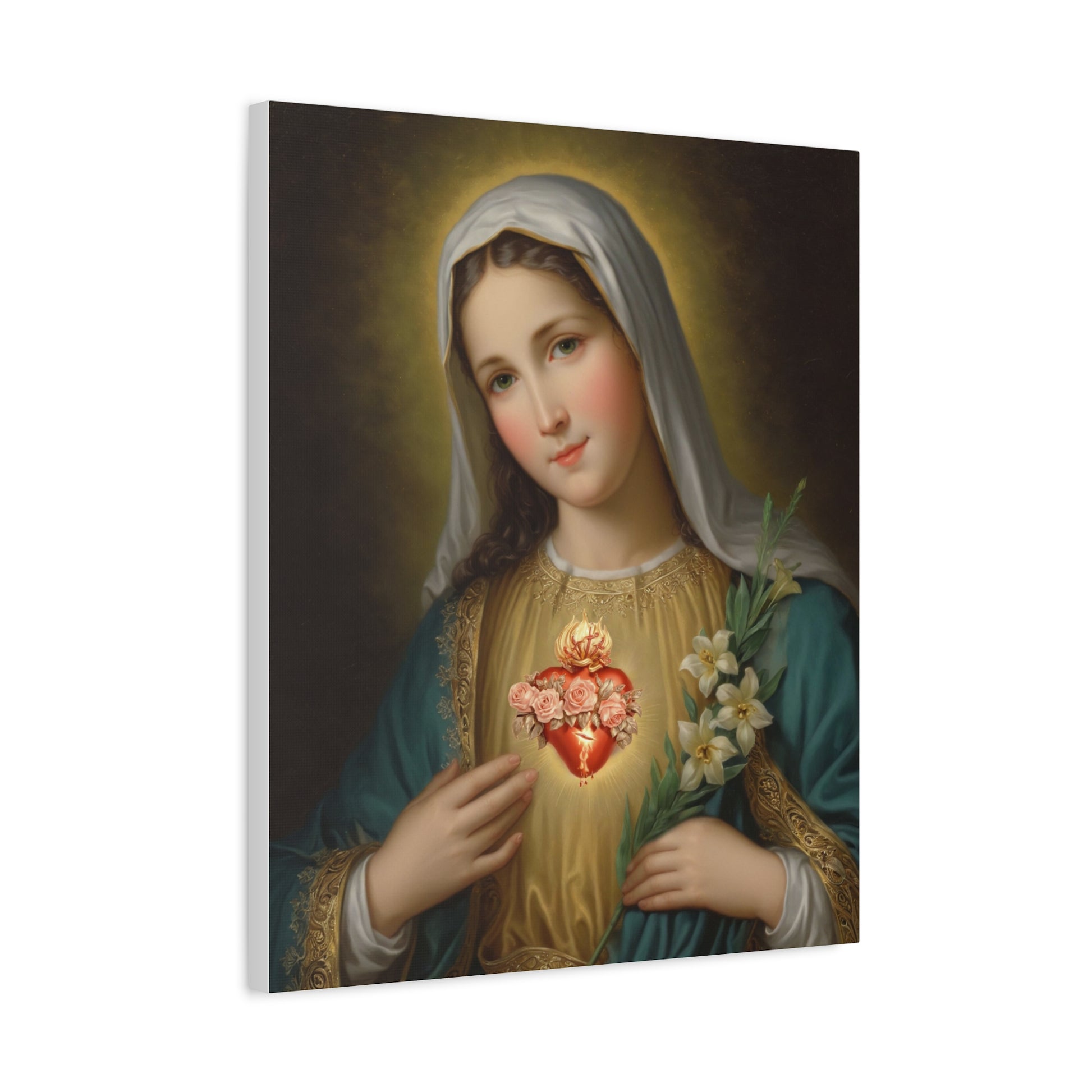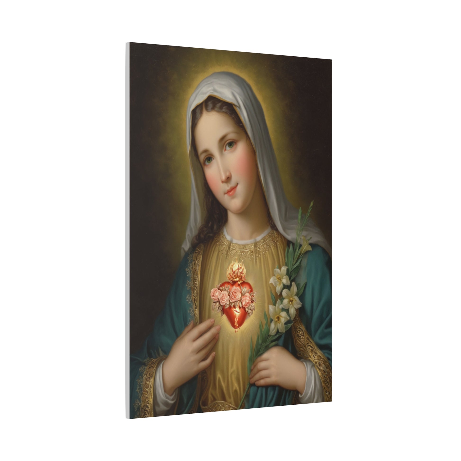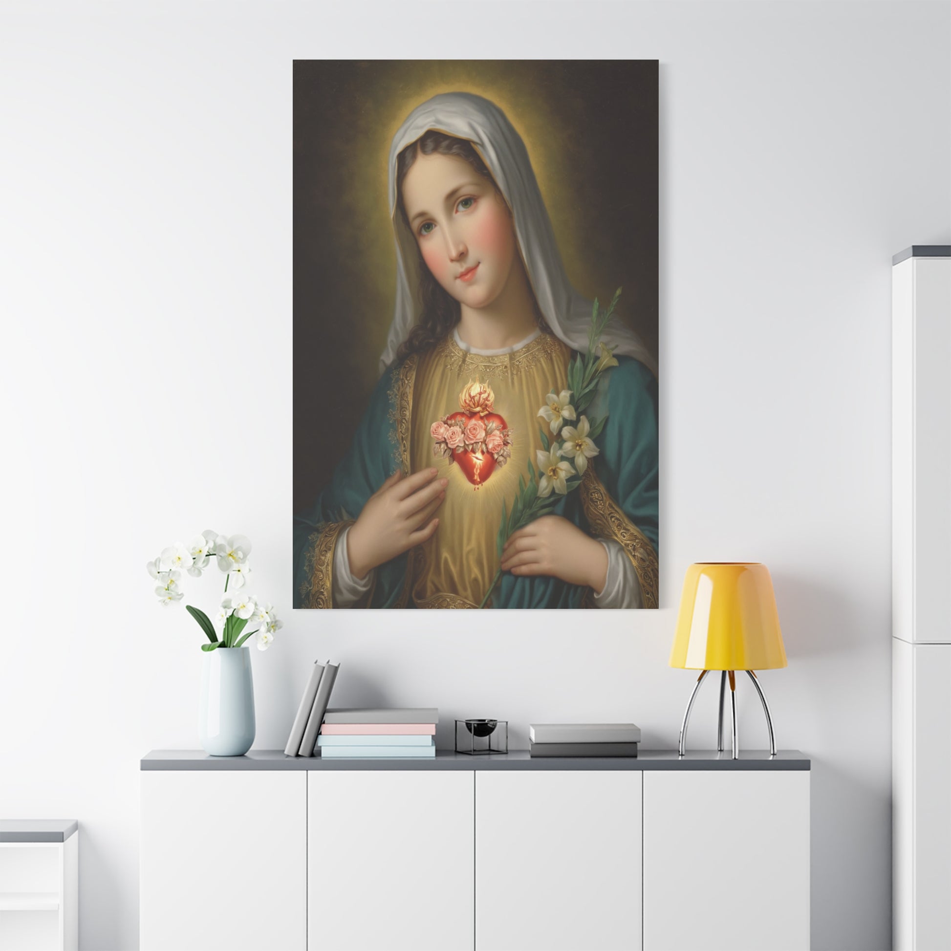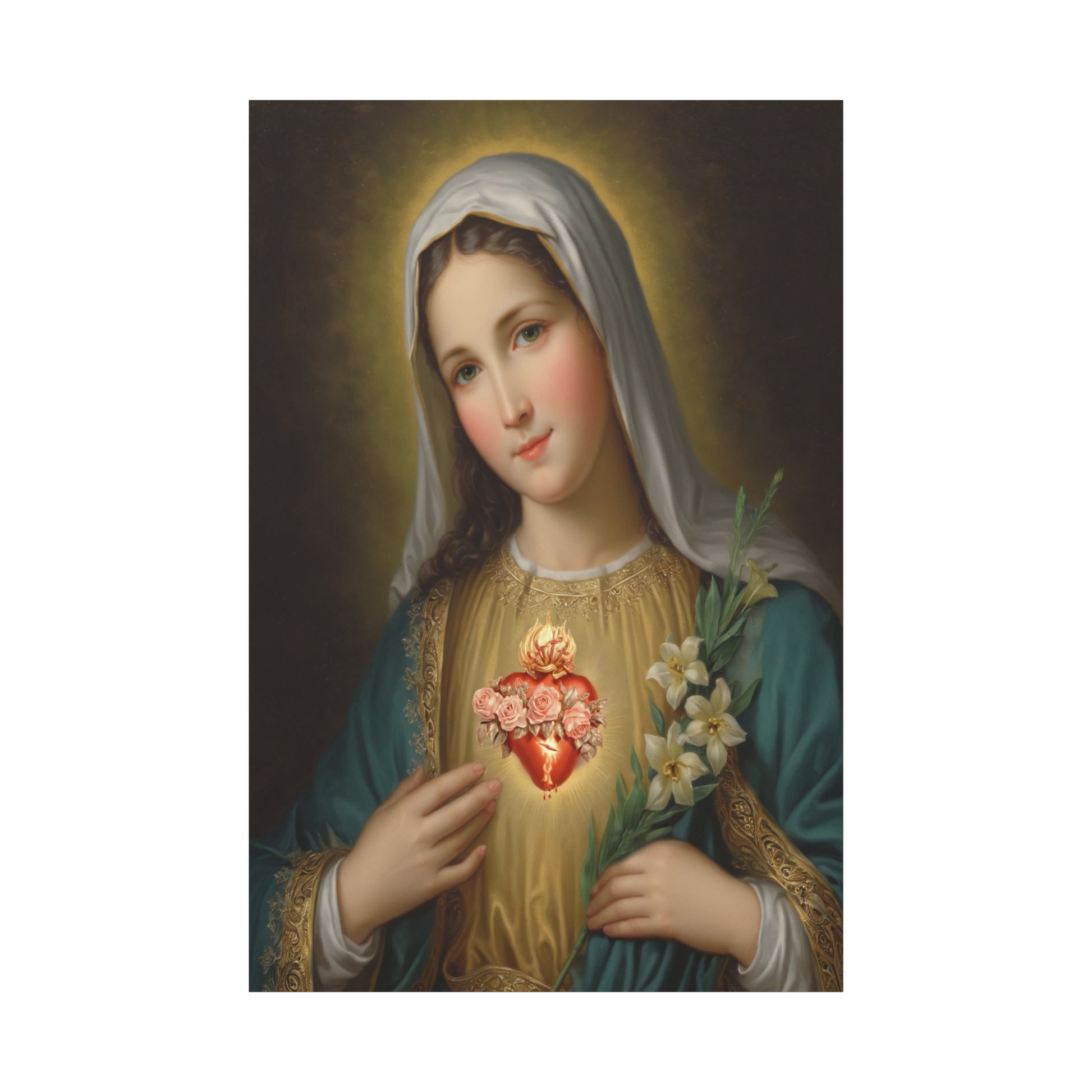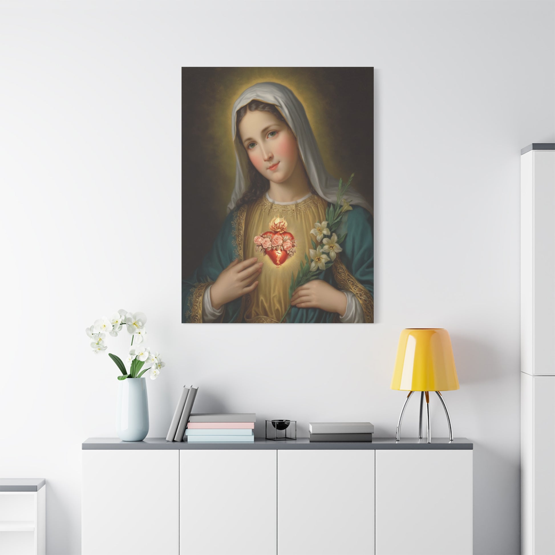 Immaculate Heart Mary Catholic Canvas Wall Art, Christian Decor