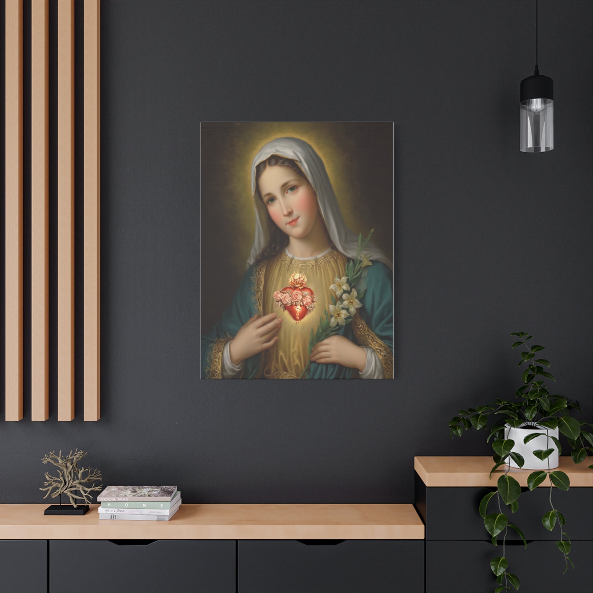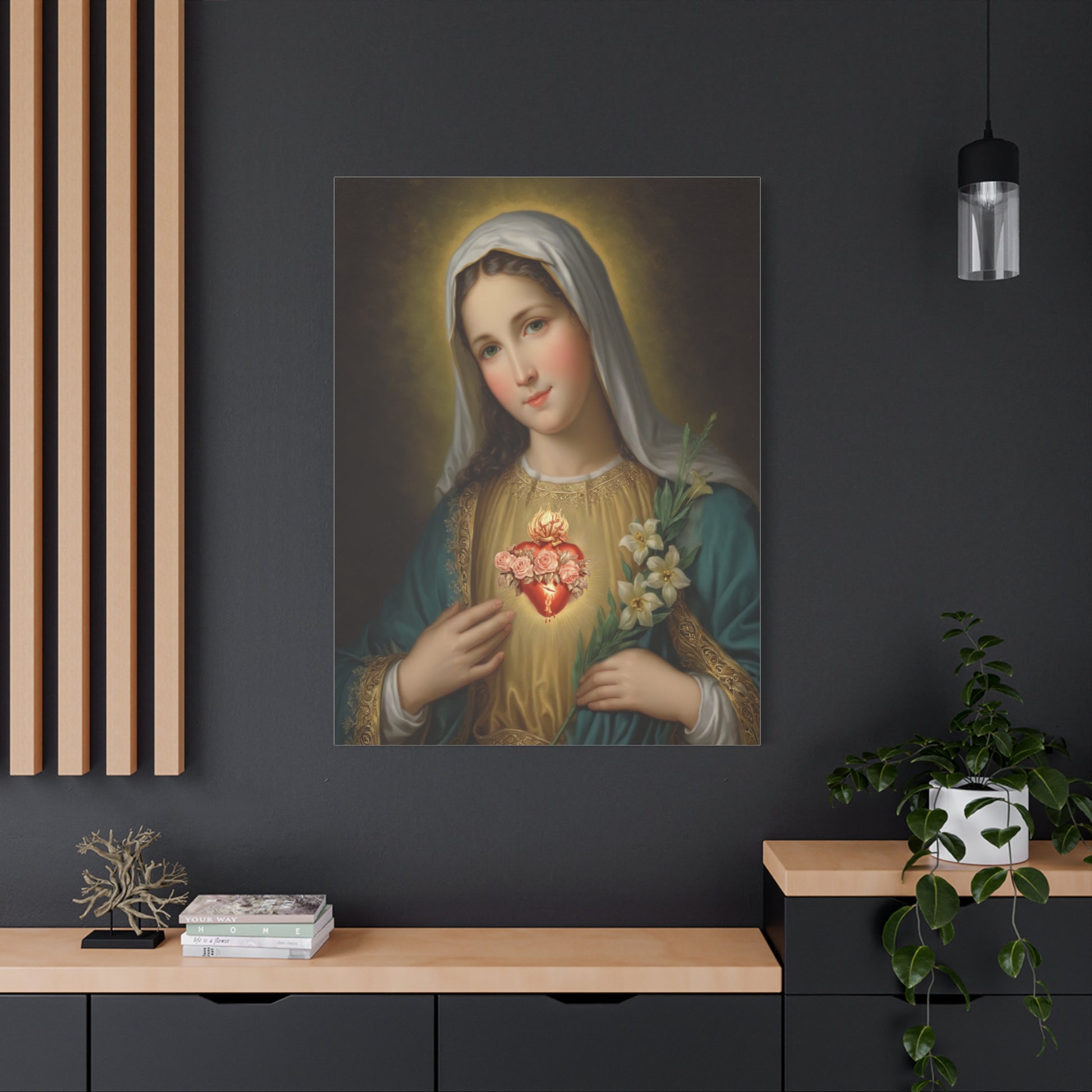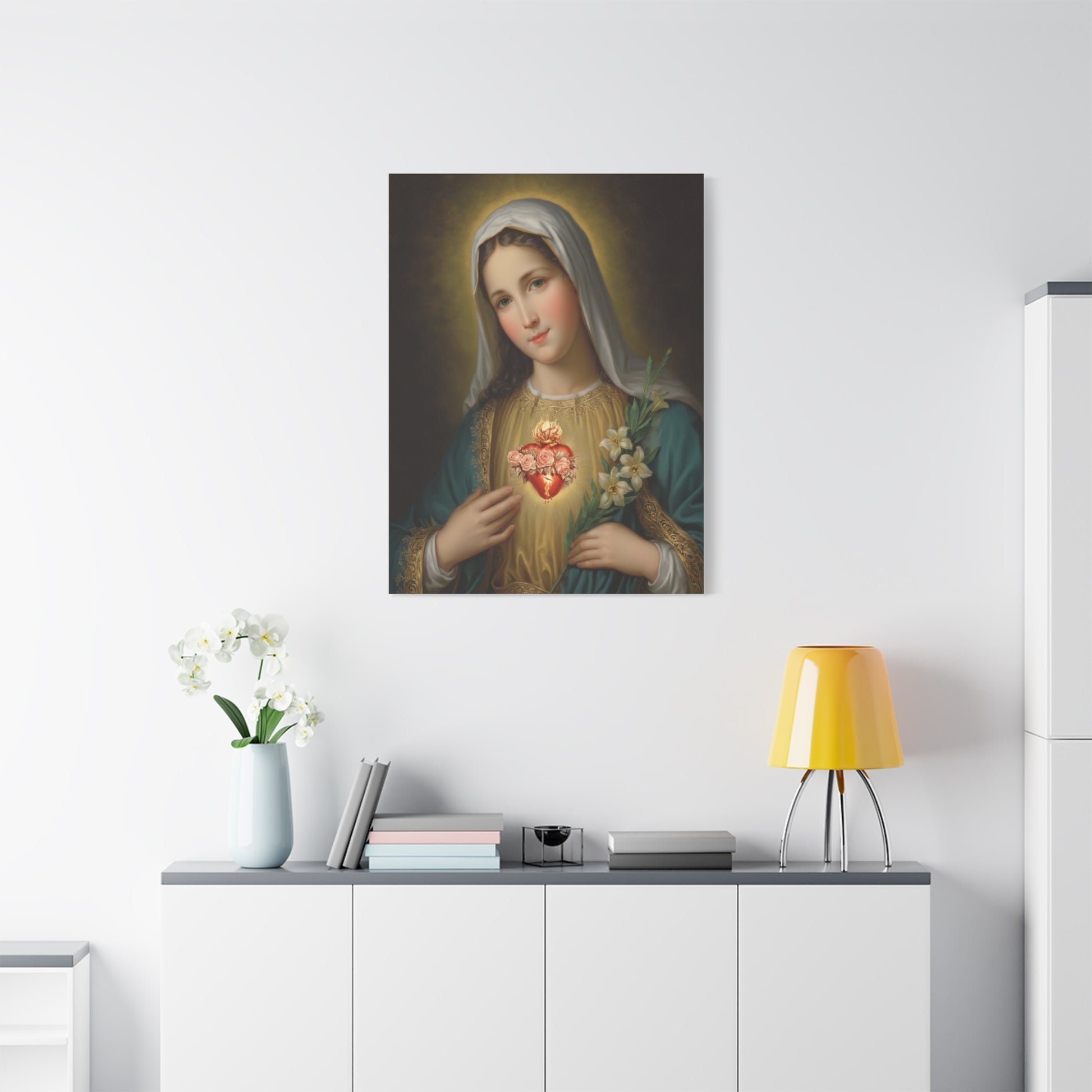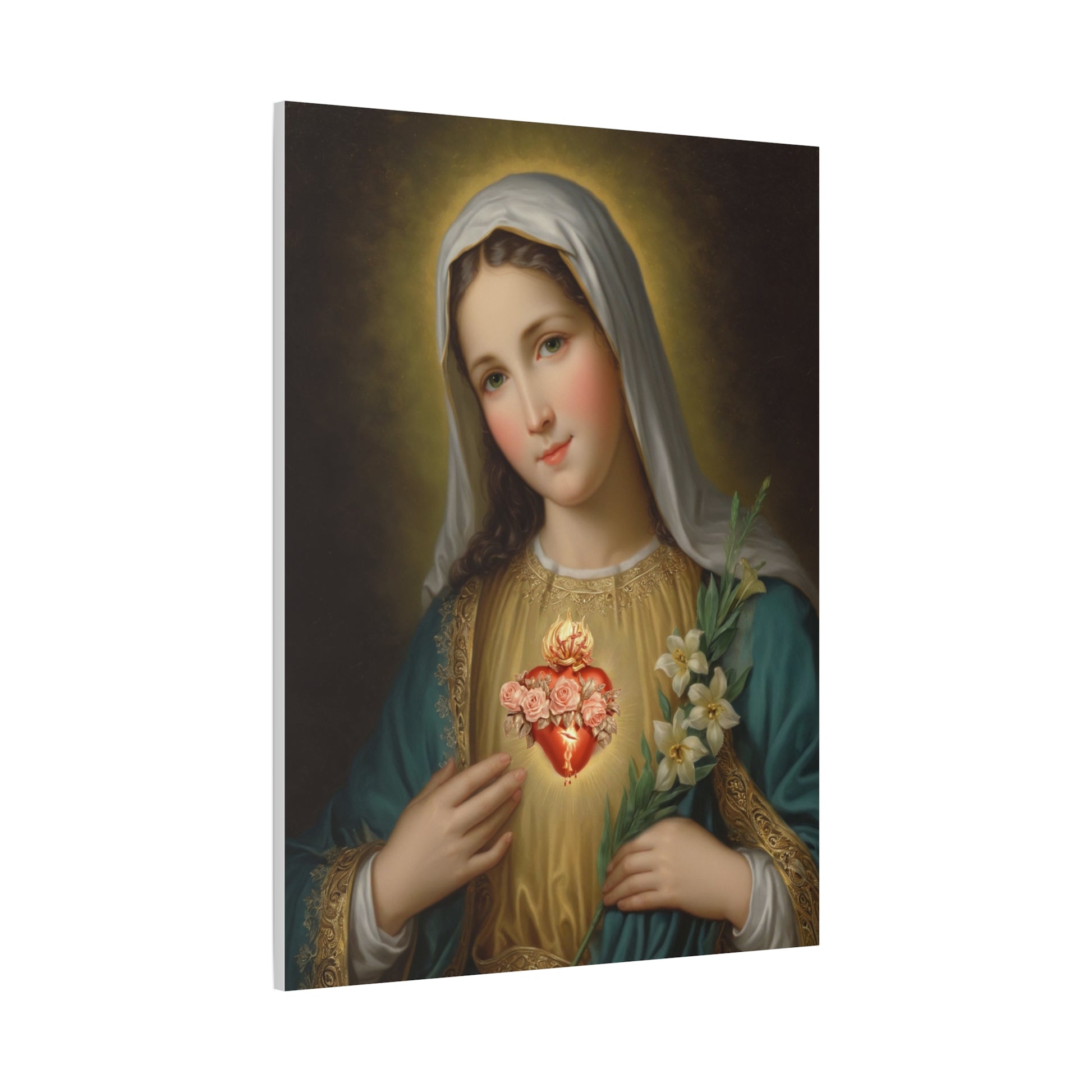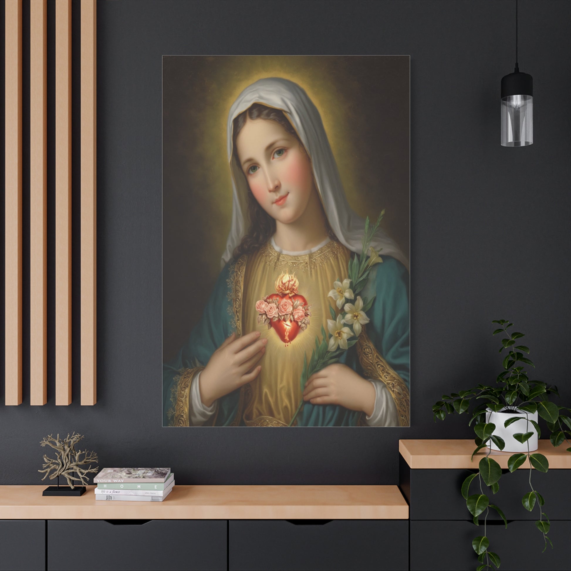 Immaculate Heart Mary Catholic Canvas Wall Art, Christian Decor