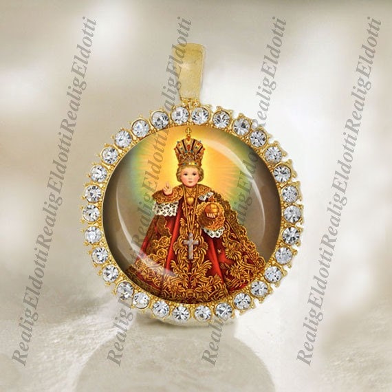 Infant Jesus of Prague - Religious Christian Catholic Medal Pendant / Charm 25mm Round Cabochon