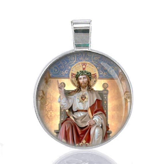 Jesus Christ our King with Sacred Heart Religious Pendant Christian Catholic Medal