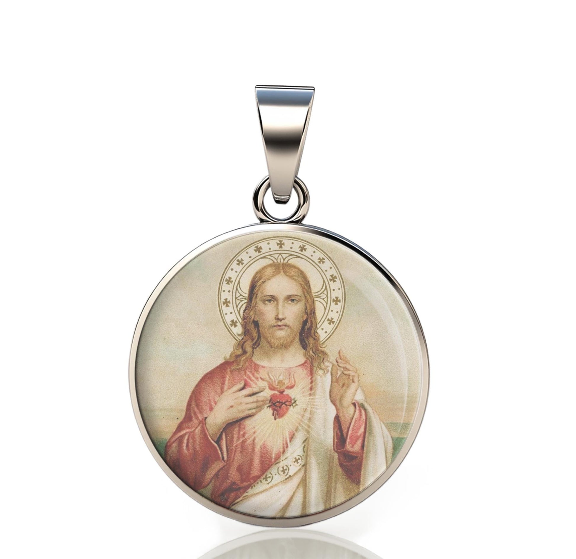 Jesus Sacred Heart Catholic 925 Sterling Silver Round Pendant Christian Religious Medal Small 20mm