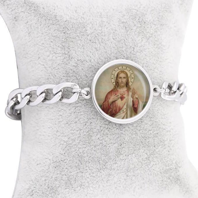 Jesus Sacred Heart Curb Bracelet Gold or Silver tone Religious Jewelry Simple Chain