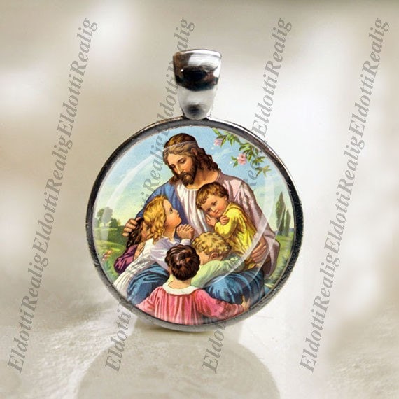 Jesus Sitting with Children - Catholic Medal Pendant Religious Christian Jewelry