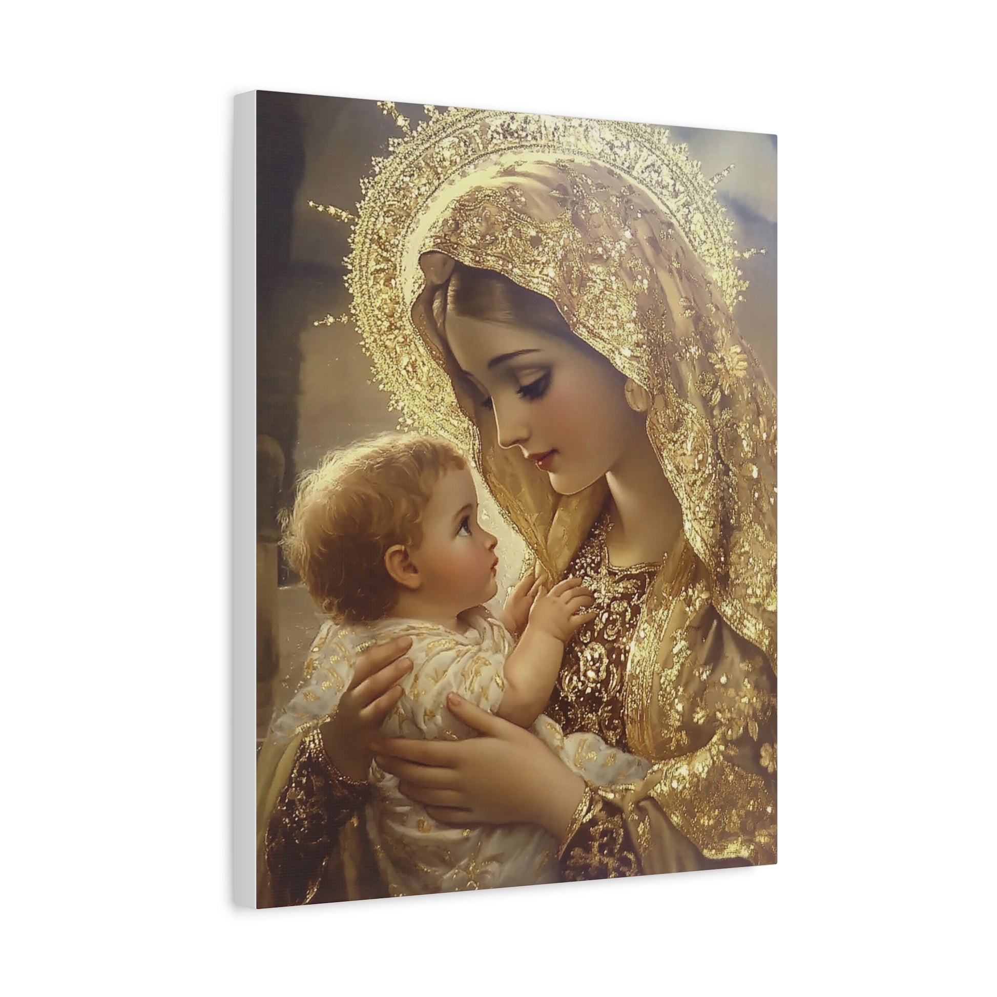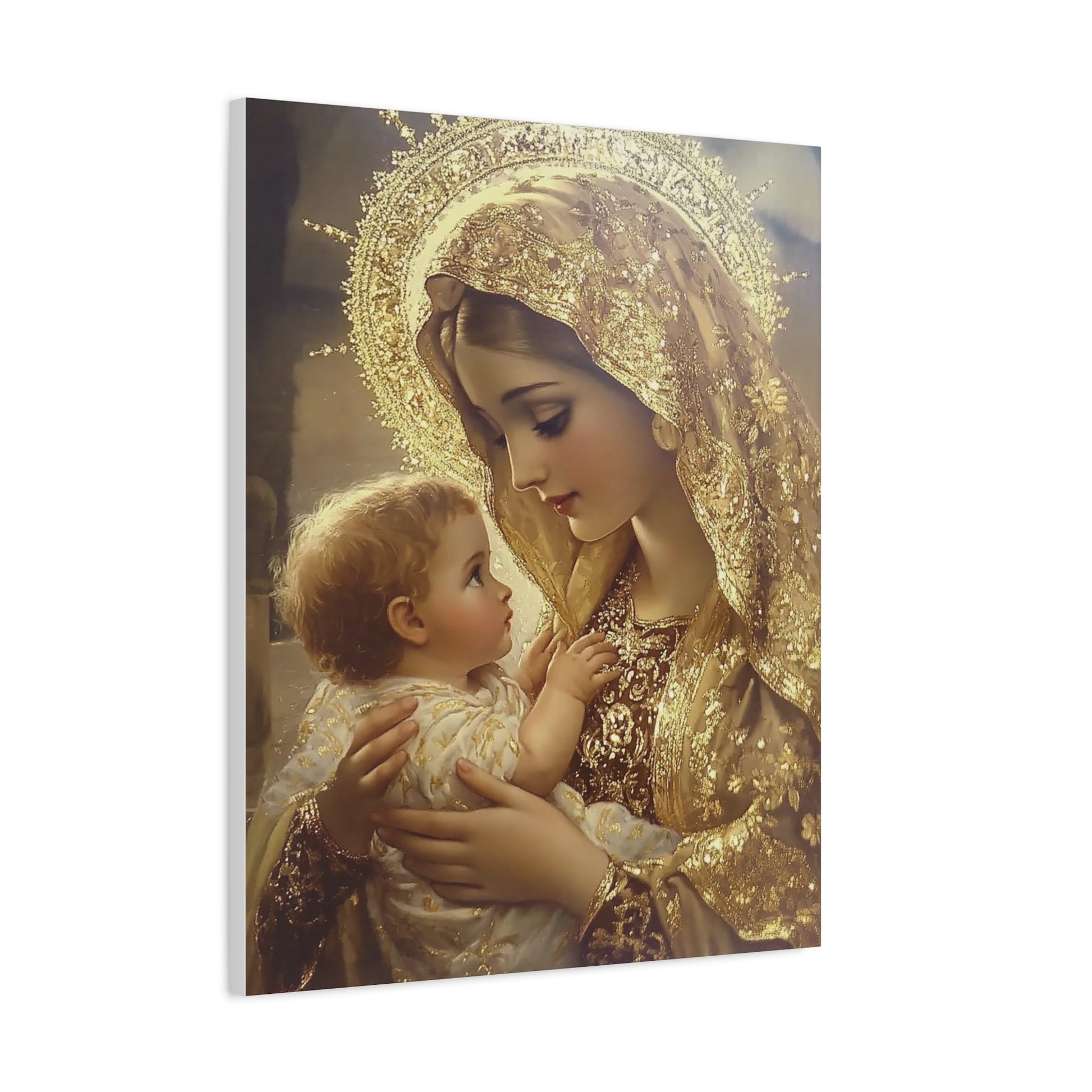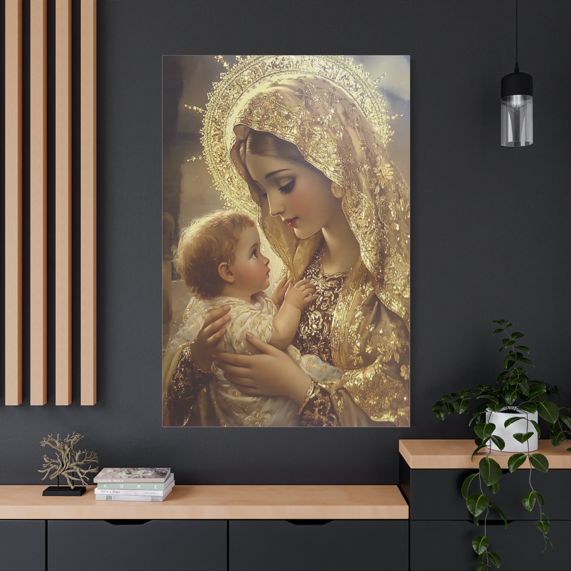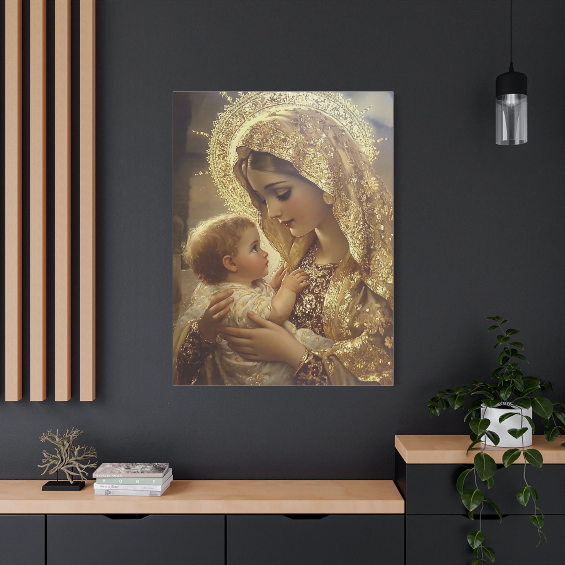 Mary and Baby in Gold Catholic Canvas Wall Art, Christian Decor