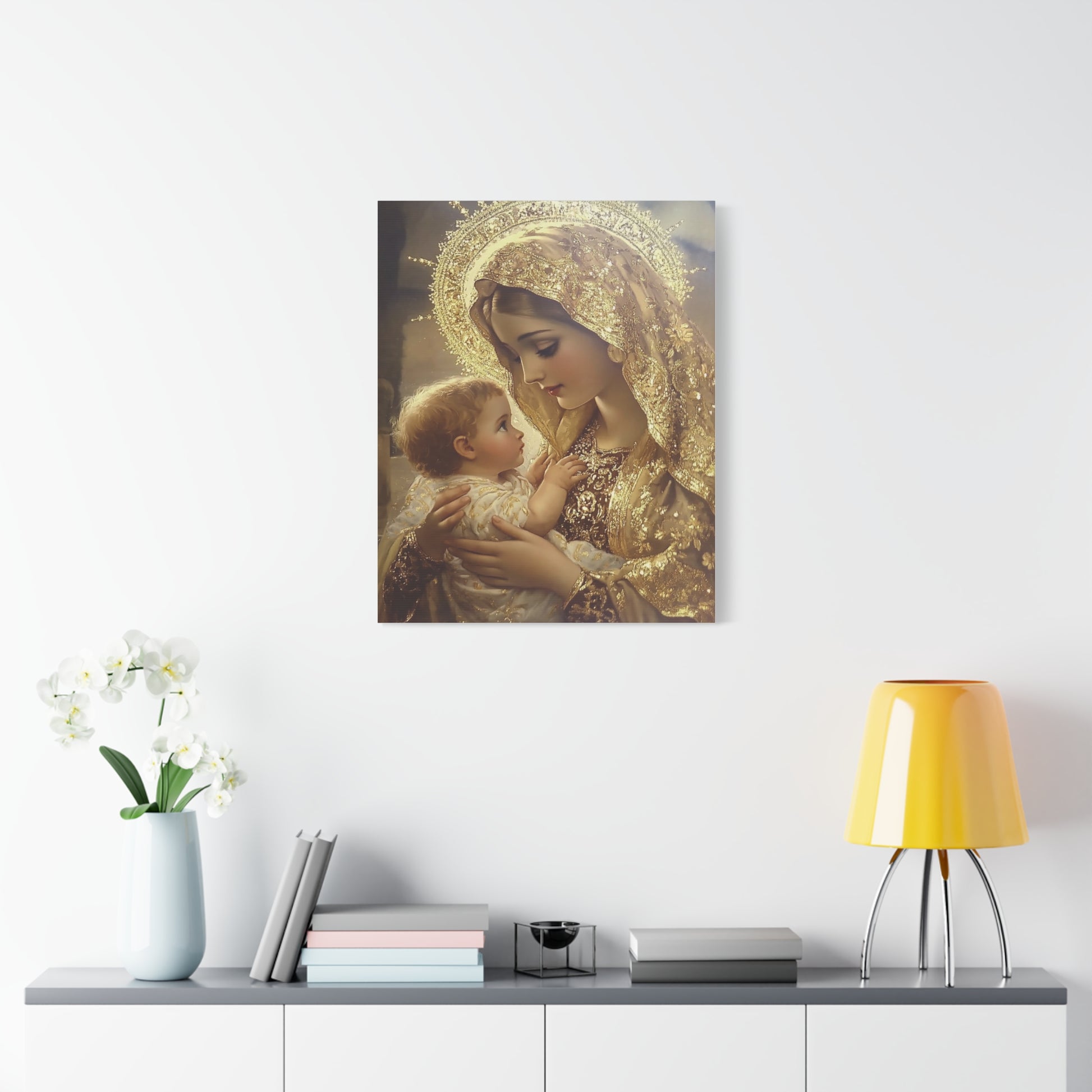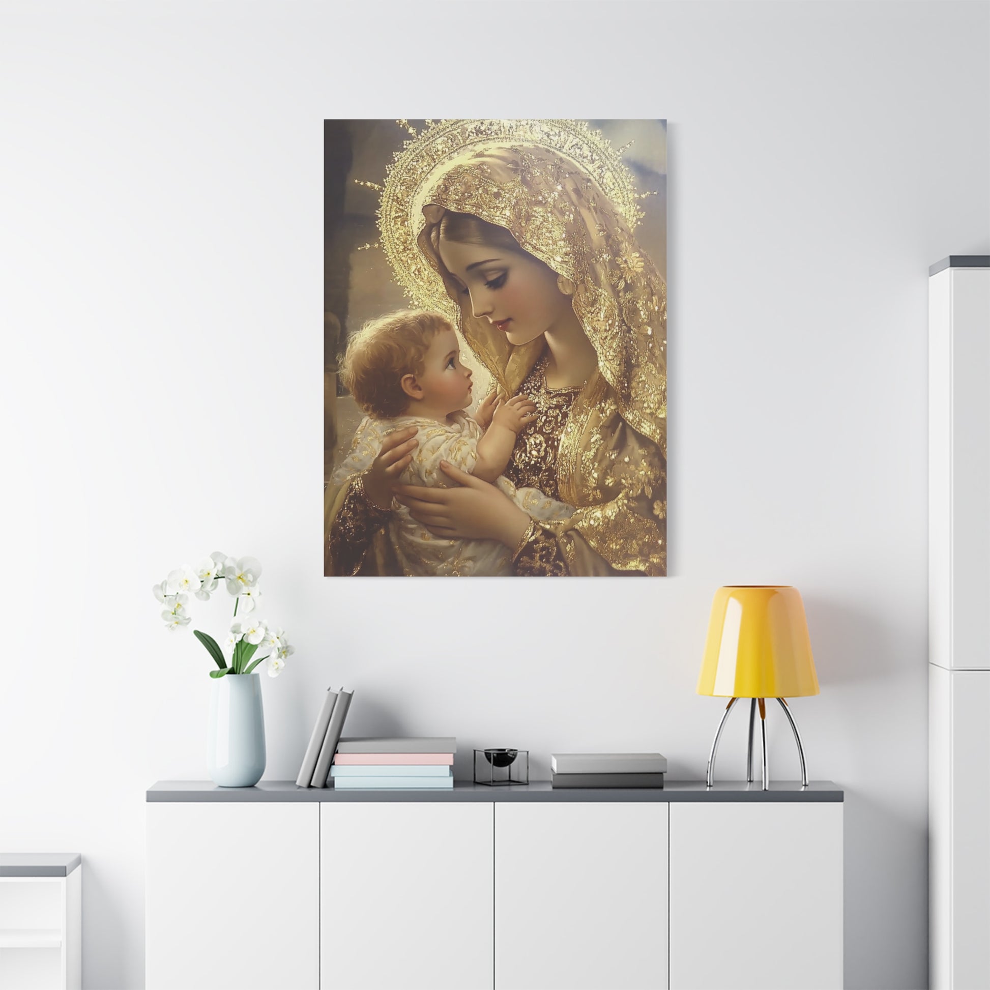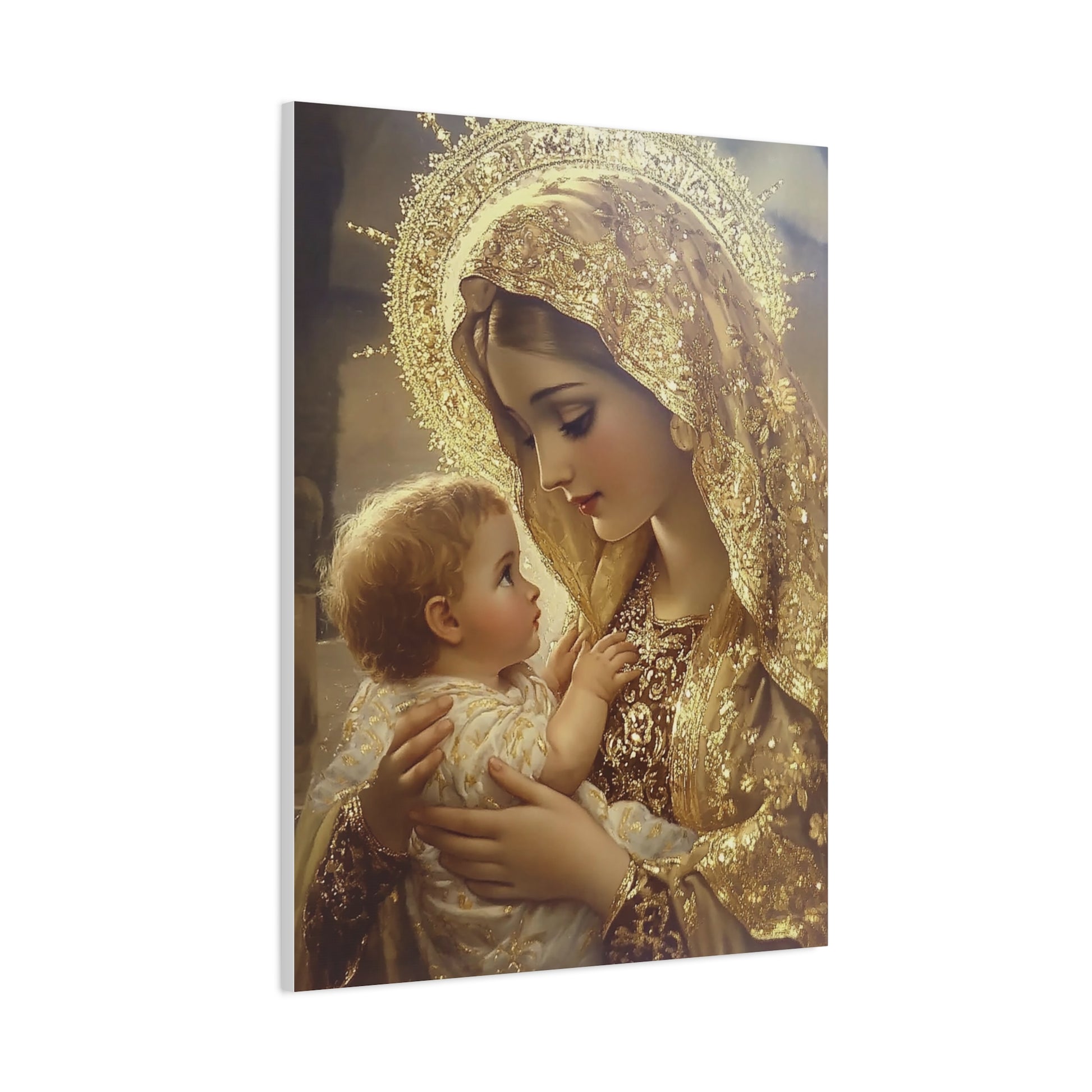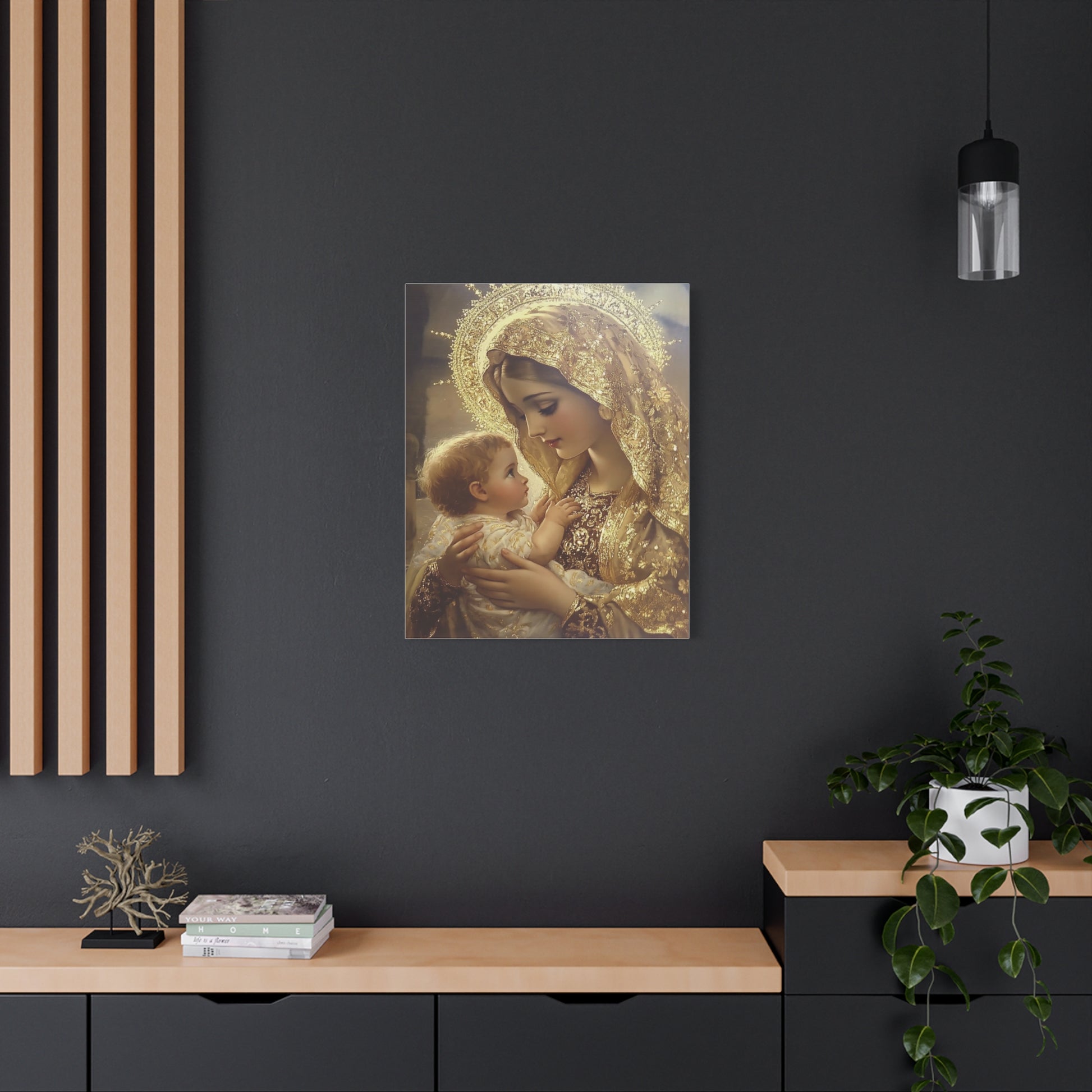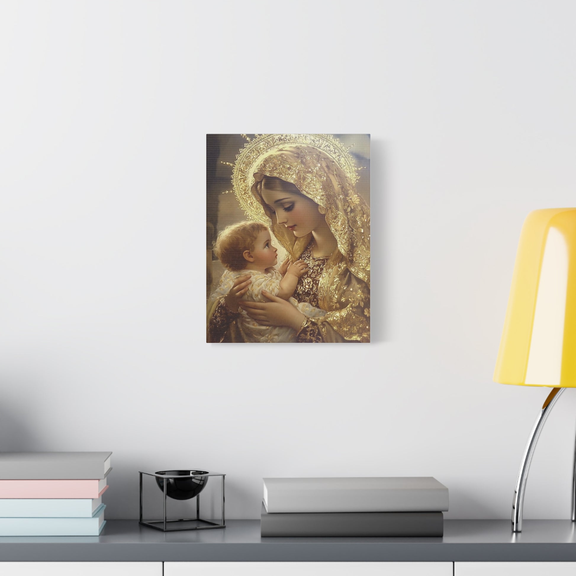 Mary and Baby in Gold Catholic Canvas Wall Art, Christian Decor
