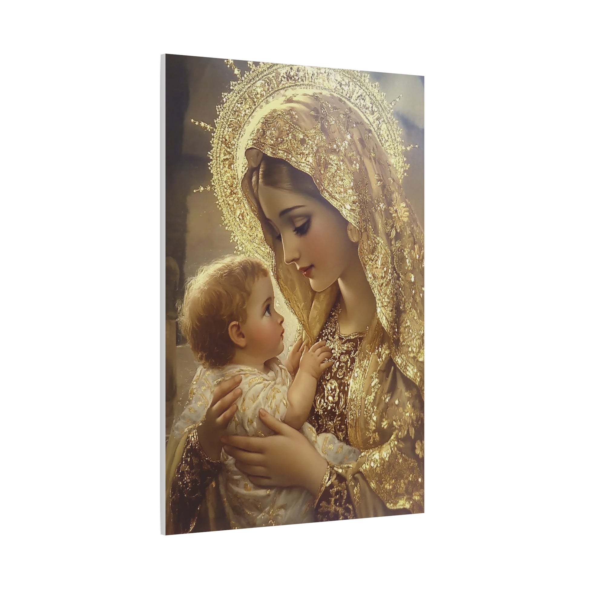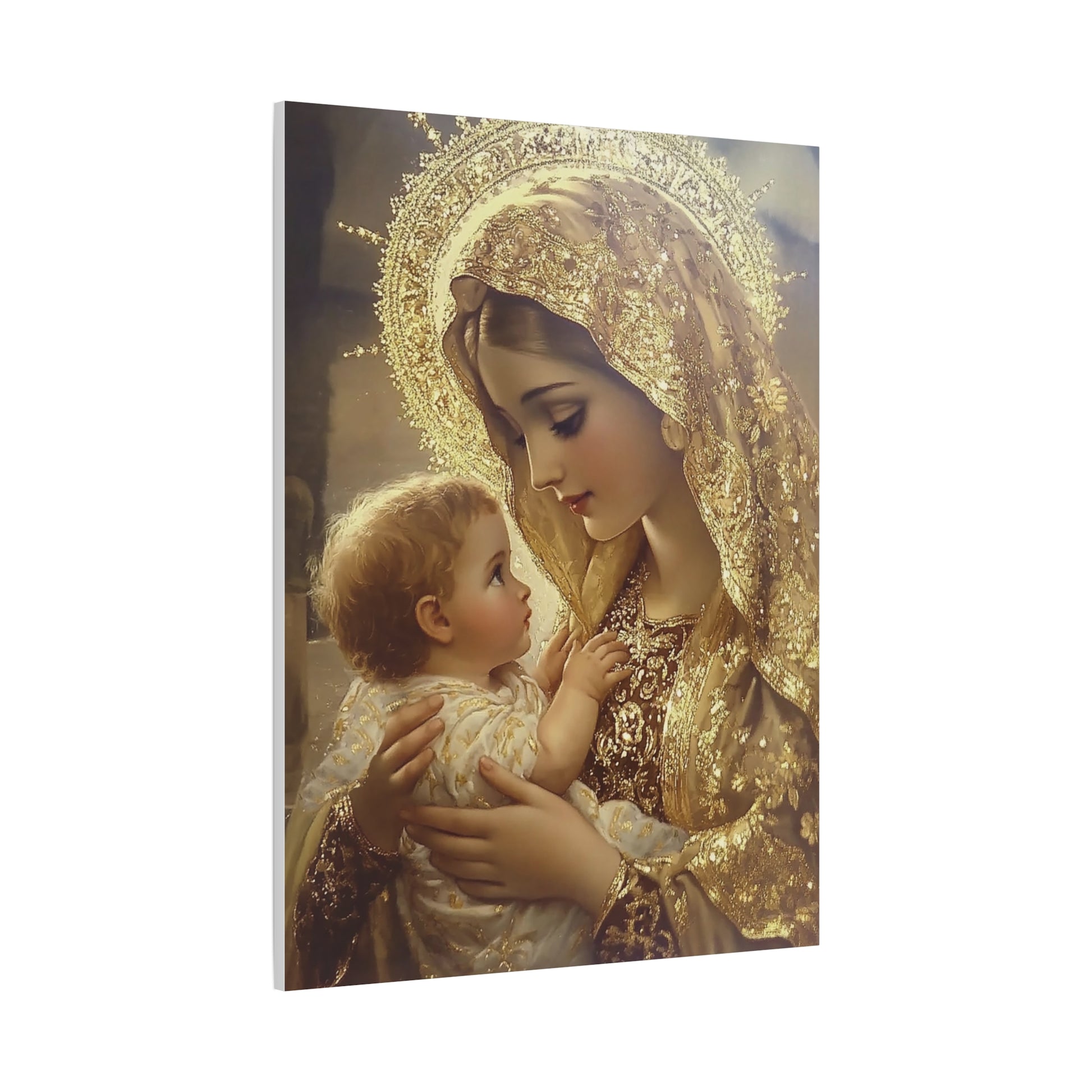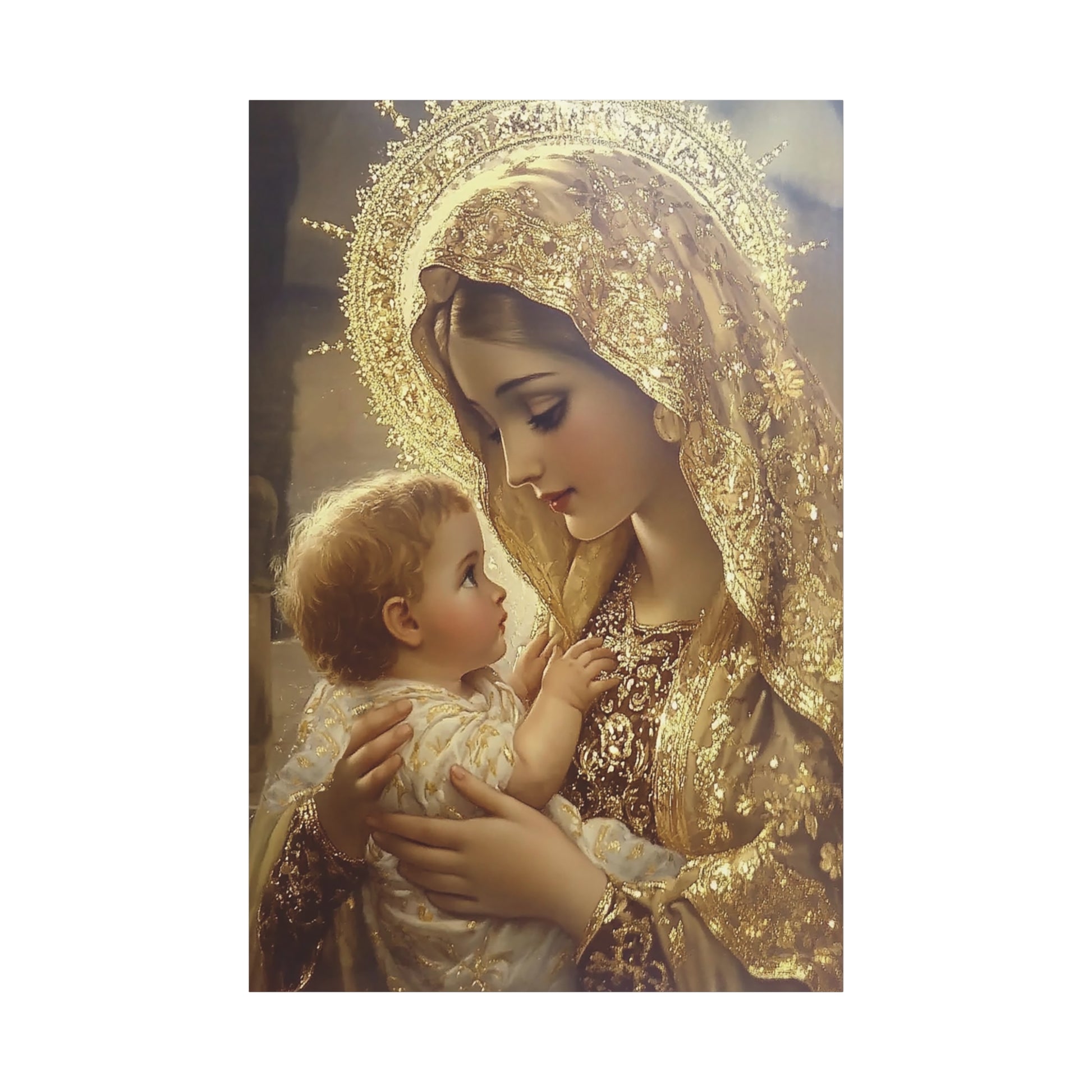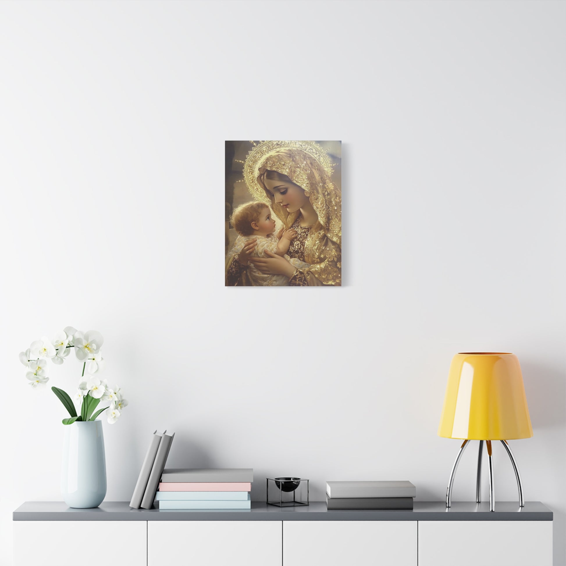 Mary and Baby in Gold Catholic Canvas Wall Art, Christian Decor