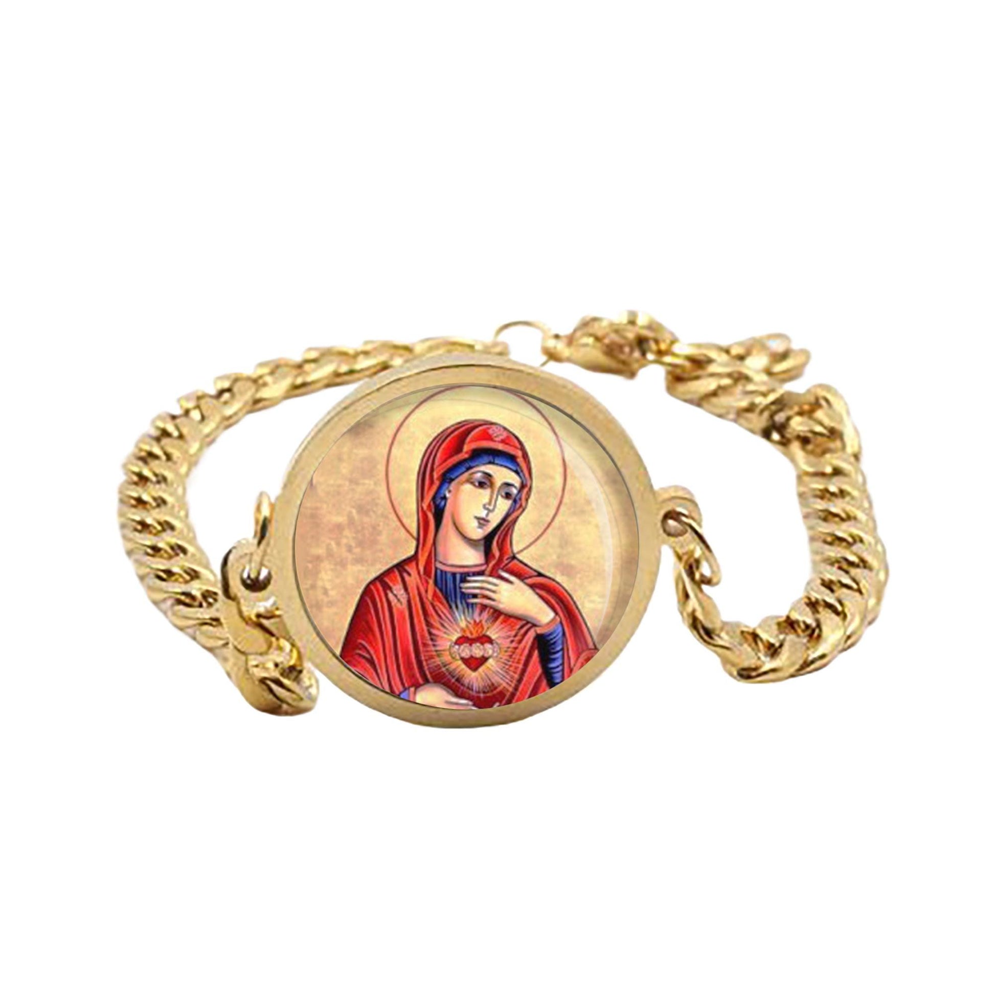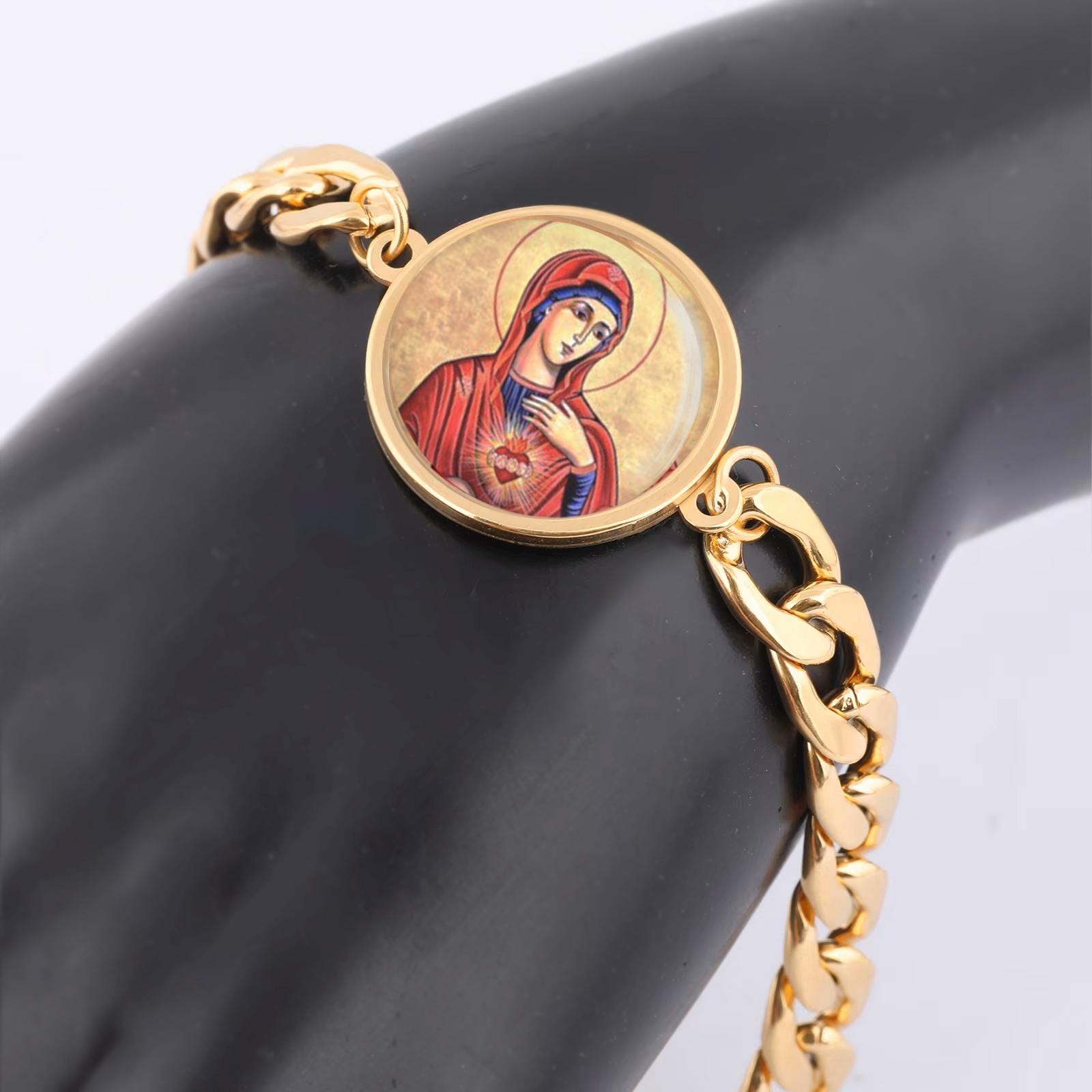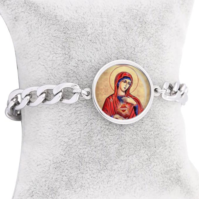 Mary Immaculate Heart Curb Bracelet Gold or Silver tone Religious Jewelry Simple Chain