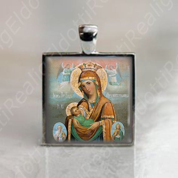 Milk-bearing Icon of Mother of God Virgin Mary Milk-Giver Eastern Orthodox Silvertone Miraculous Medal 25mm Pendant