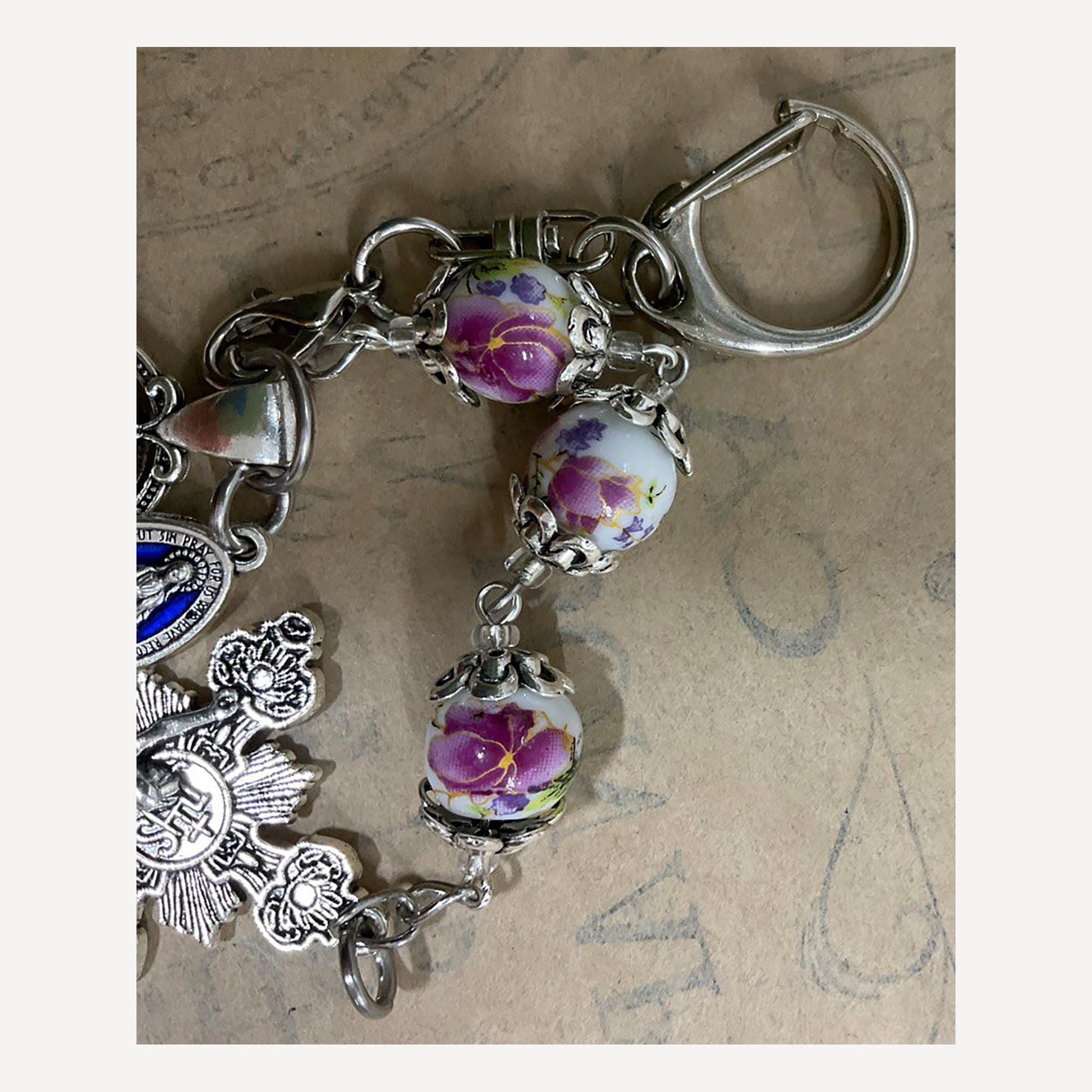 This beautiful Three Hail Mary Chaplet features 10mm ceramic floral beads.
