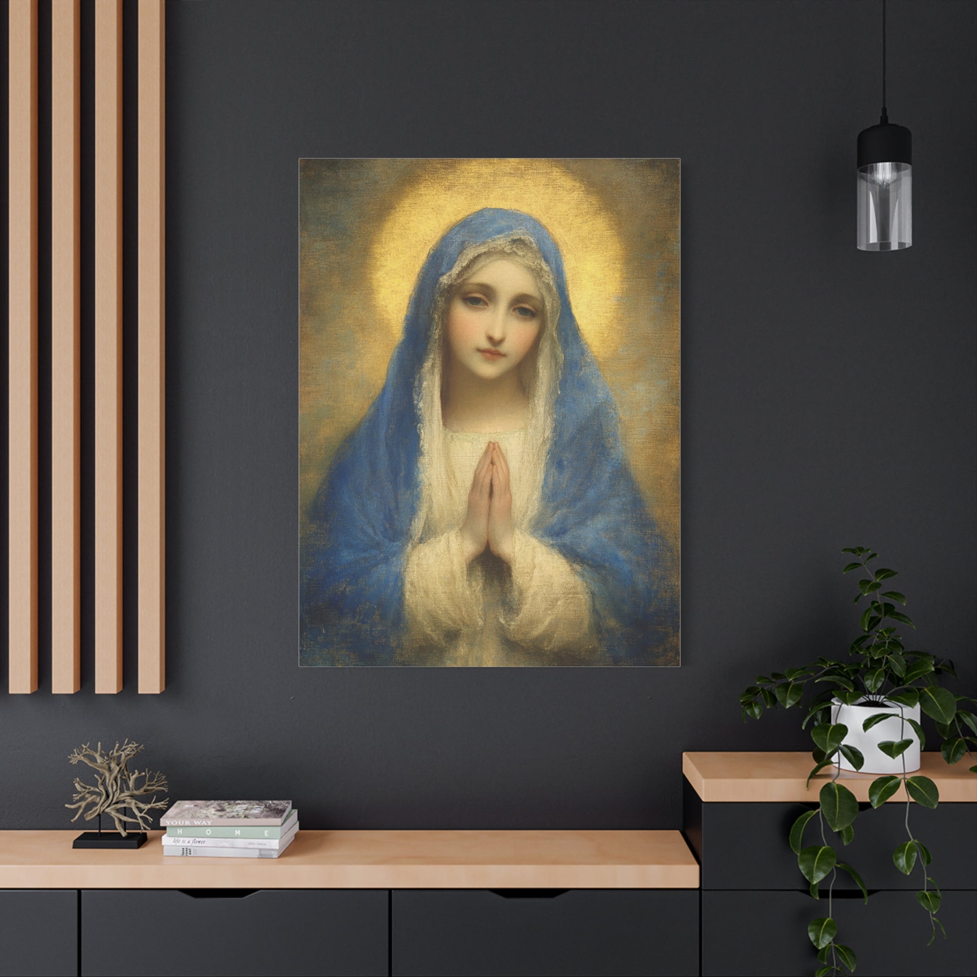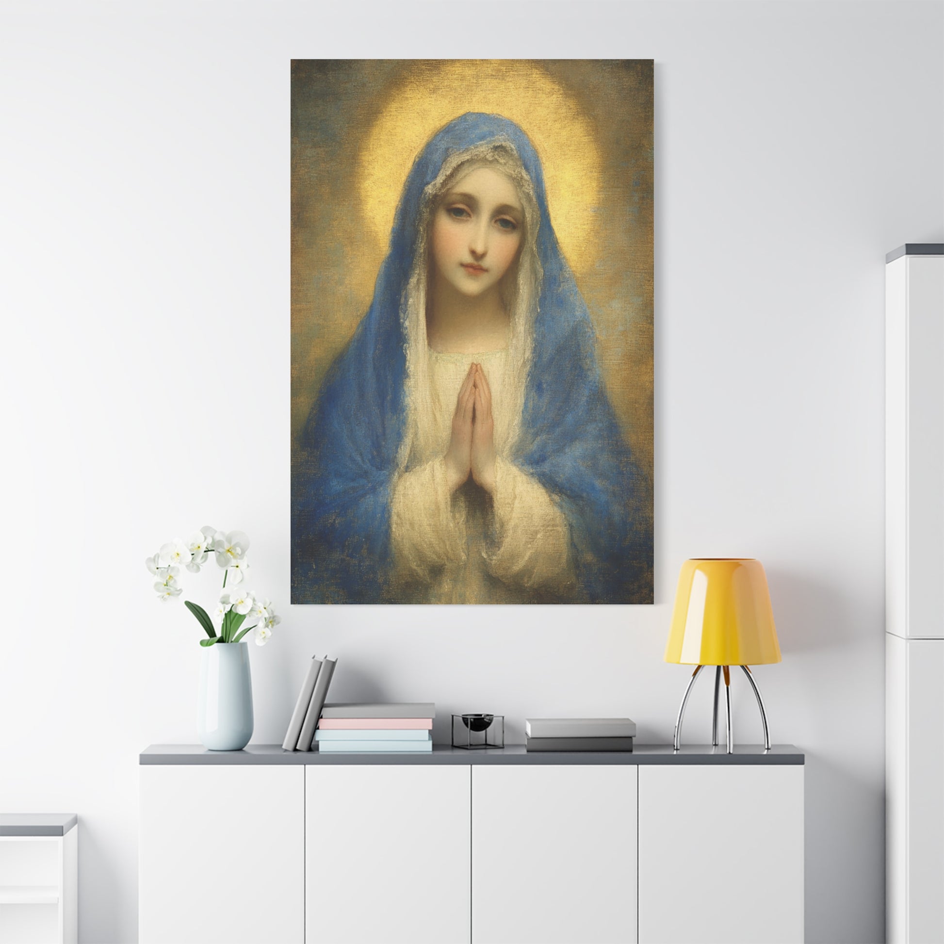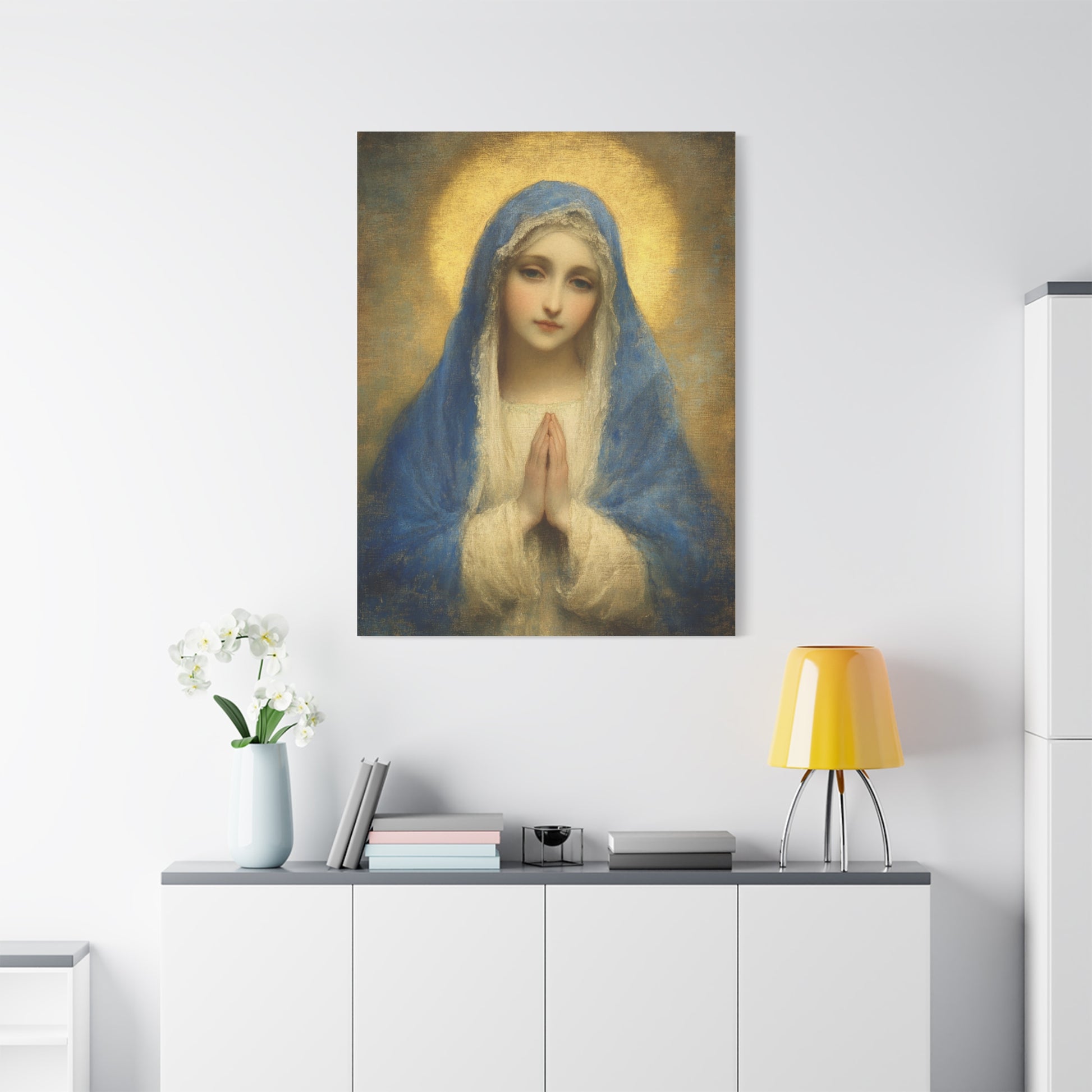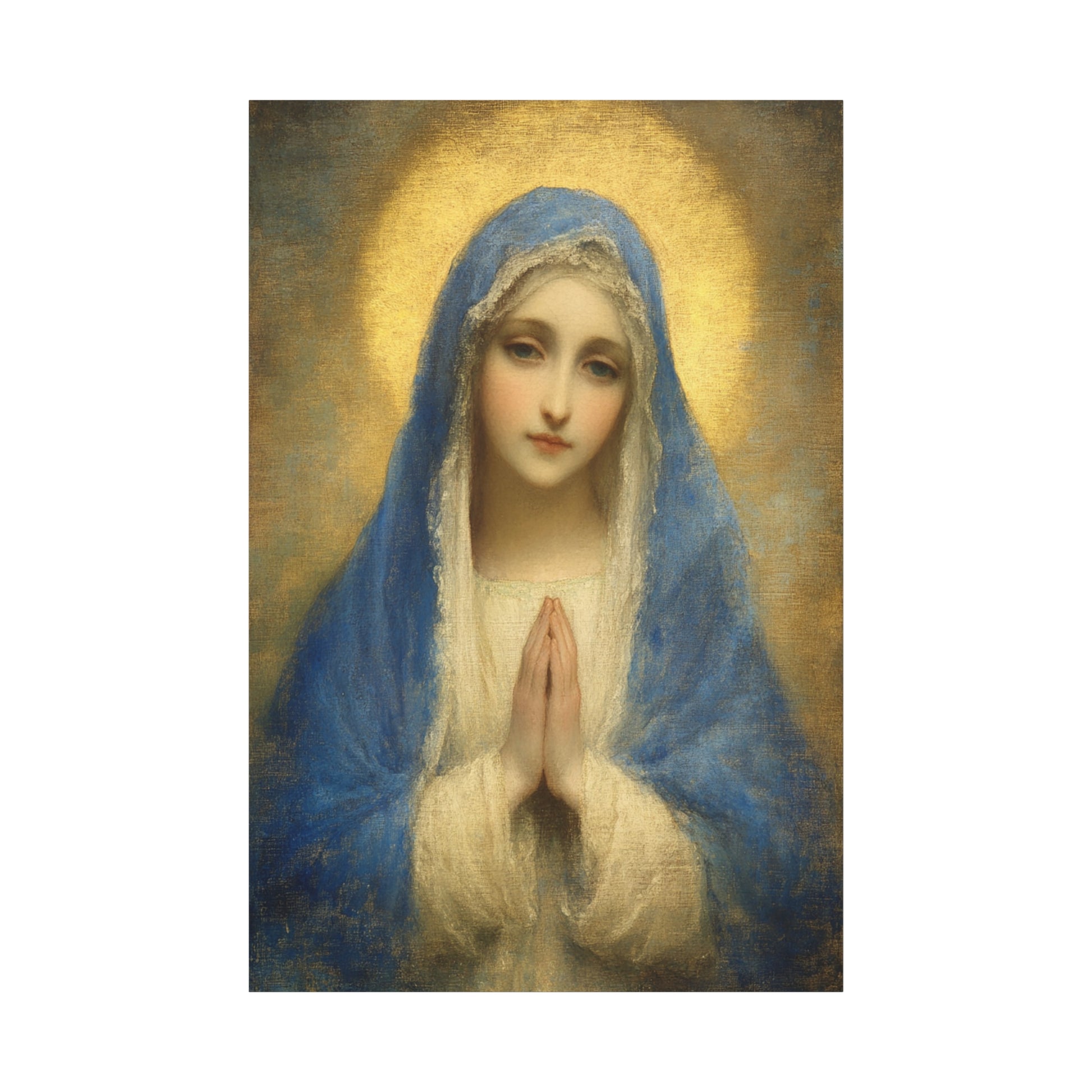 Mother Mary Blue Veil Catholic Canvas Wall Art, Christian Decor