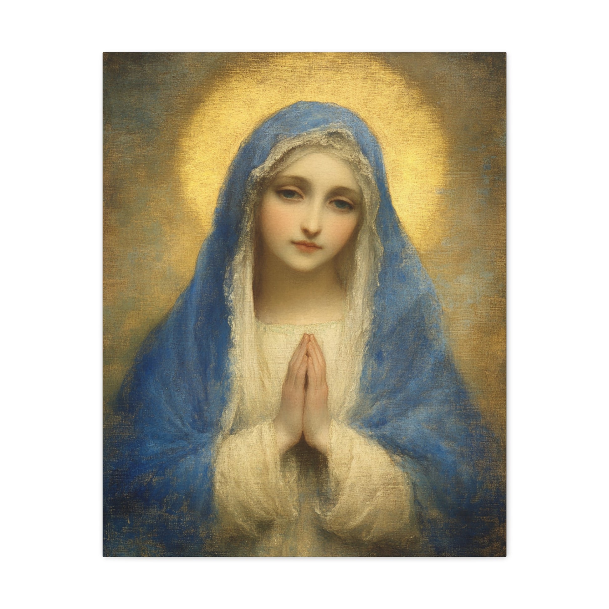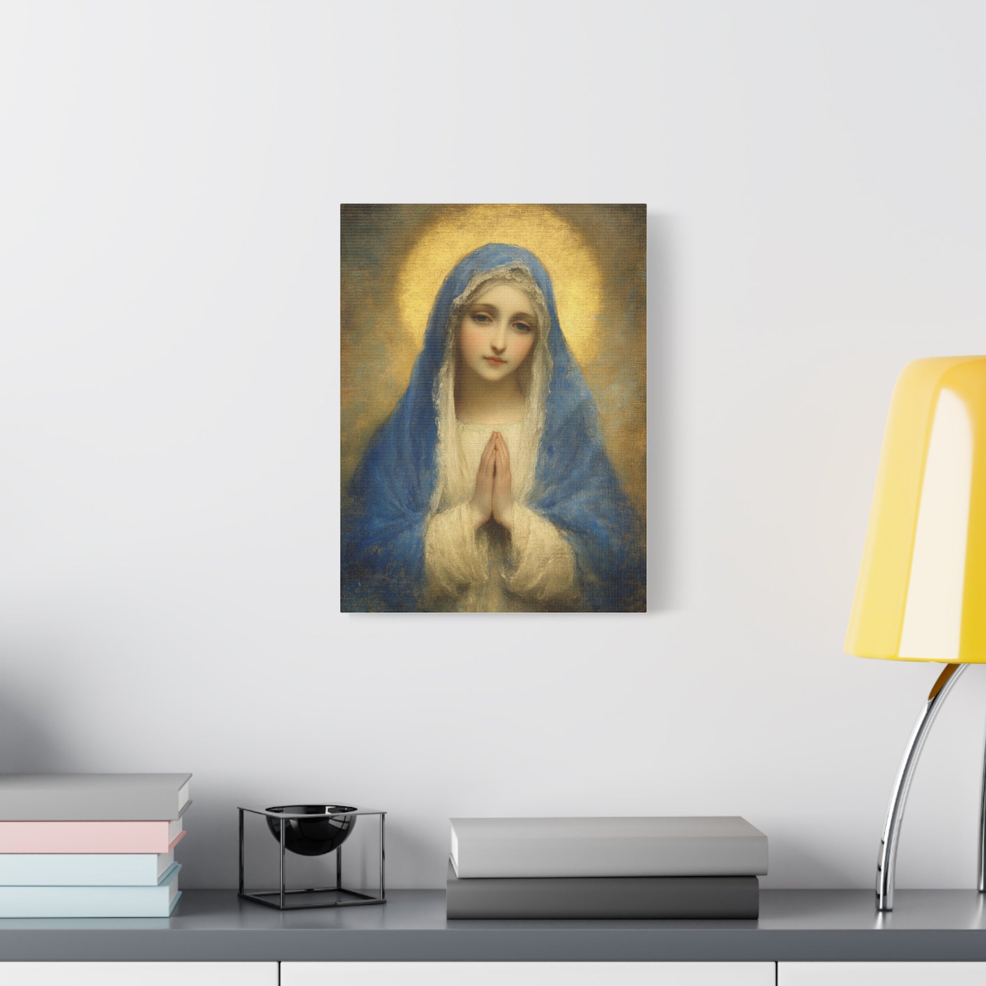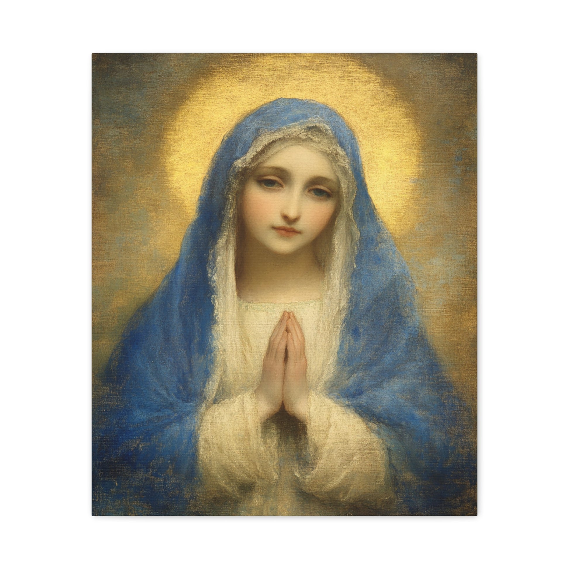 Mother Mary Blue Veil Catholic Canvas Wall Art, Christian Decor