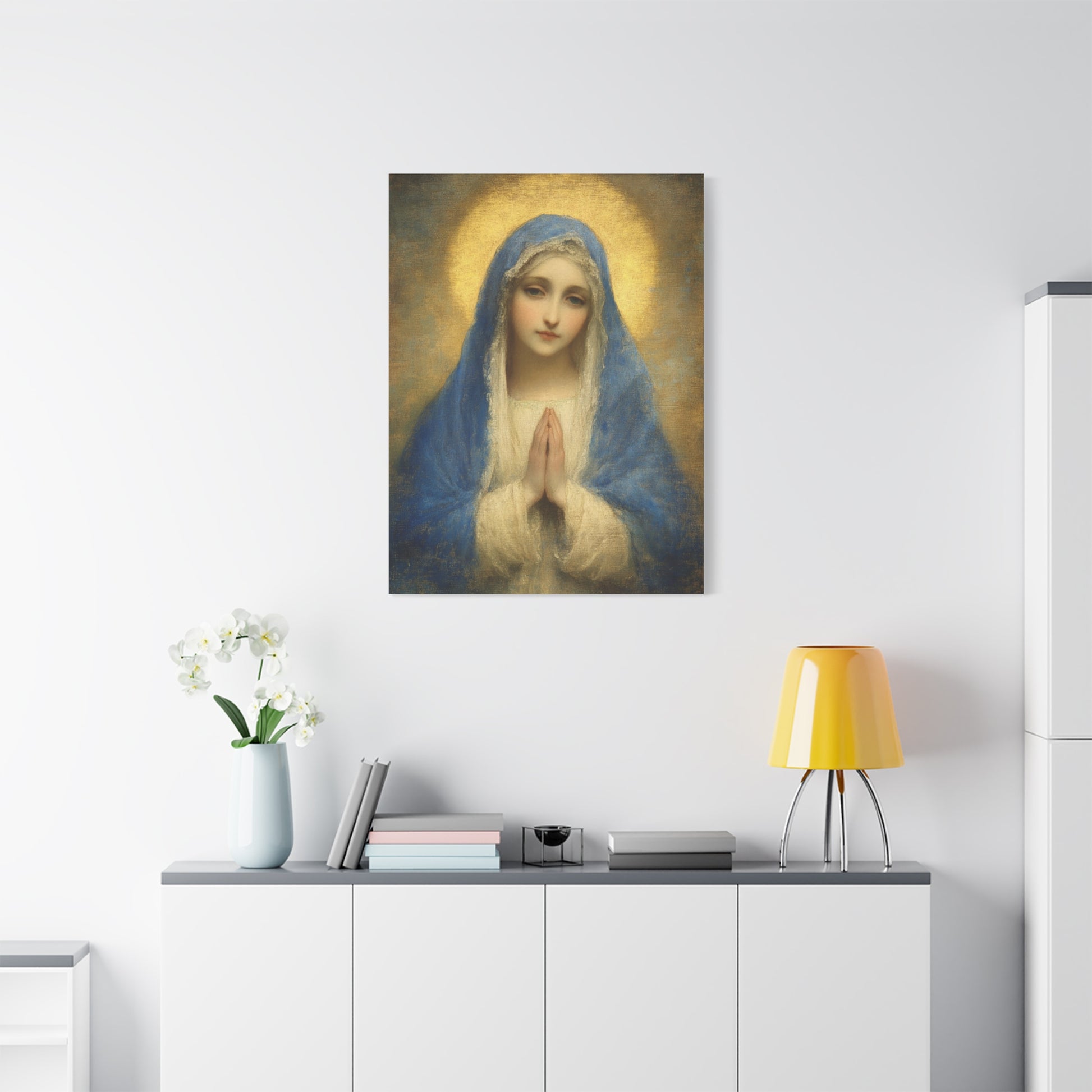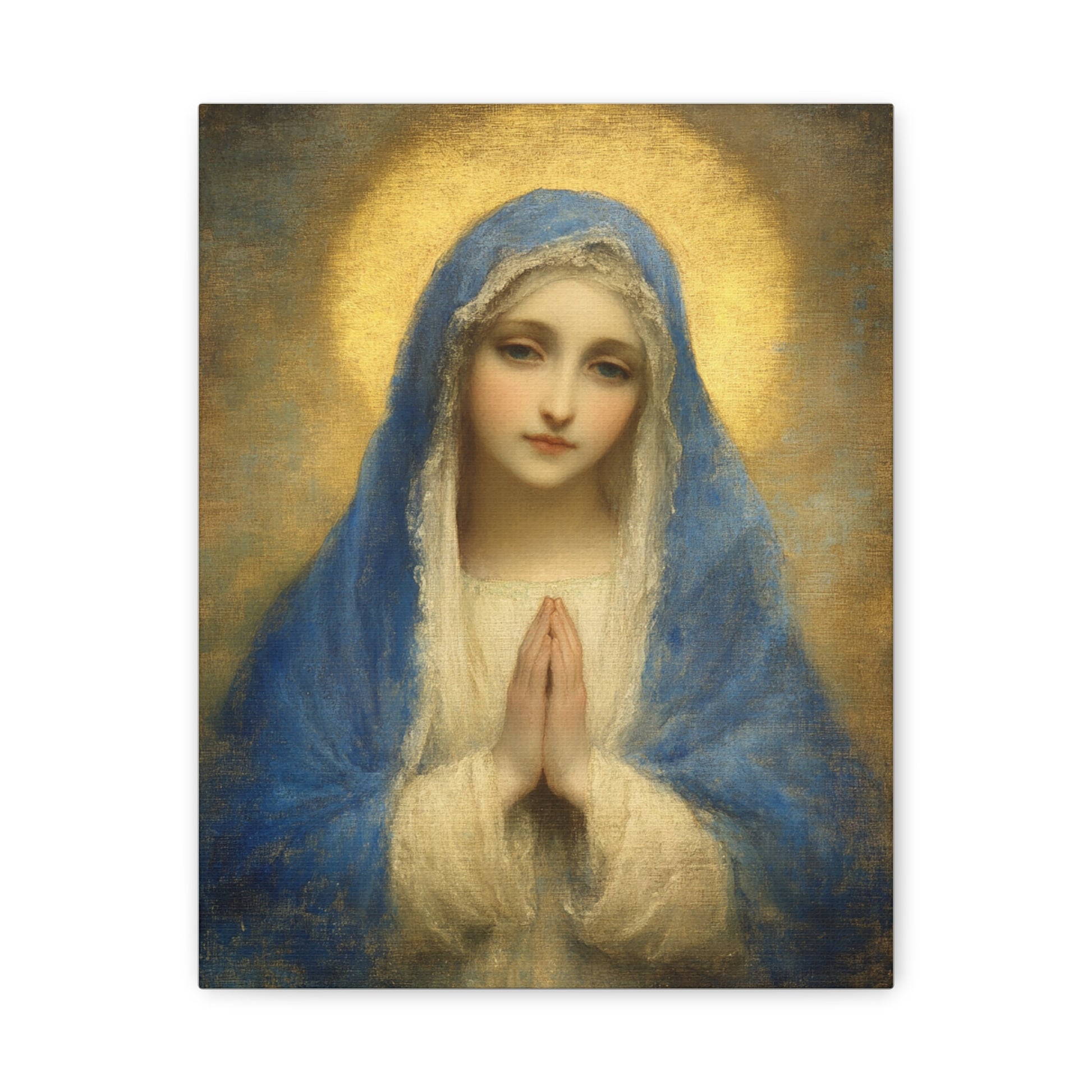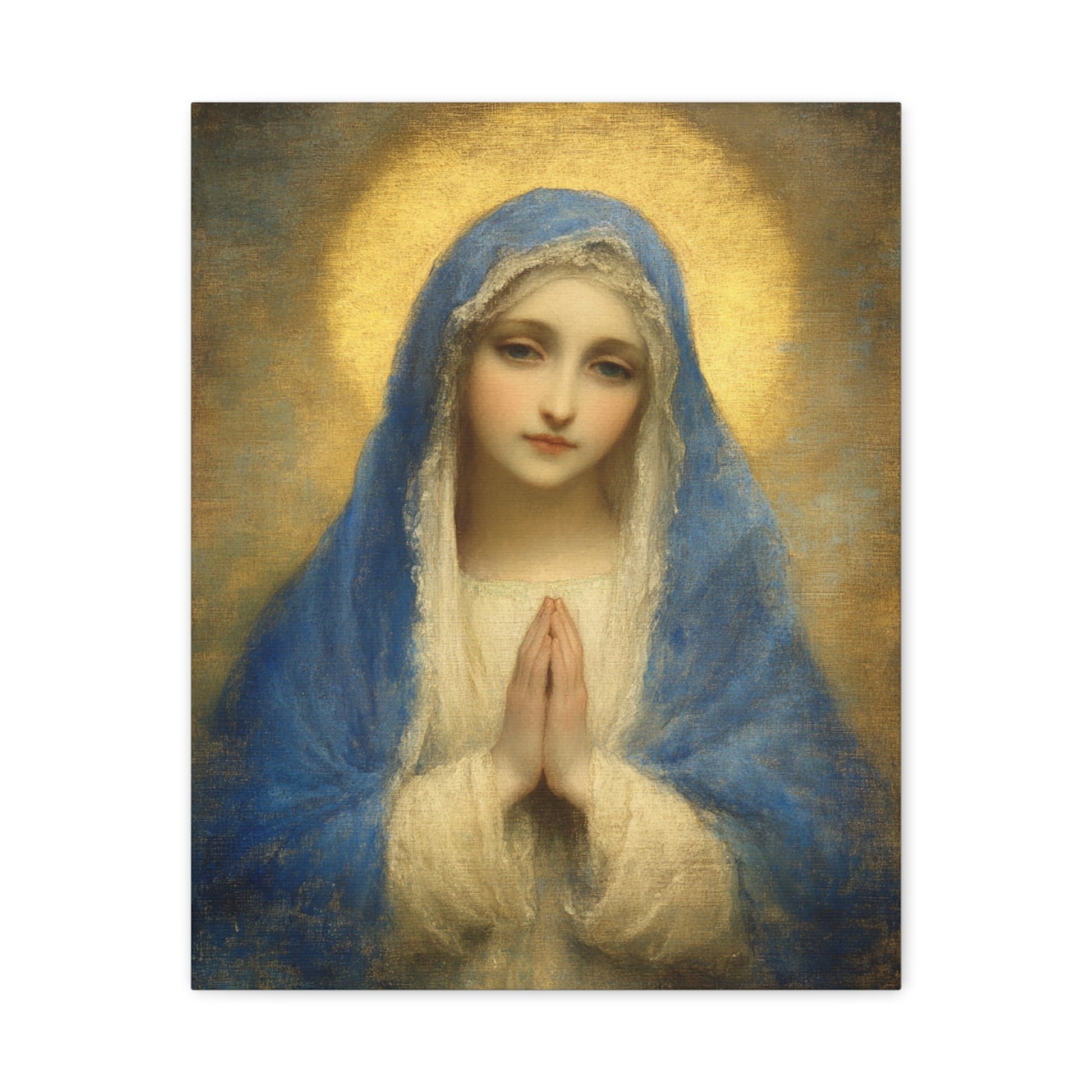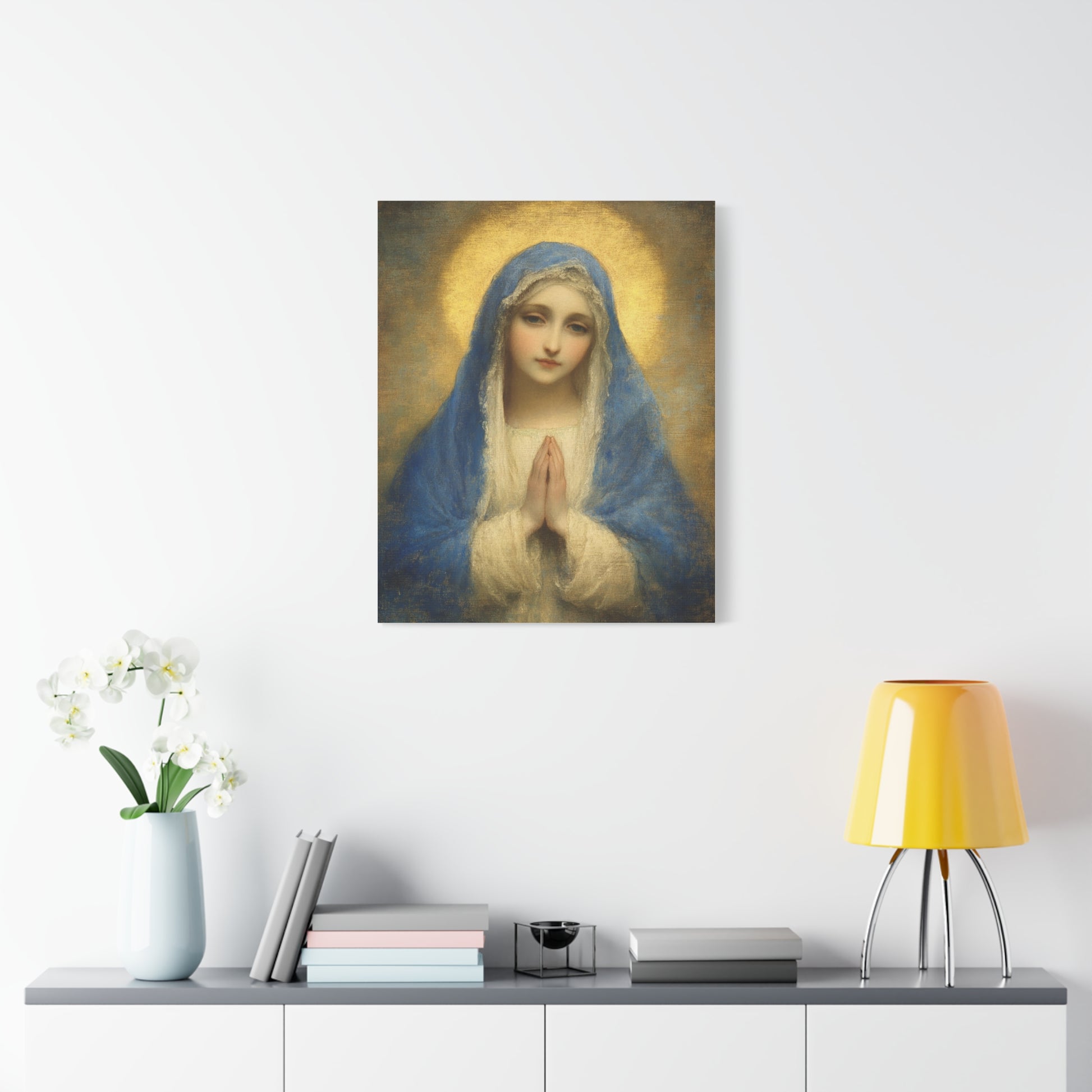 Mother Mary Blue Veil Catholic Canvas Wall Art, Christian Decor