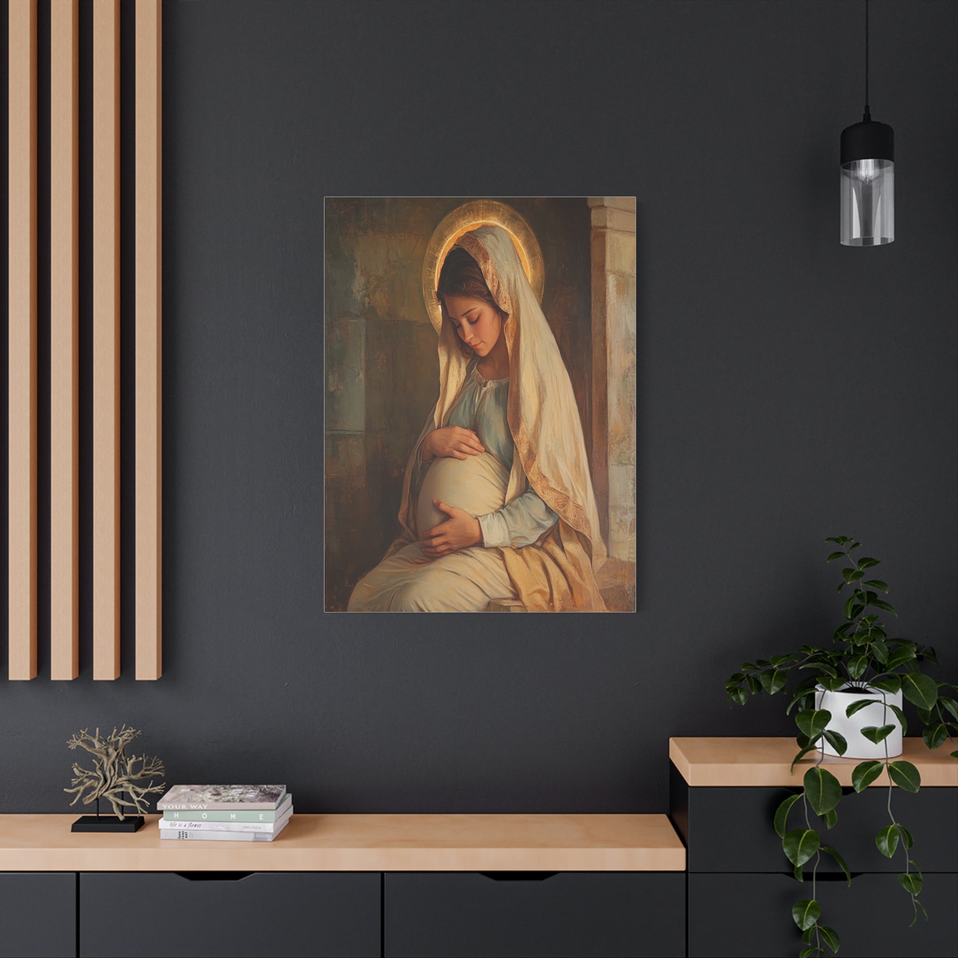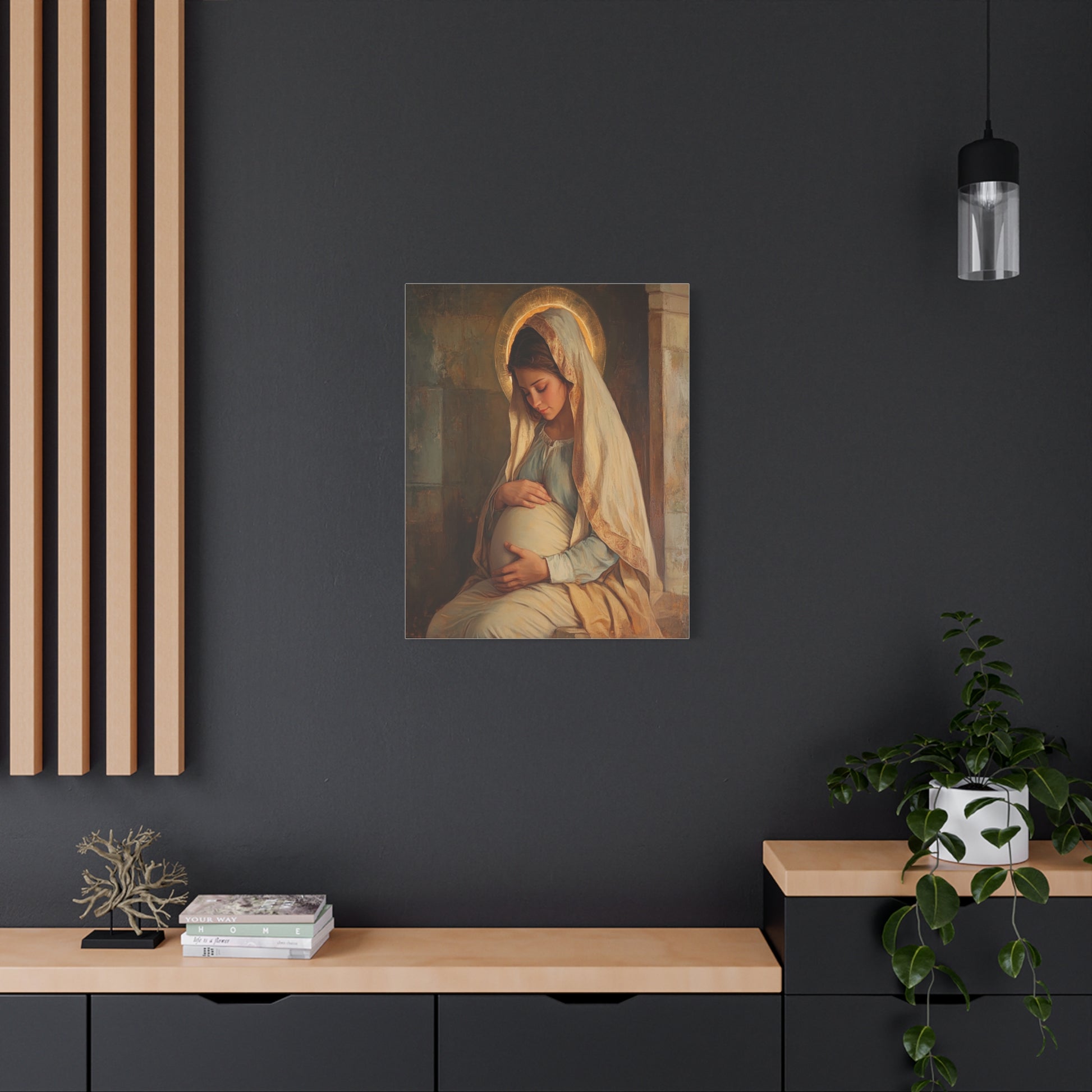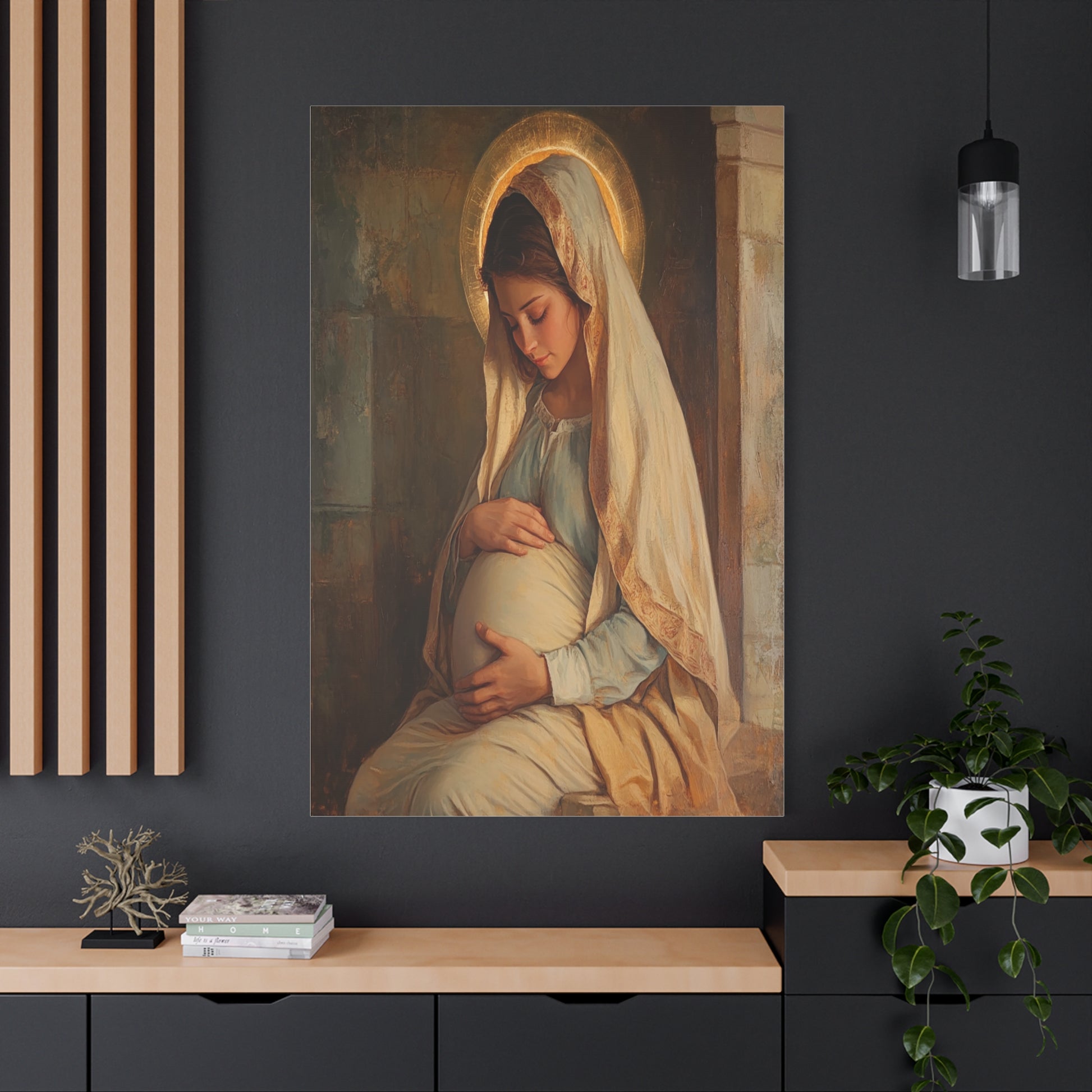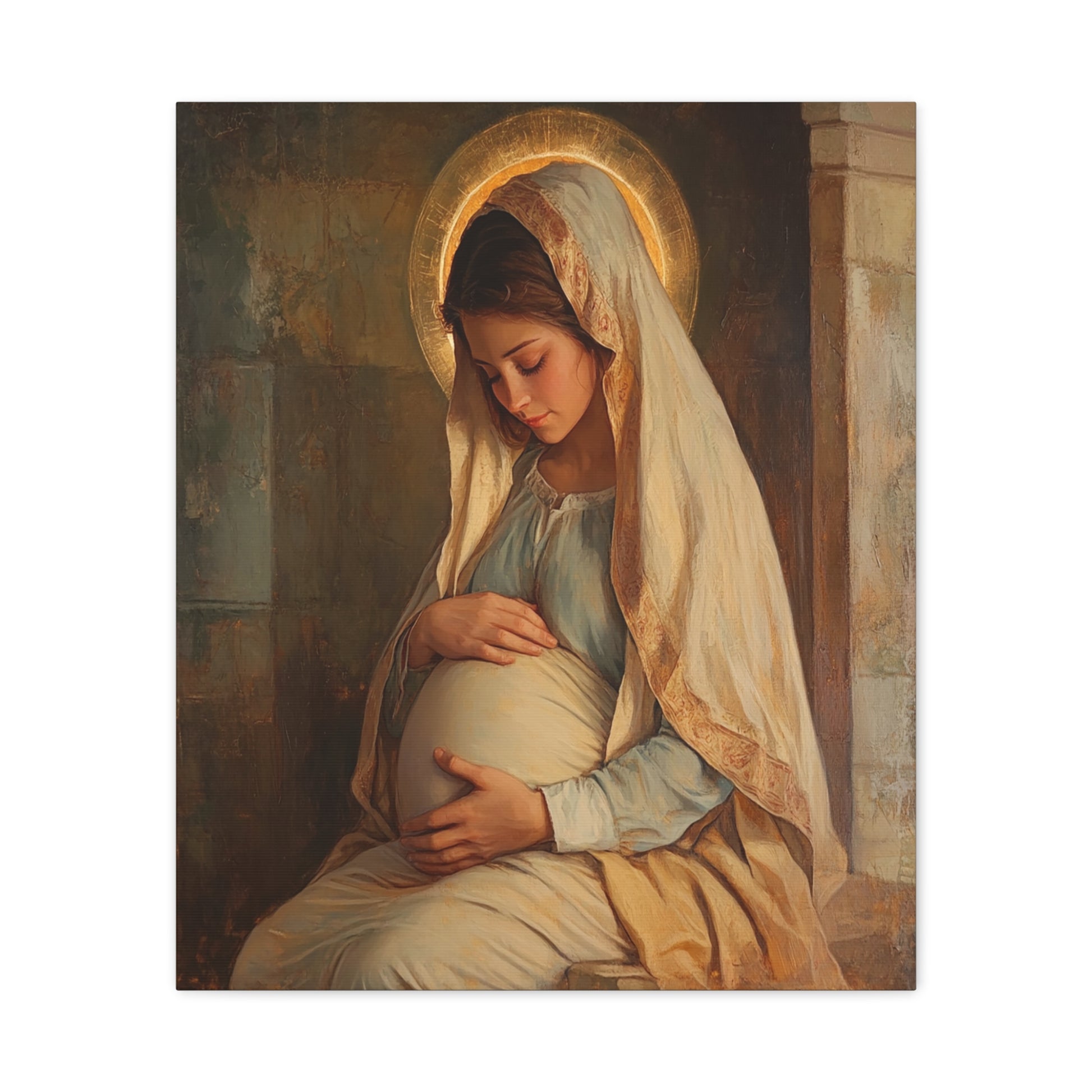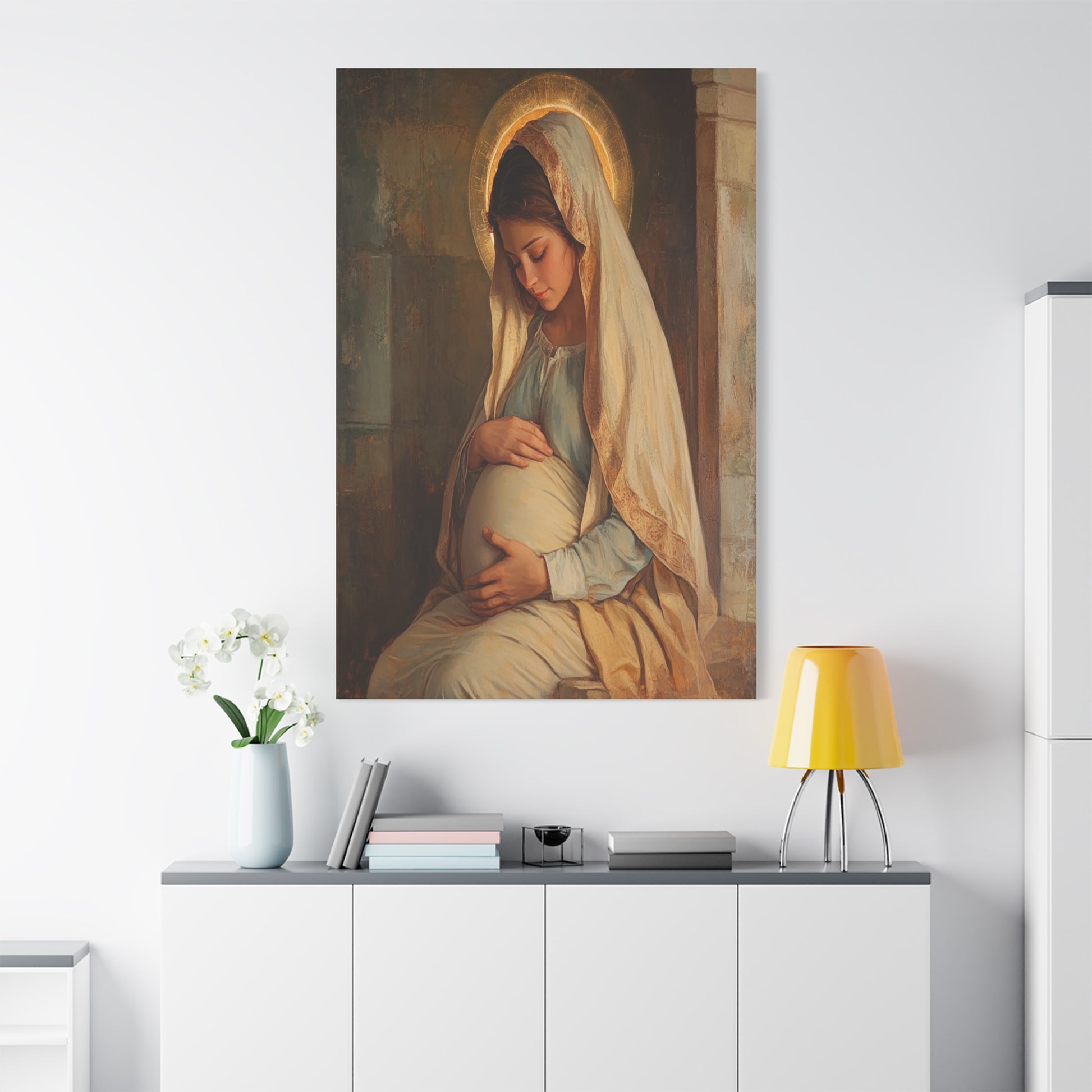 Mother Mary During Her Pregnancy Catholic Canvas Wall Art, Christian Decor