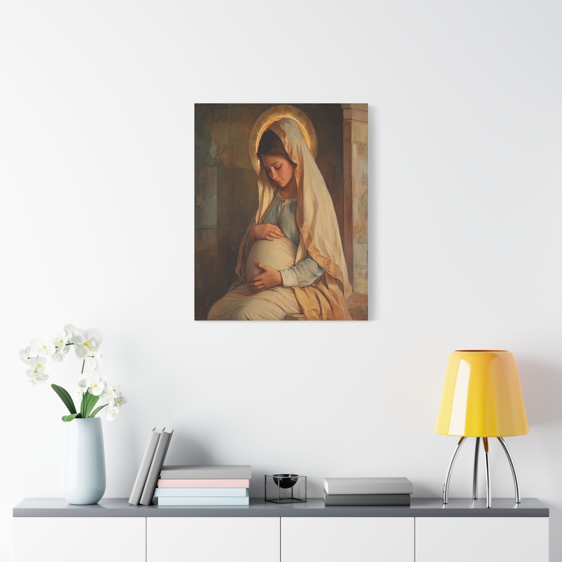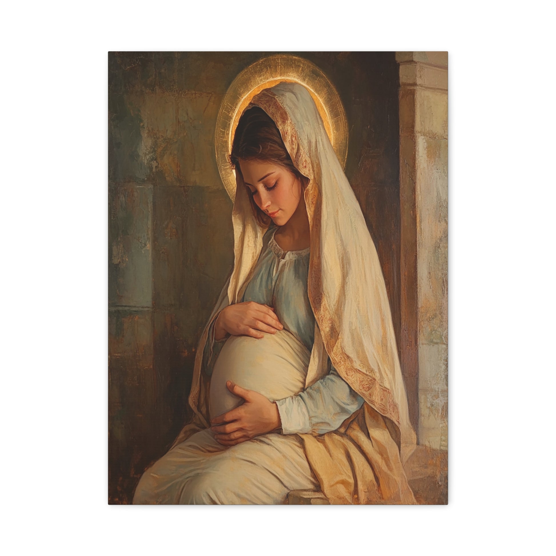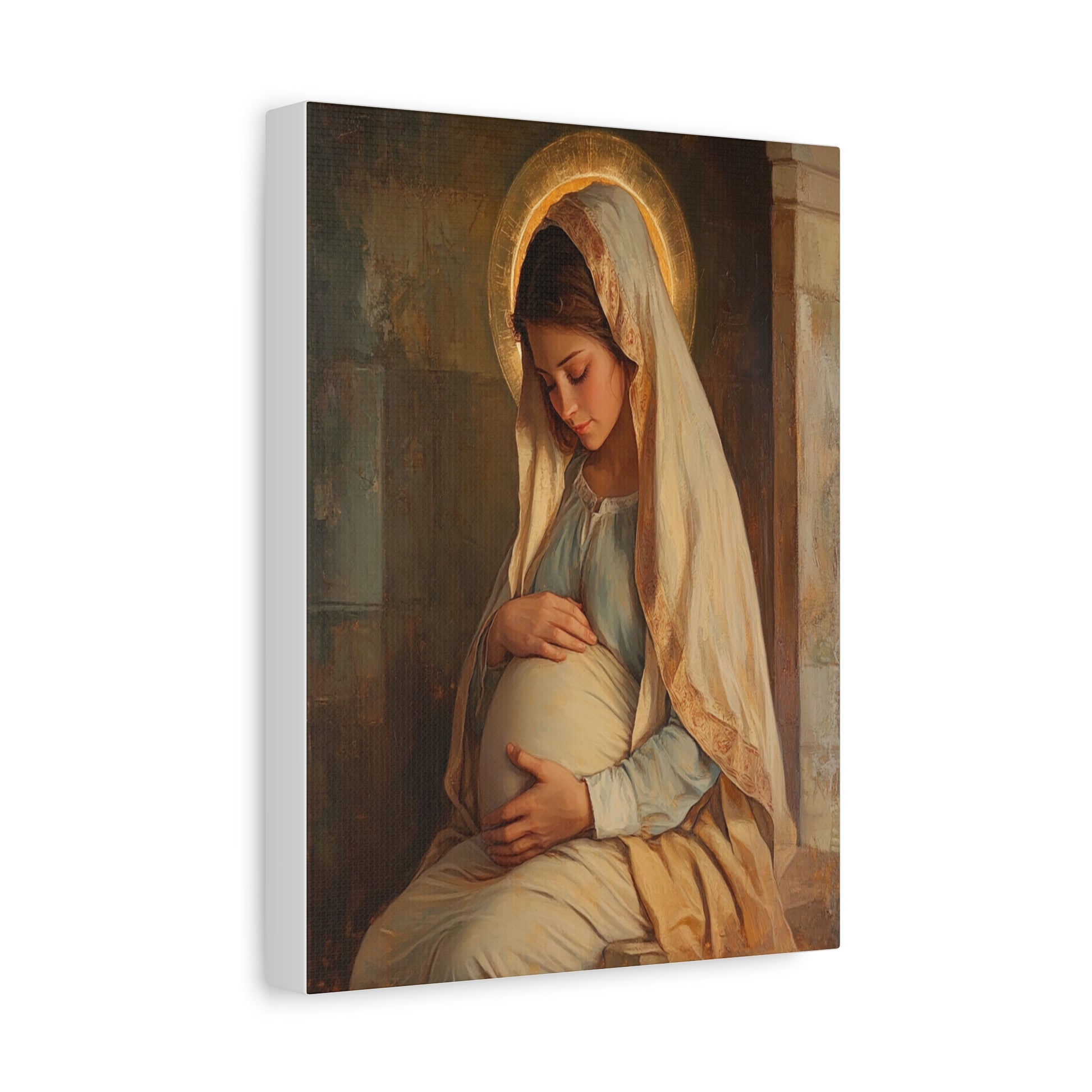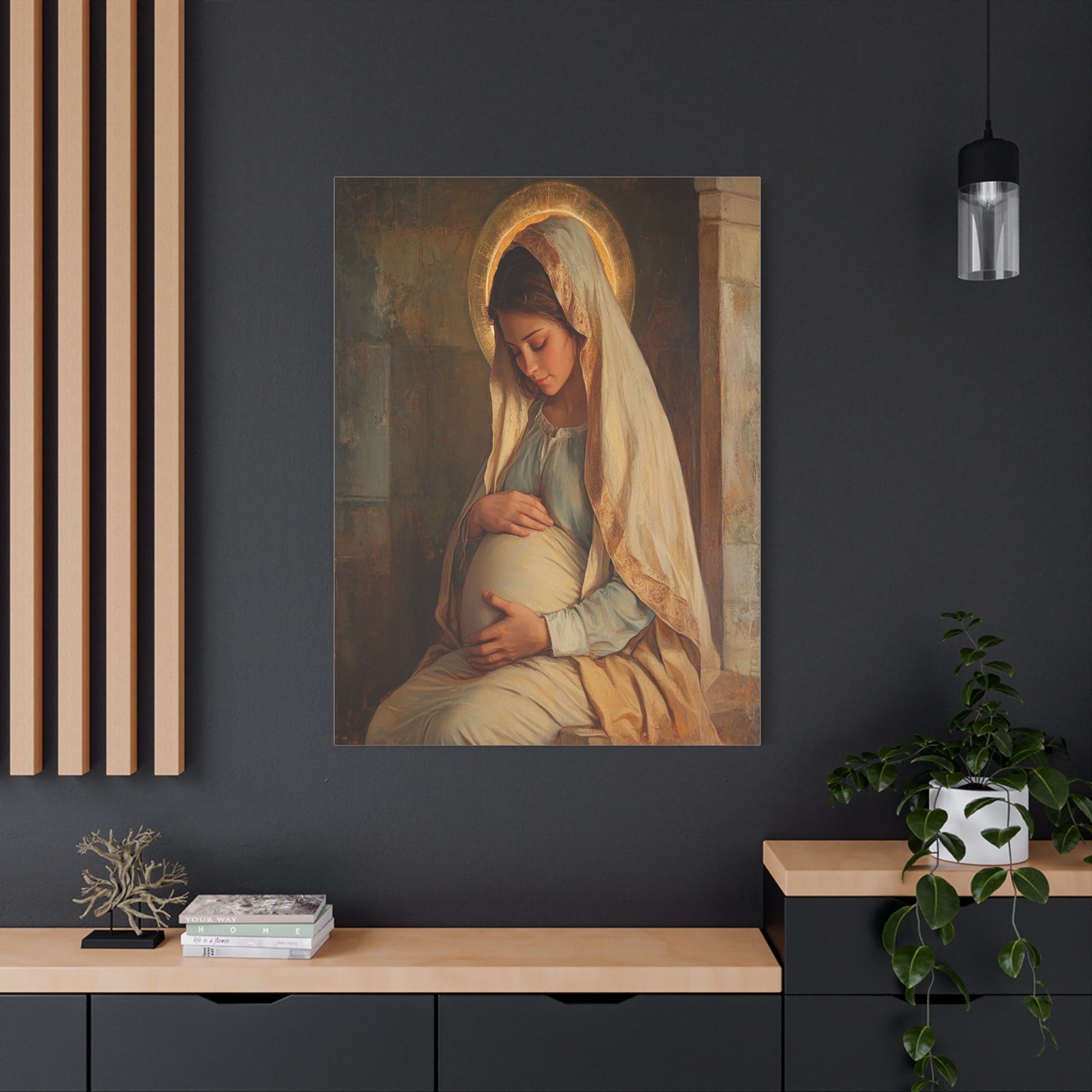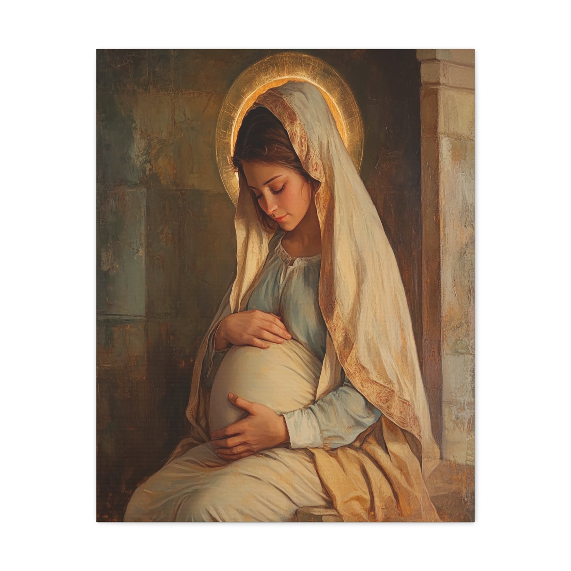 Mother Mary During Her Pregnancy Catholic Canvas Wall Art, Christian Decor