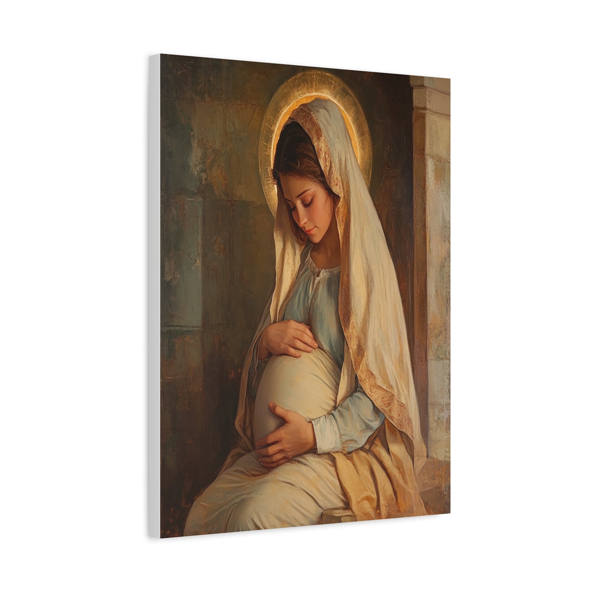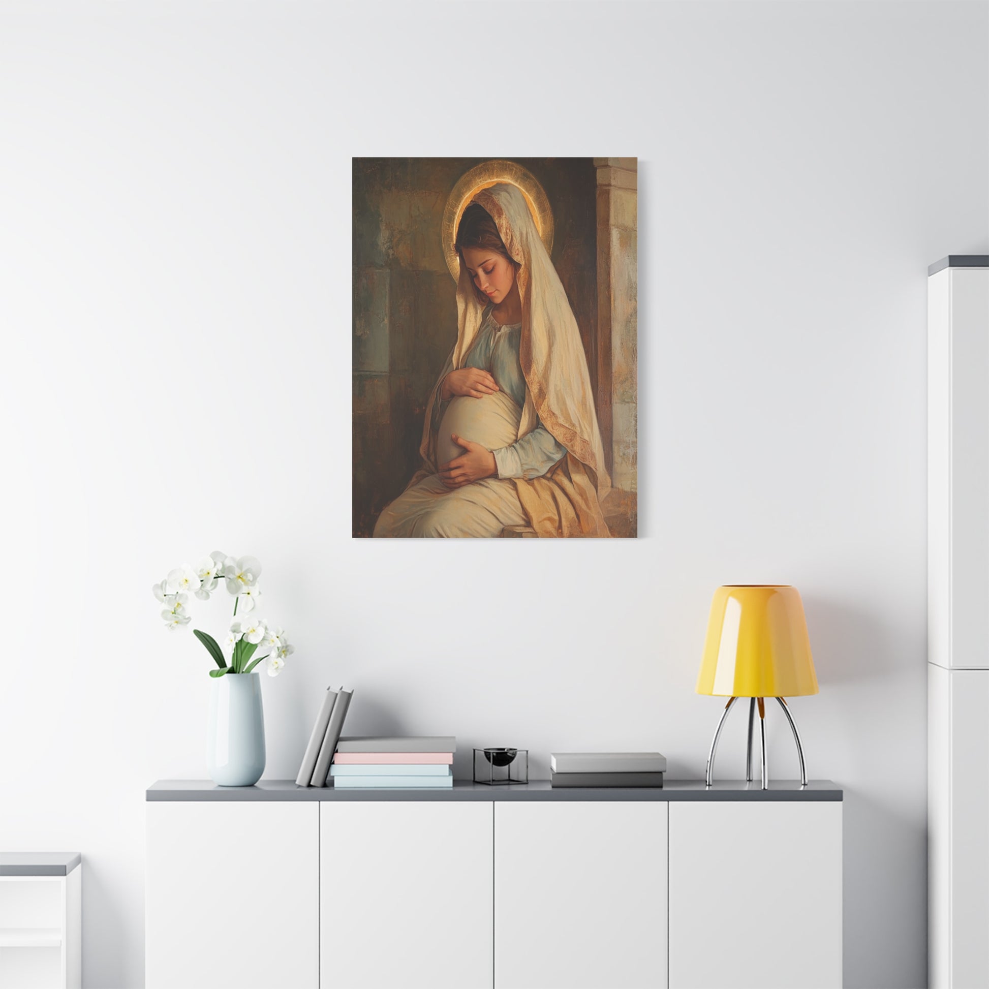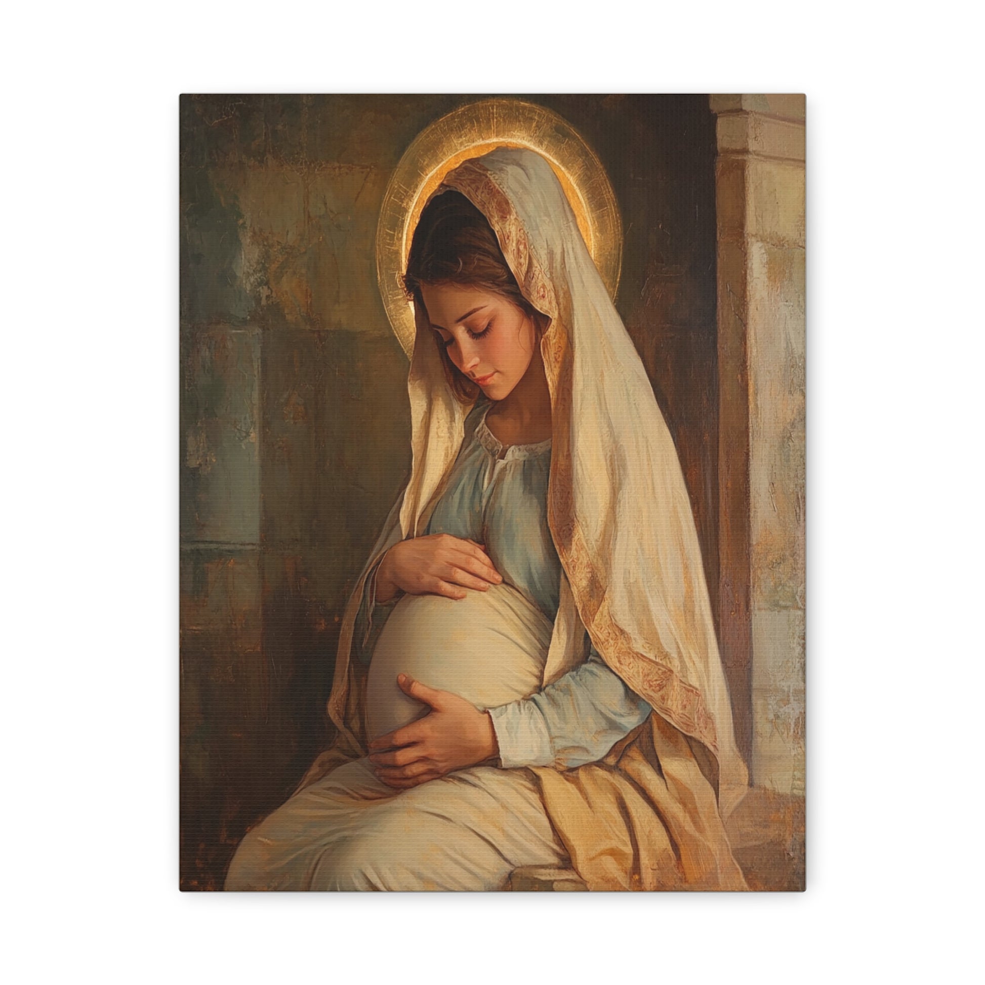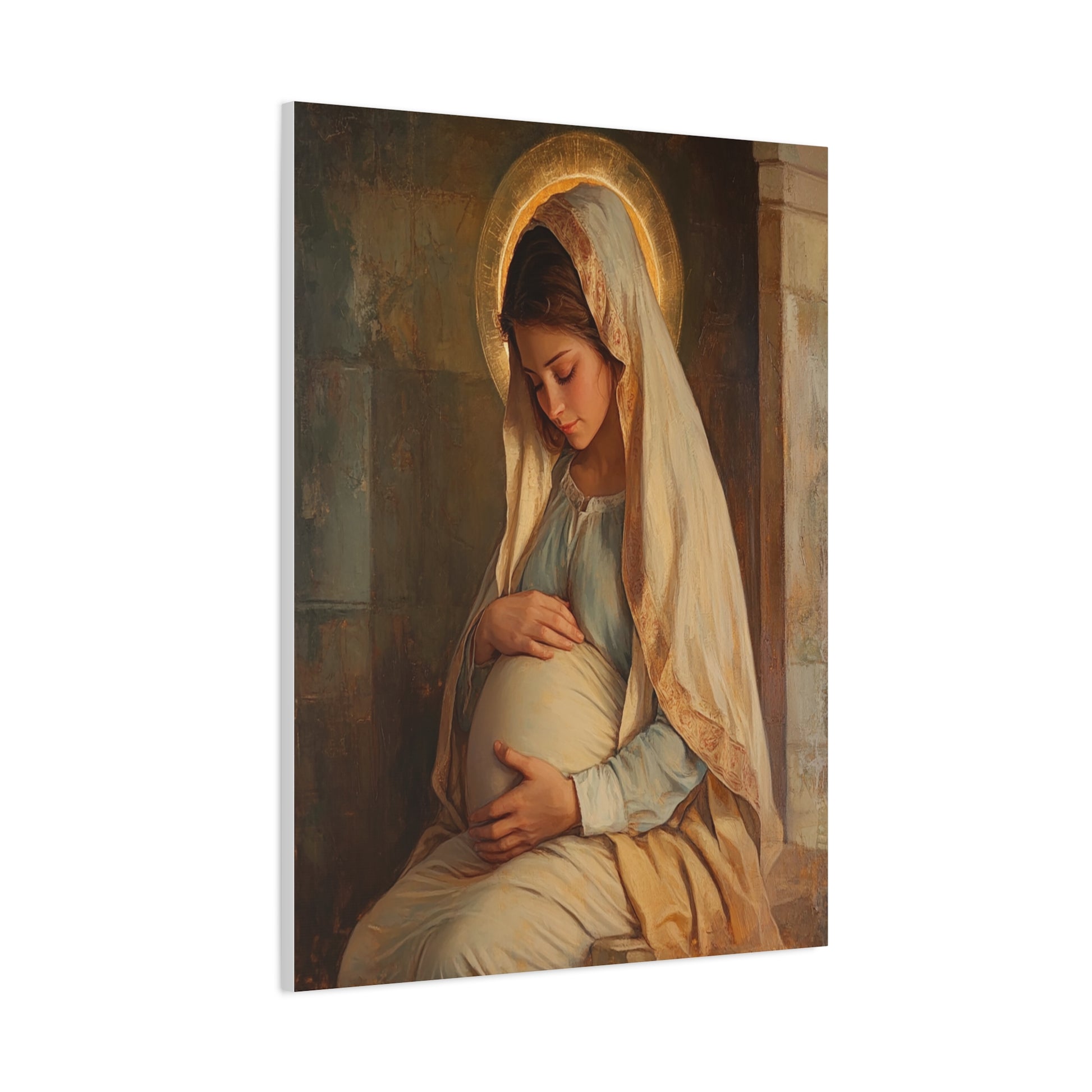 Mother Mary During Her Pregnancy Catholic Canvas Wall Art, Christian Decor