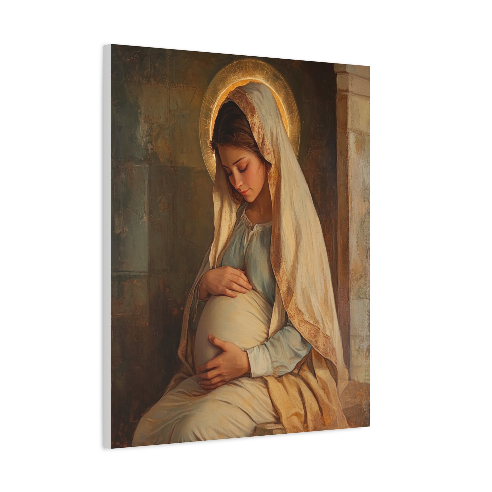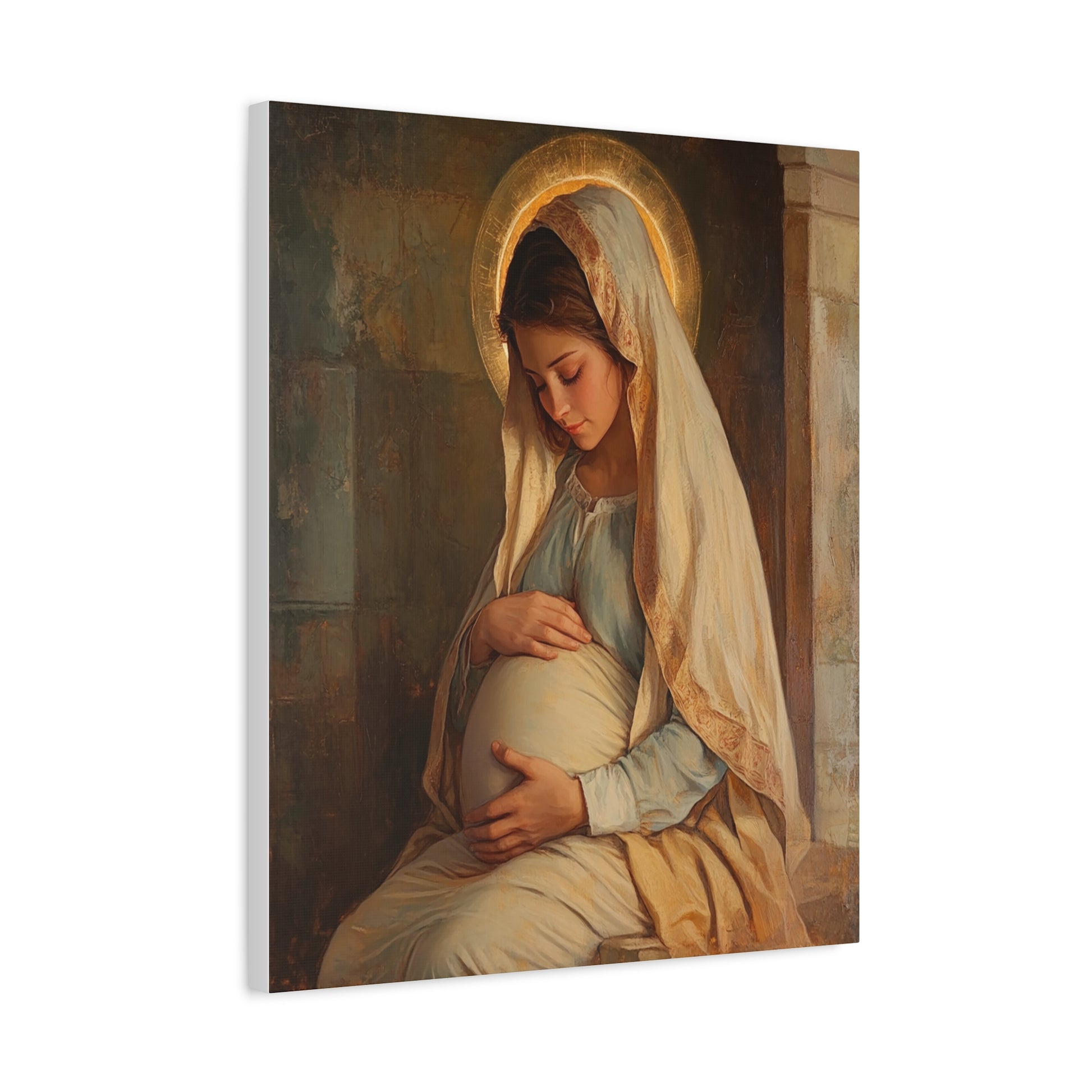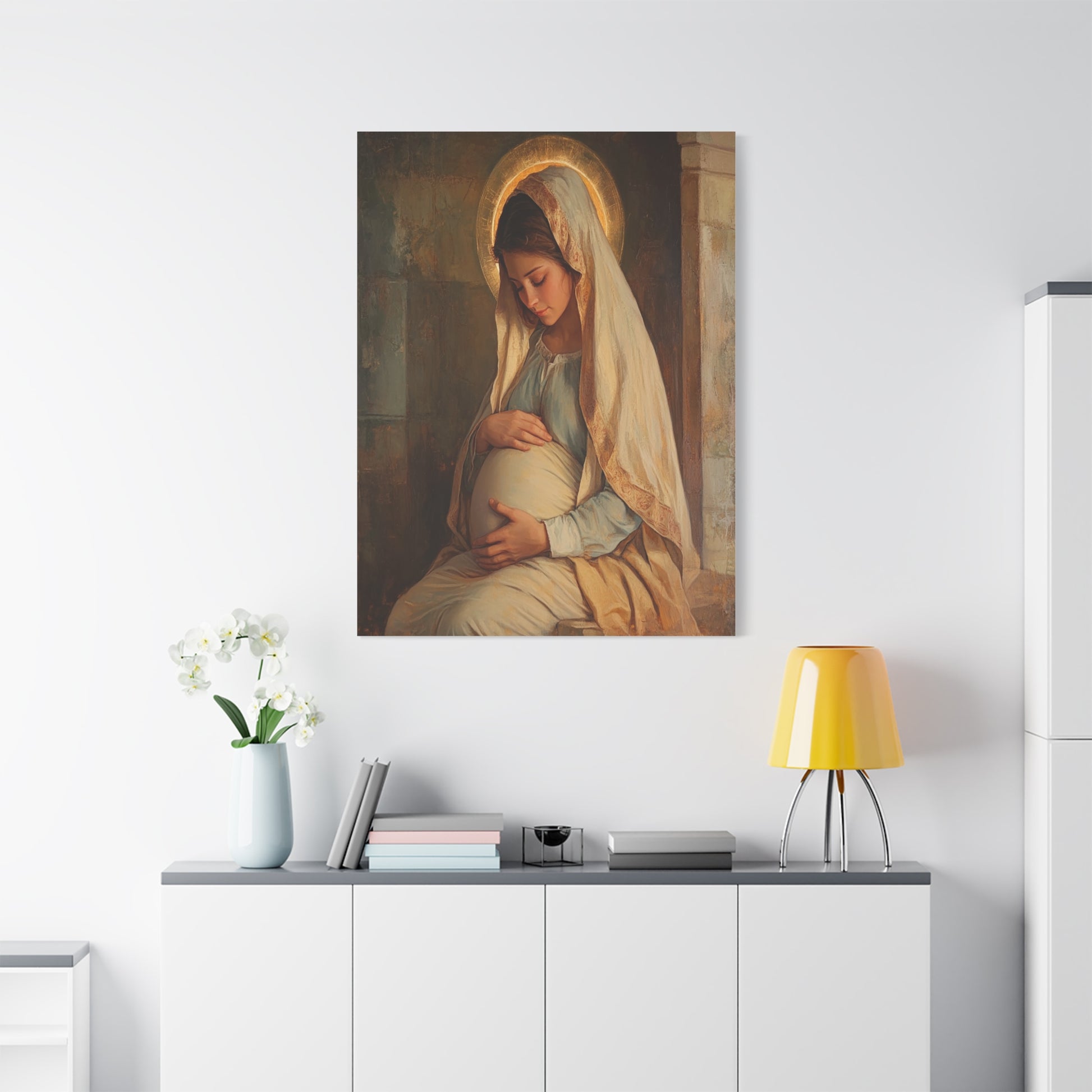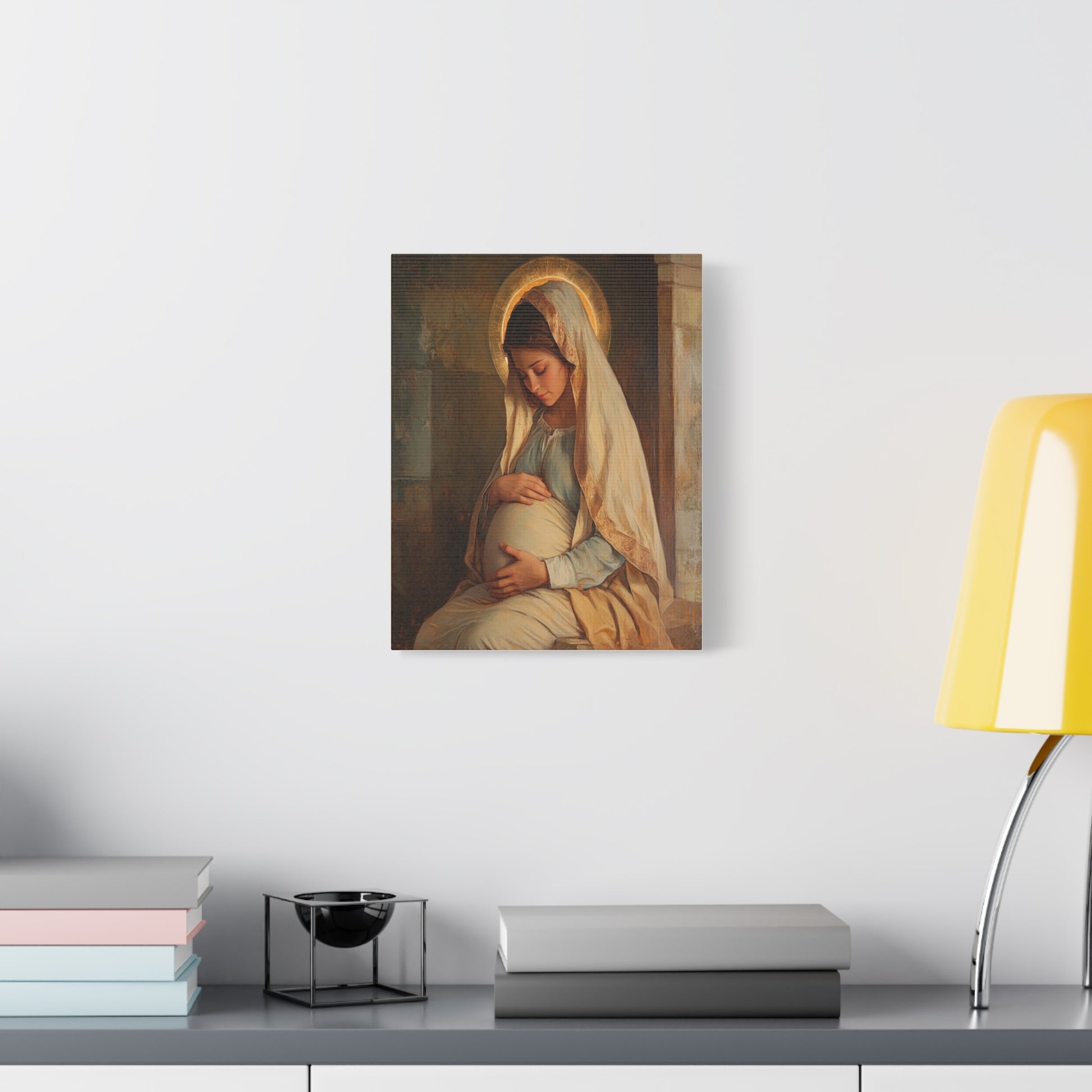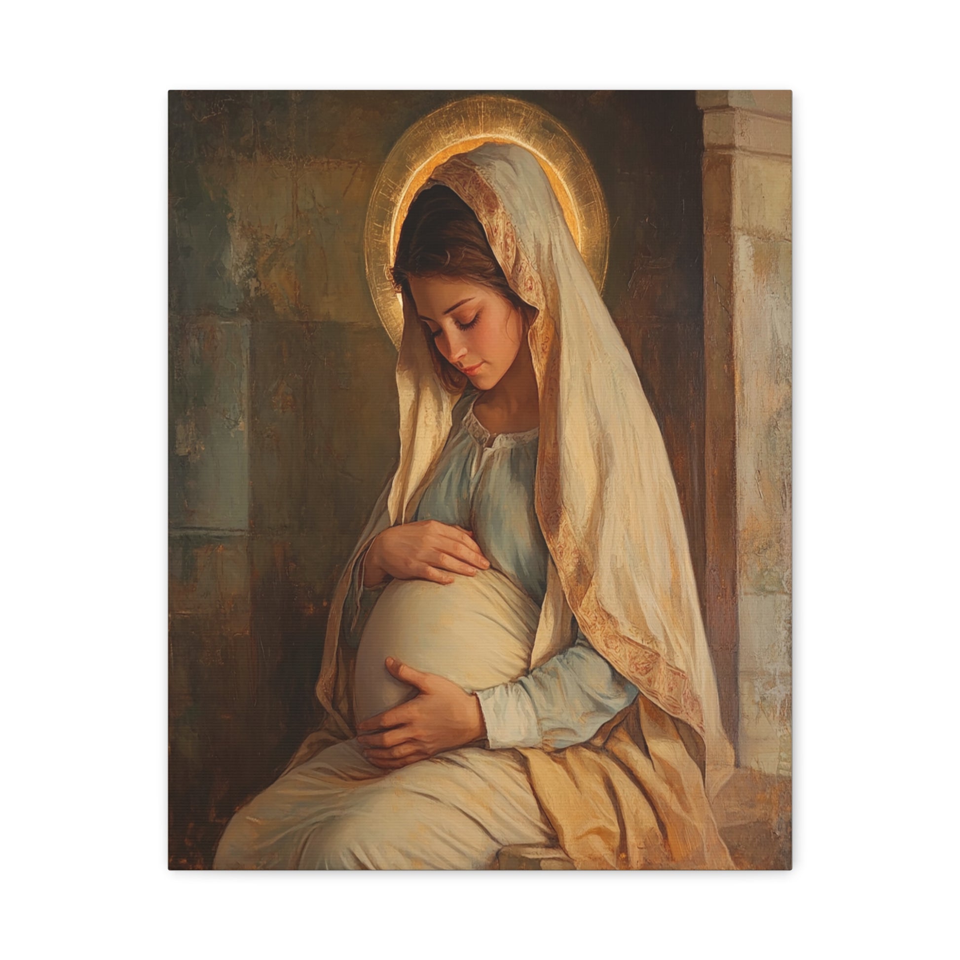 Mother Mary During Her Pregnancy Catholic Canvas Wall Art, Christian Decor