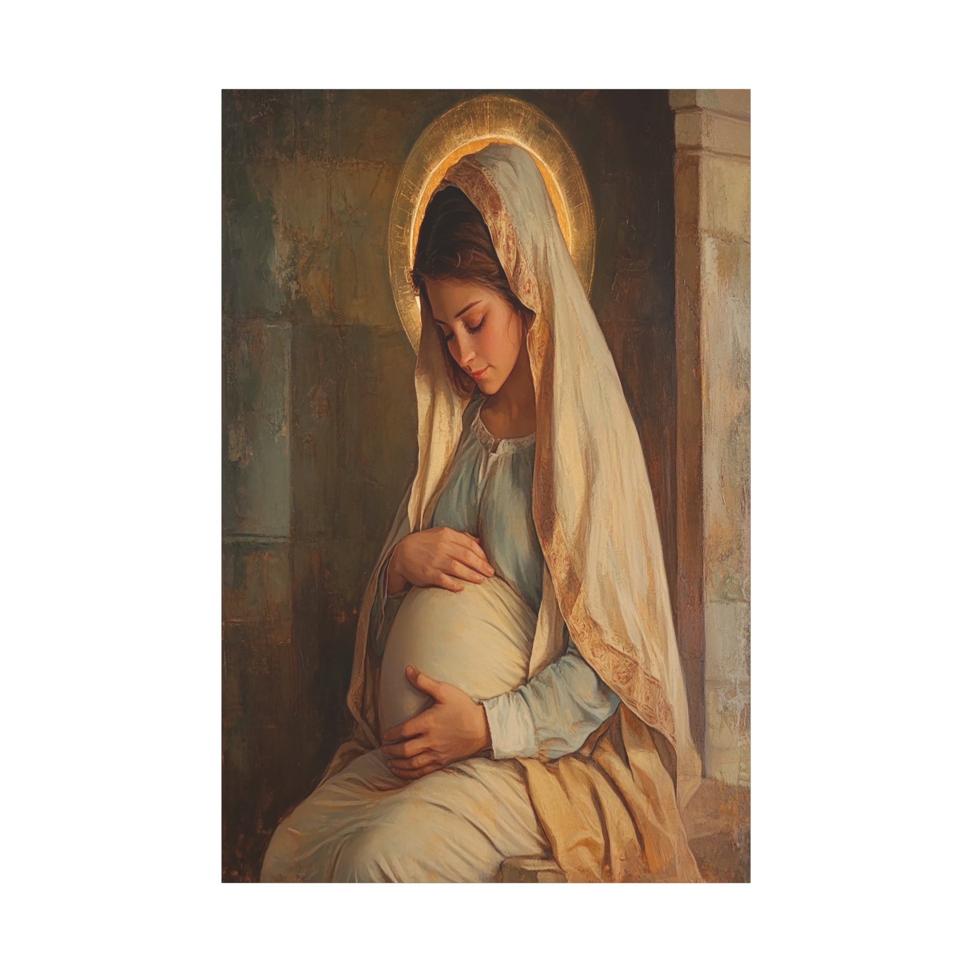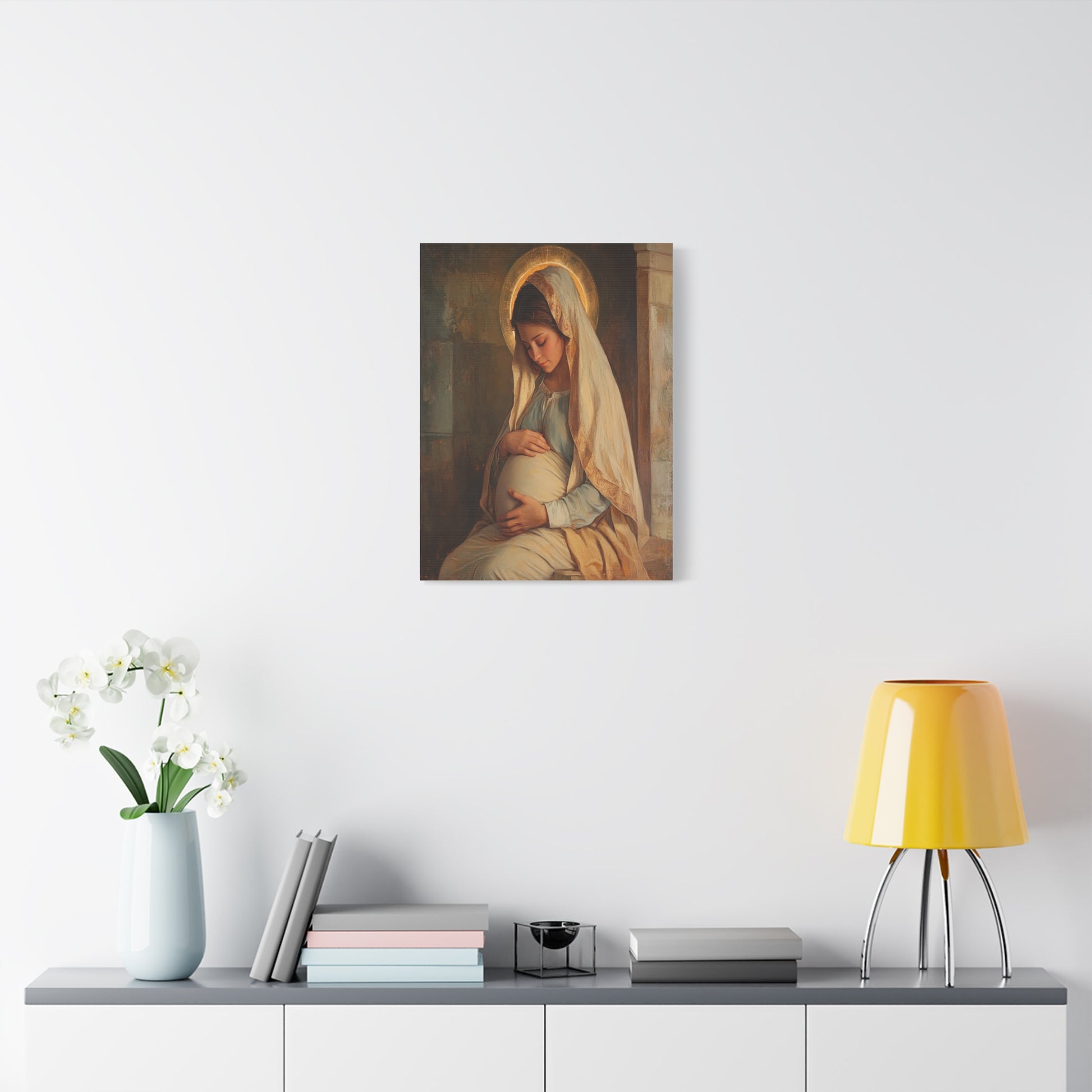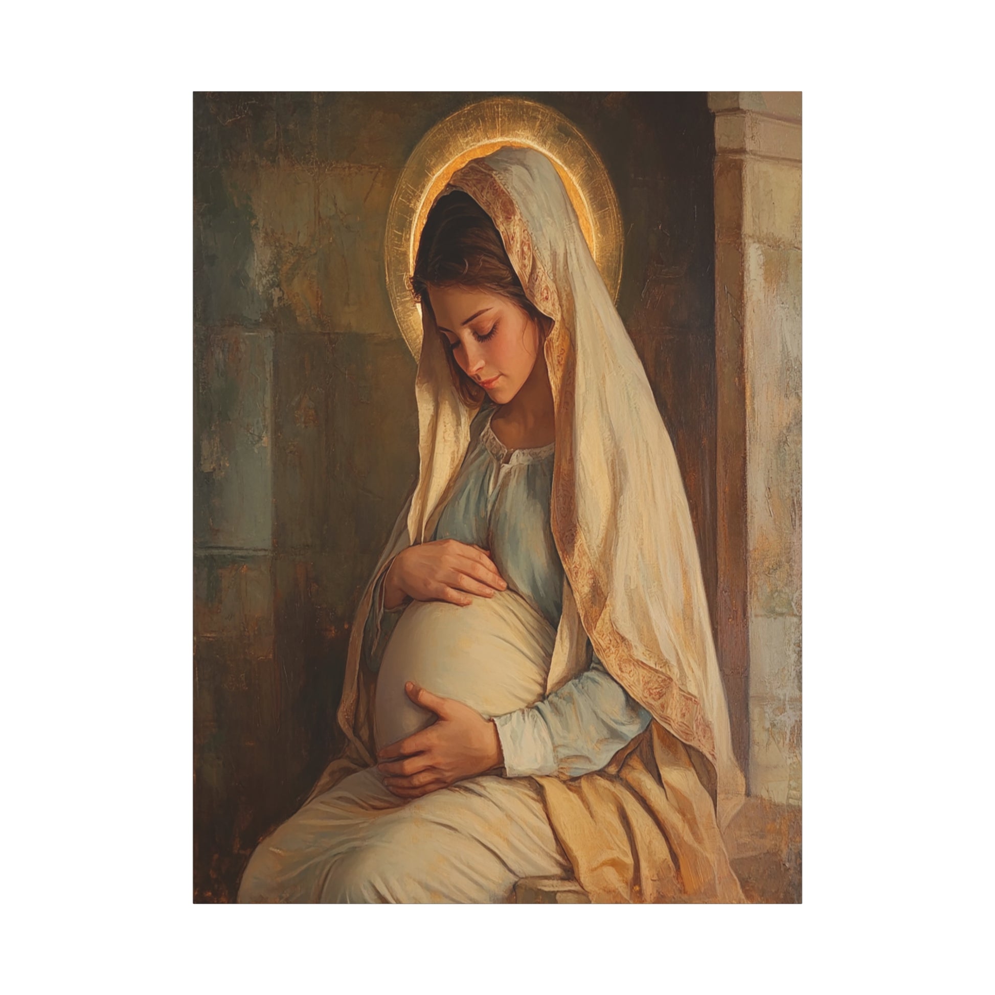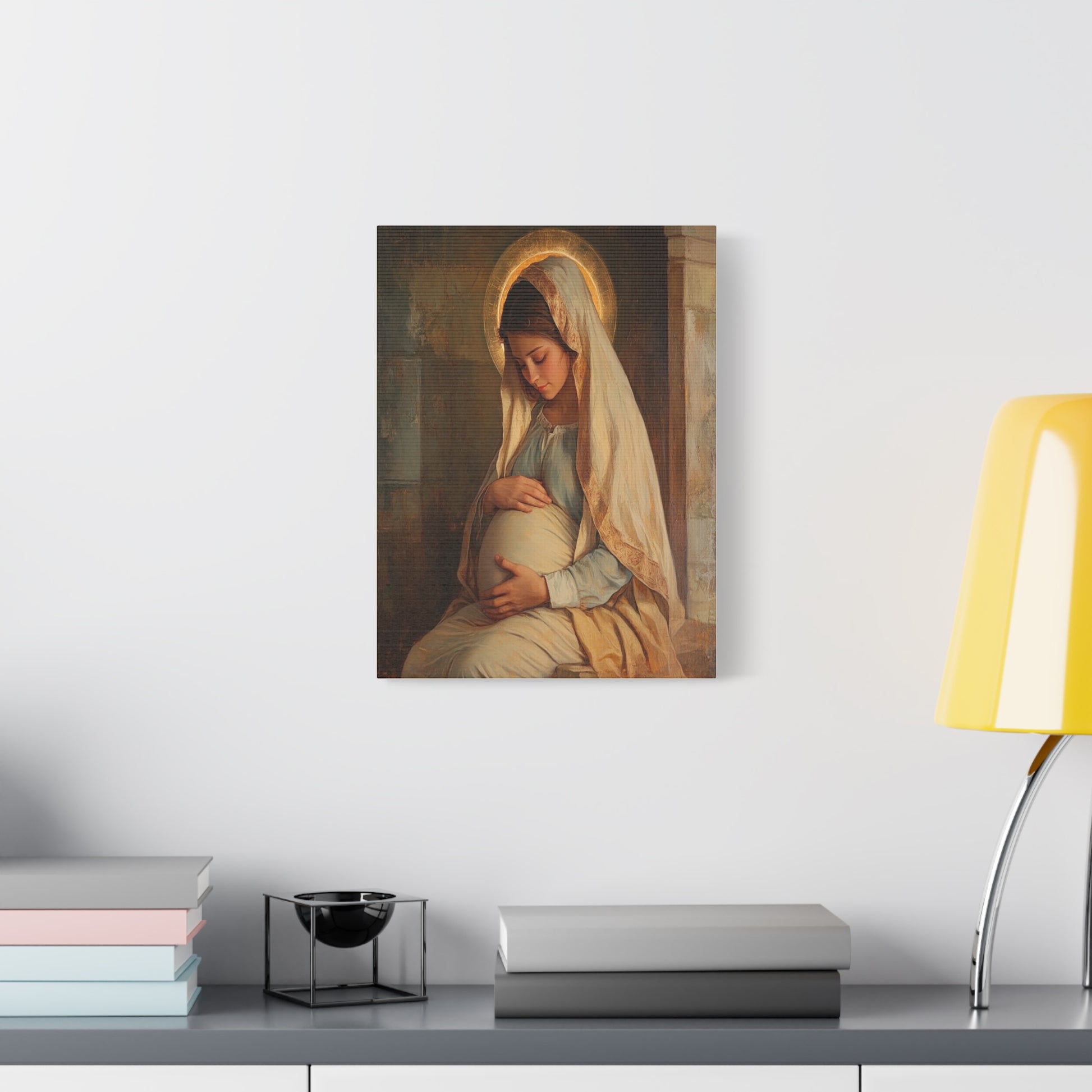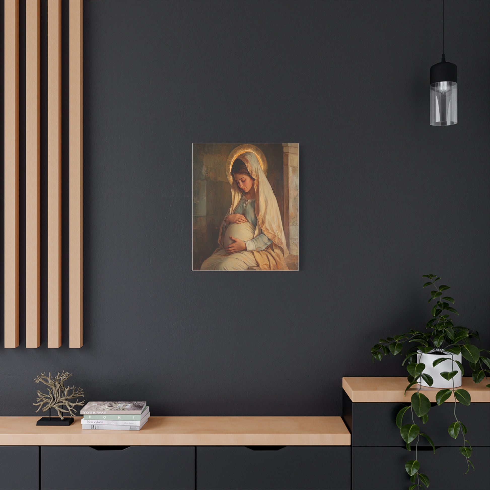 Mother Mary During Her Pregnancy Catholic Canvas Wall Art, Christian Decor