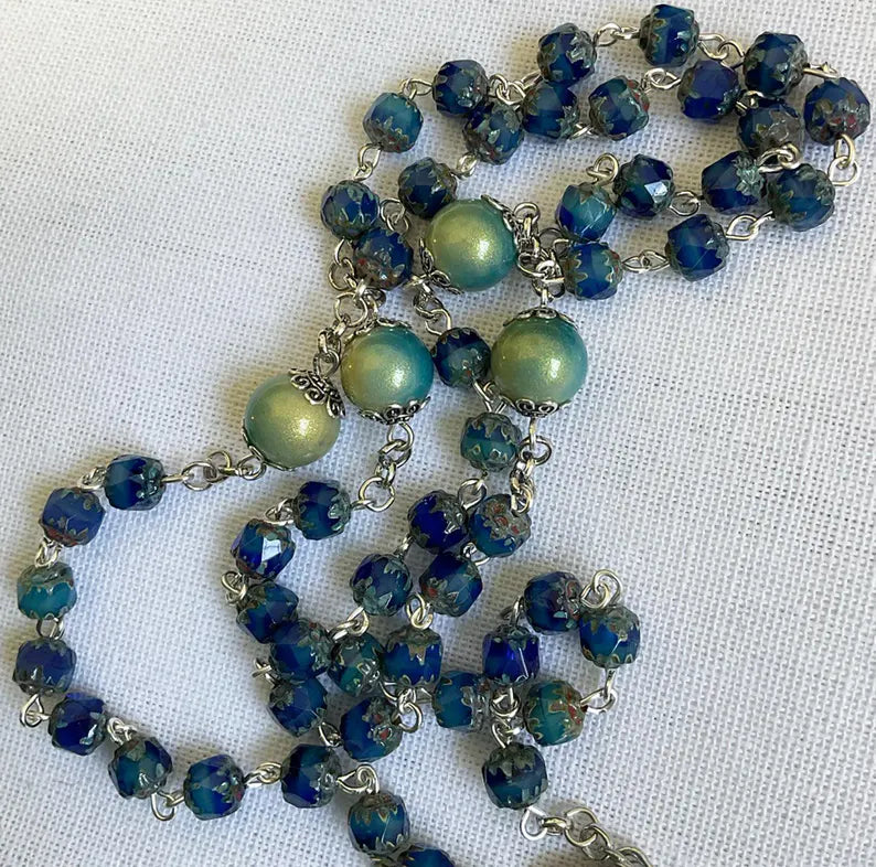 The rosary comes in a lovely velvet bag, ready for gift-giving.