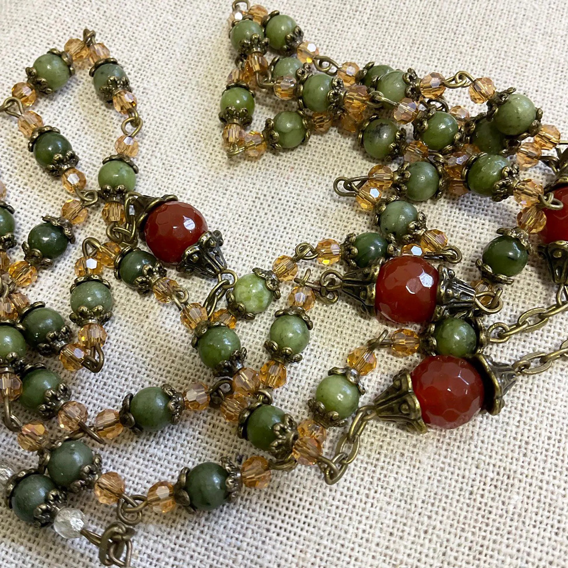 6mm green jade beads, Czech glass beads, 10mm ruby jade beads.