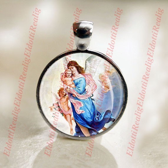 My Guardian Angel and Cherubs - Christian Catholic SIlvertone Medal Pendant Charm Cabochon Religious Jewelry