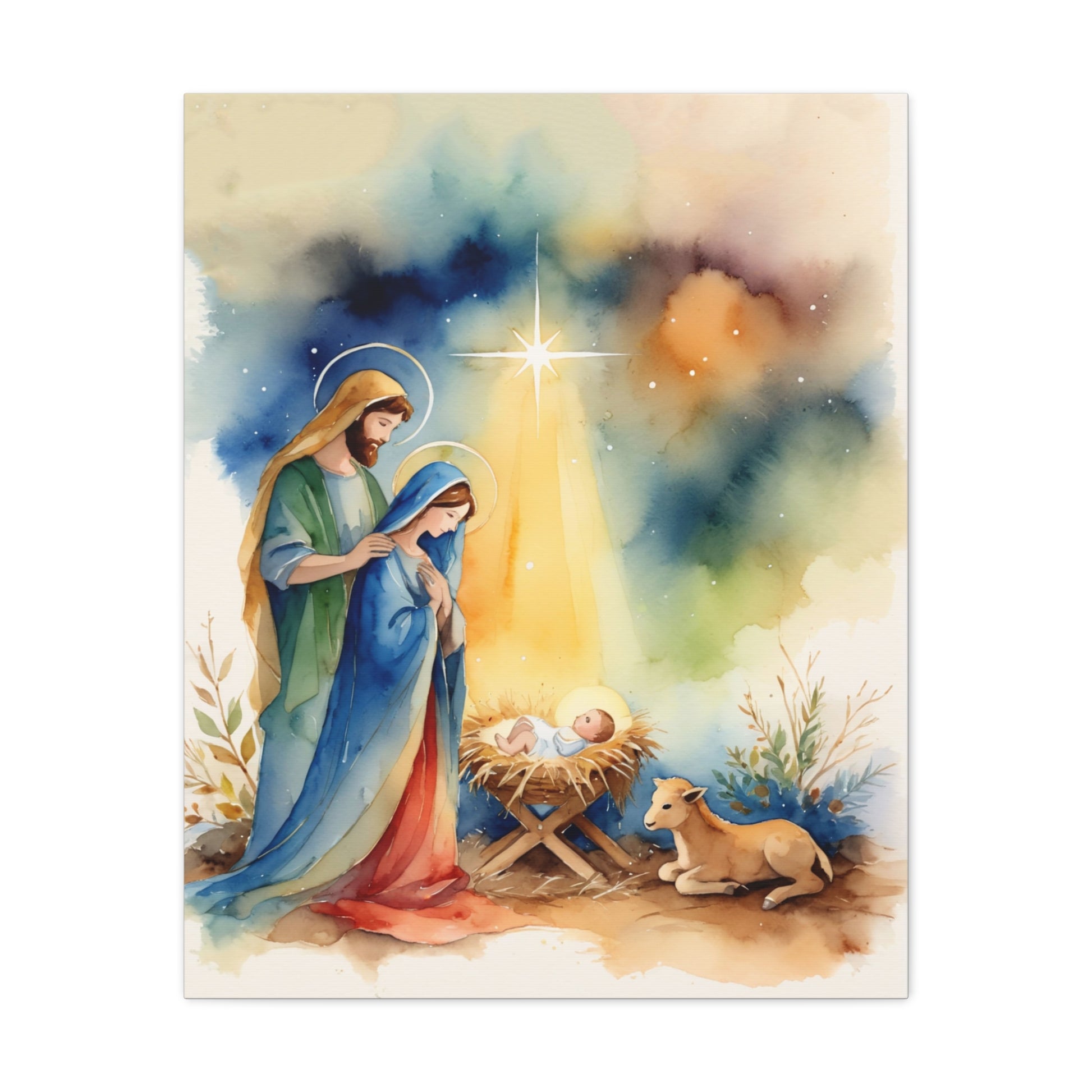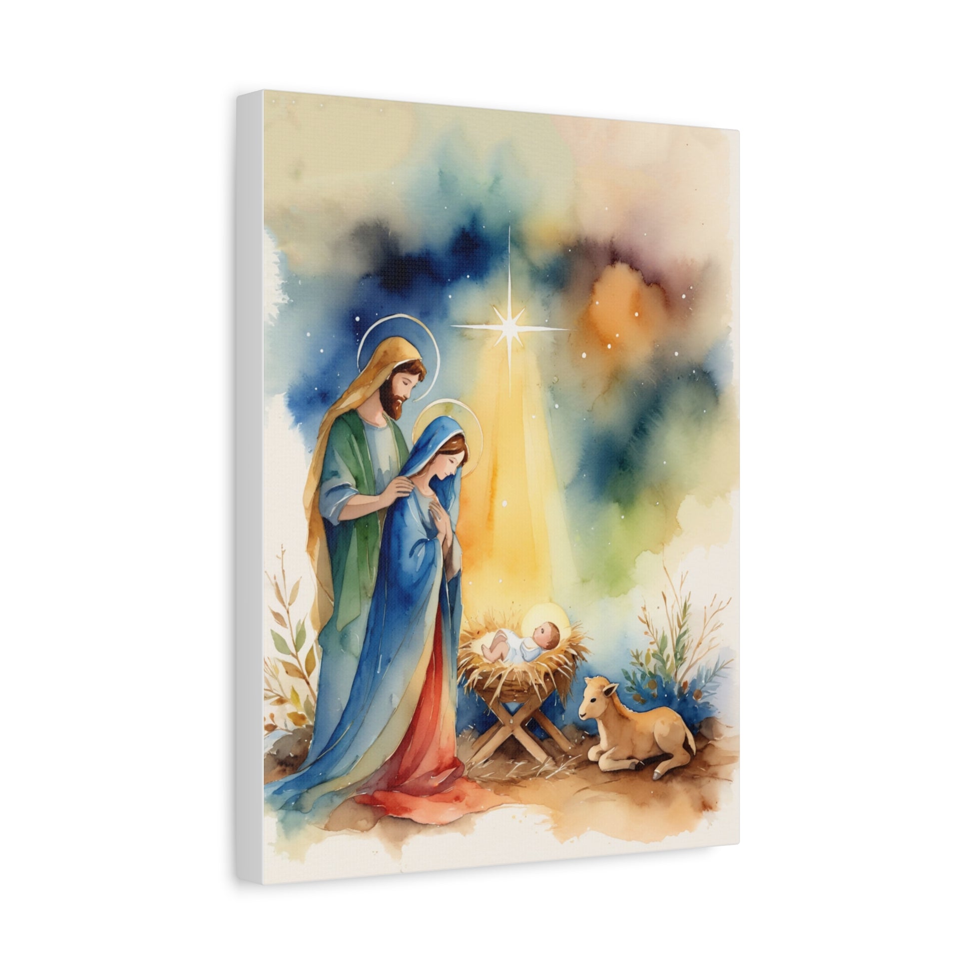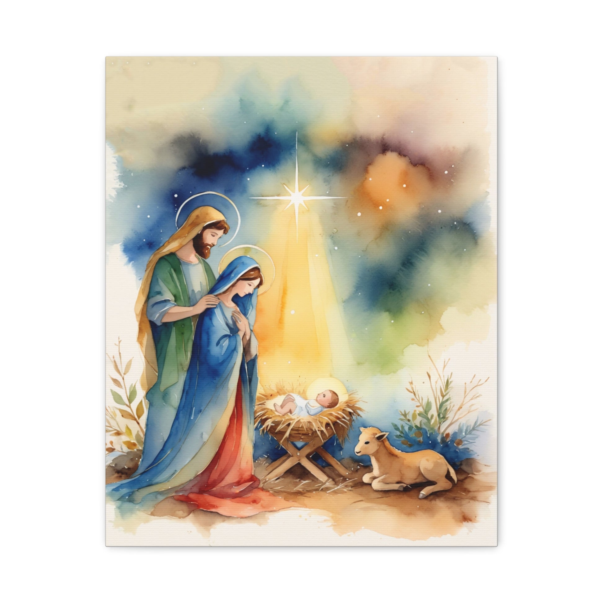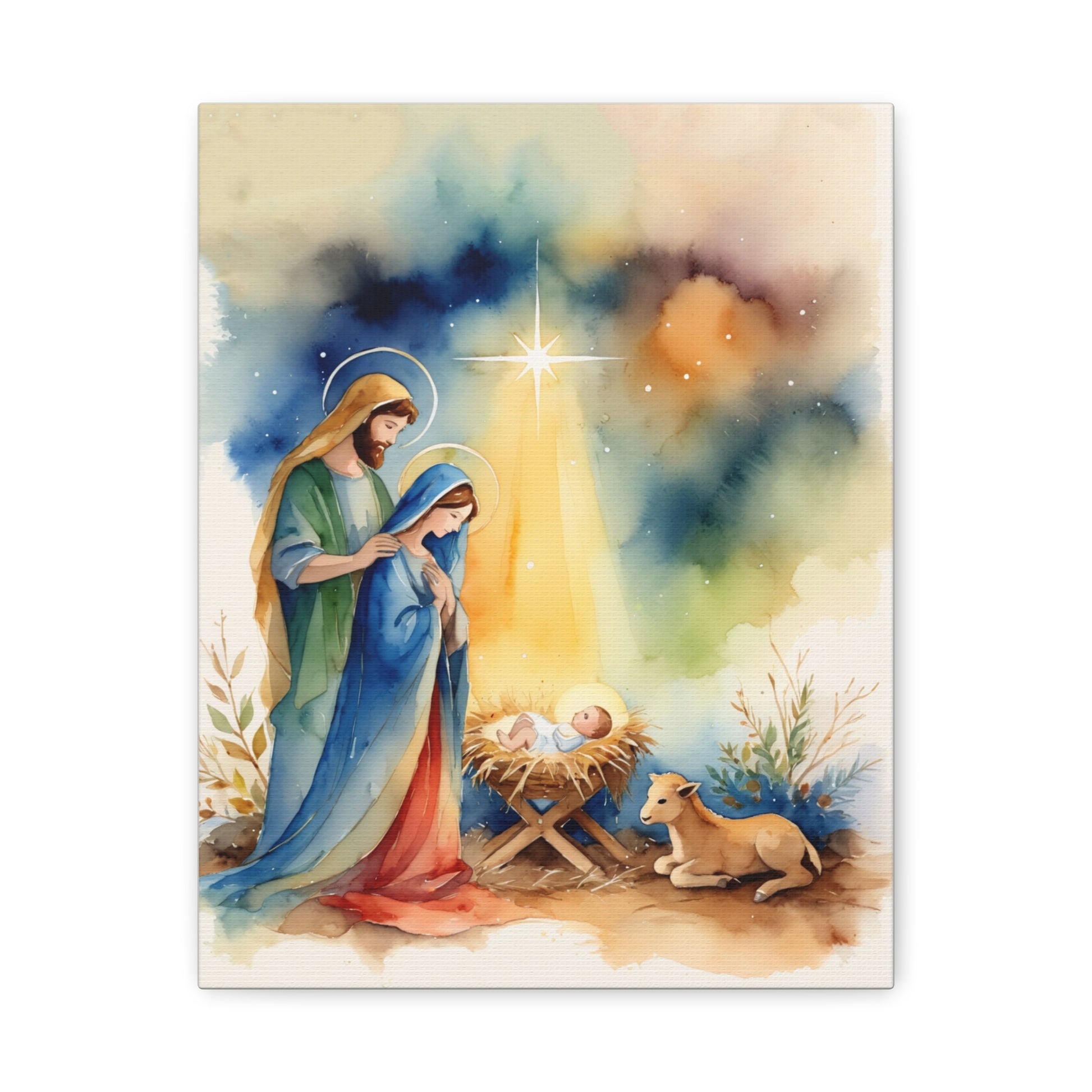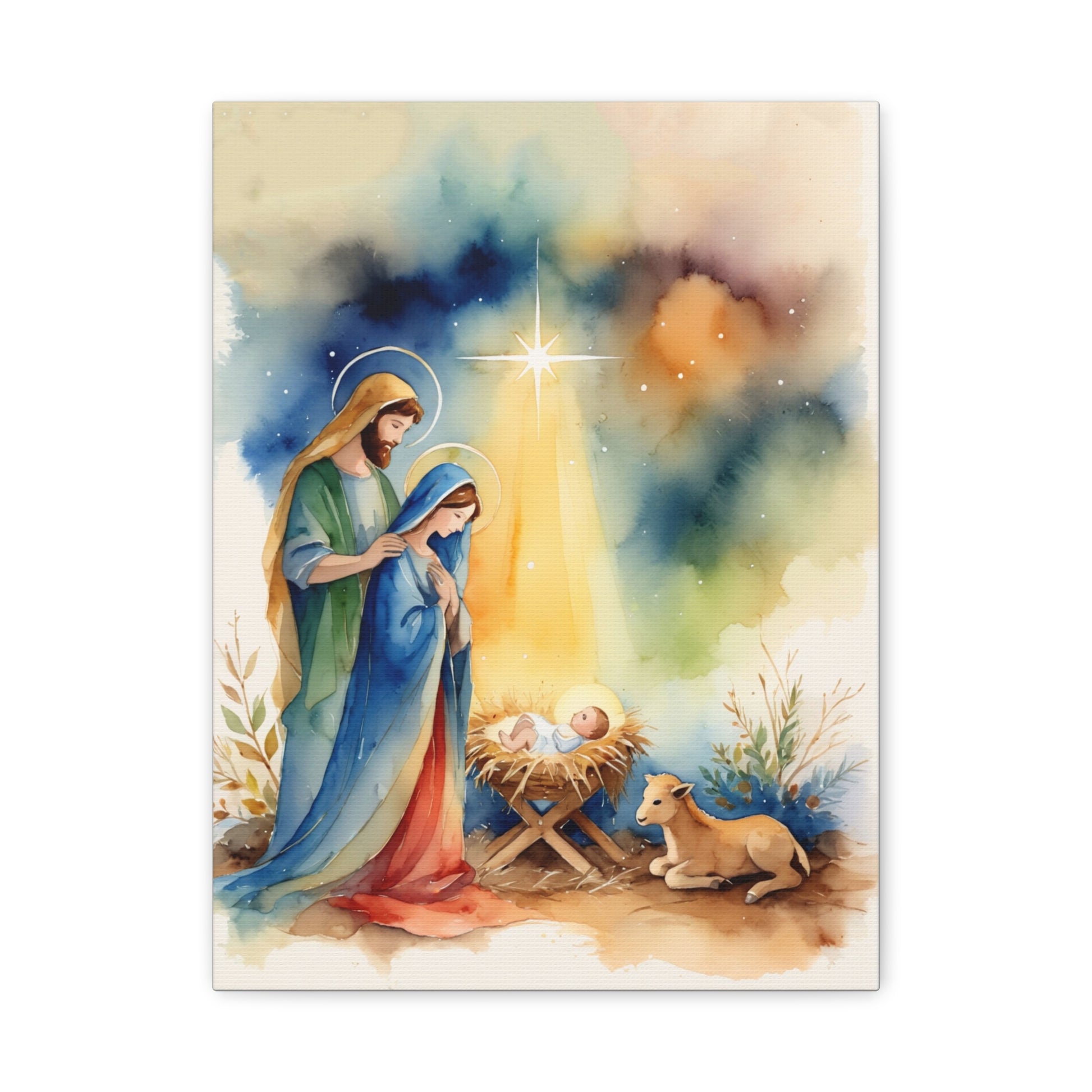 Nativity Scene Holy Family Canvas Wall Art, Christian Decor