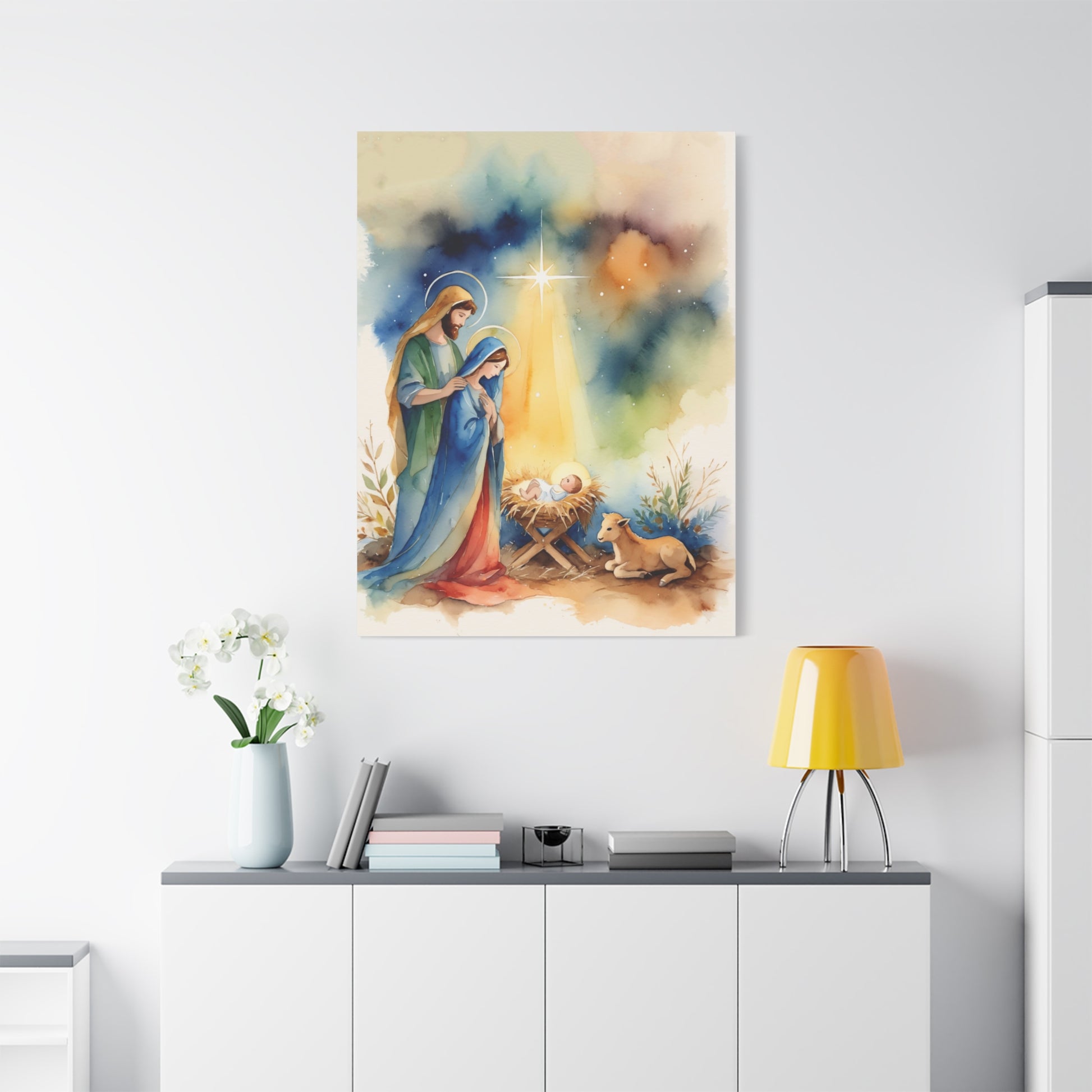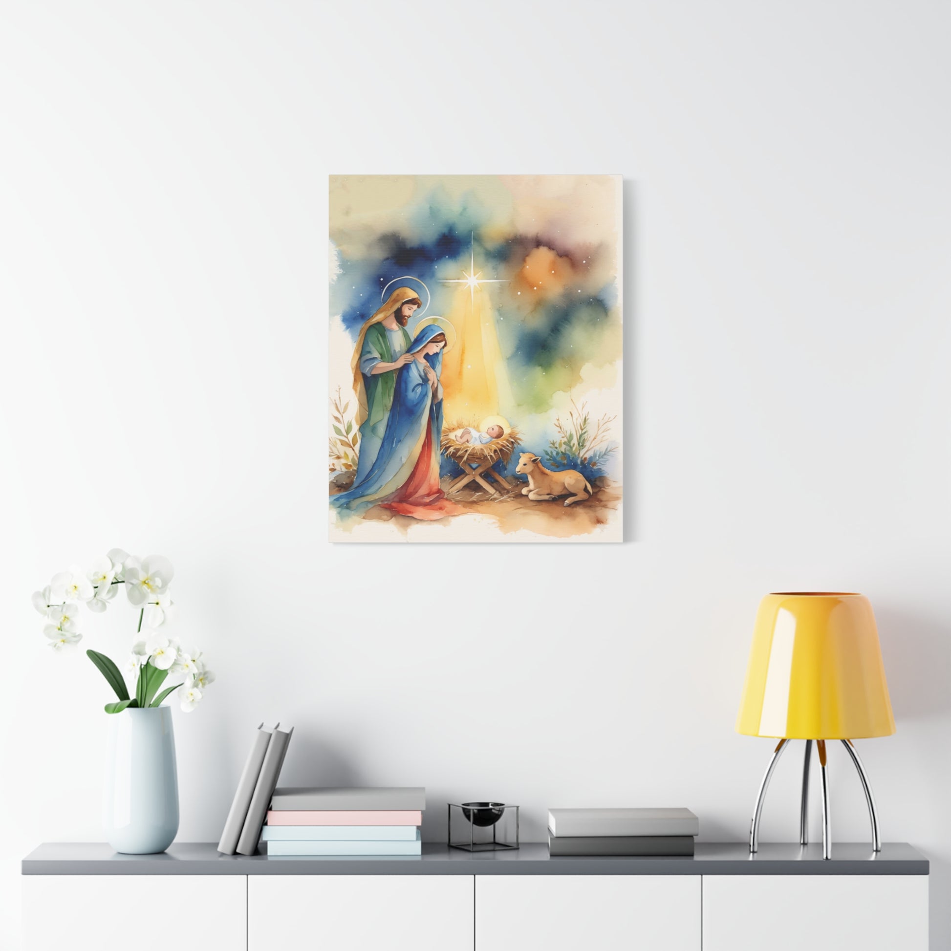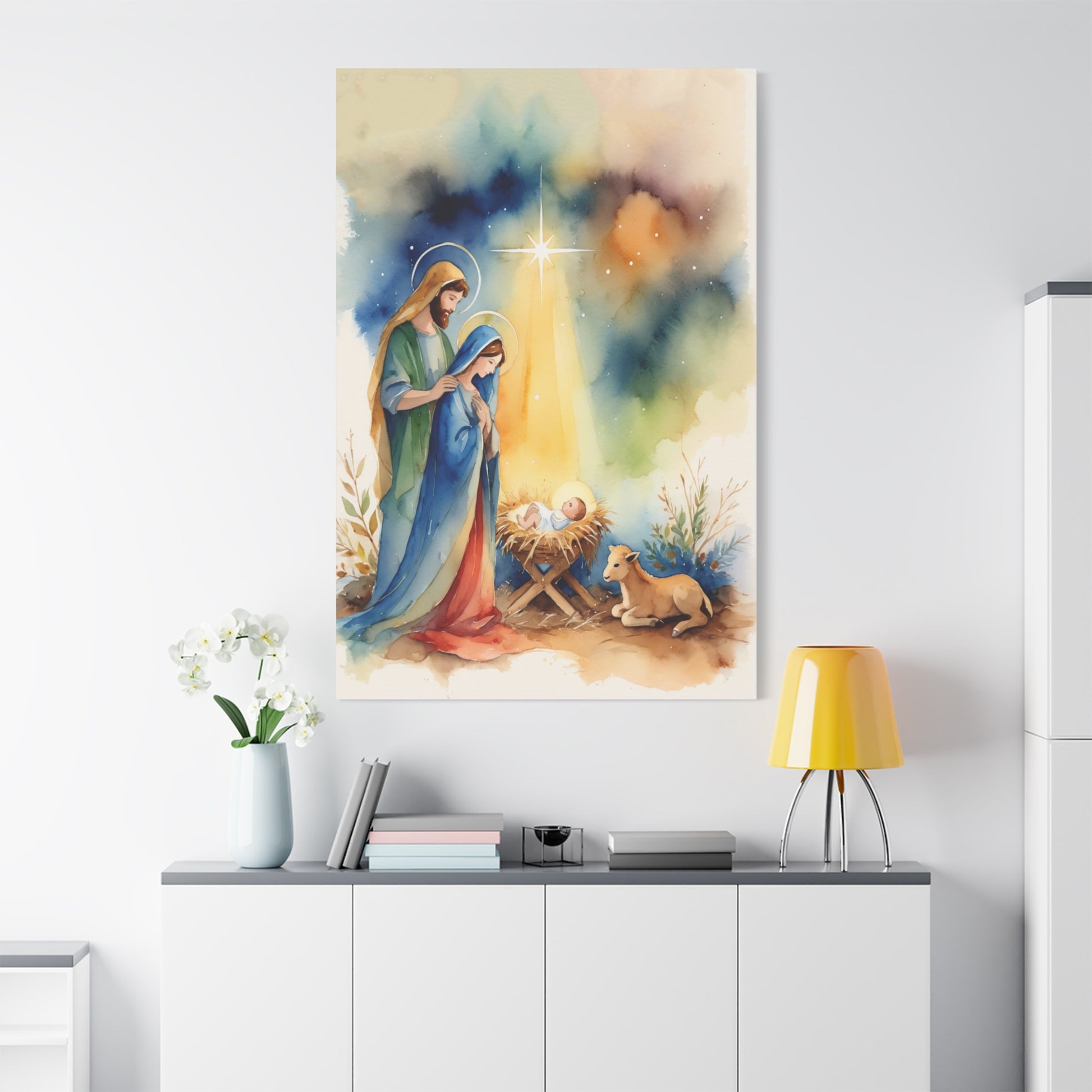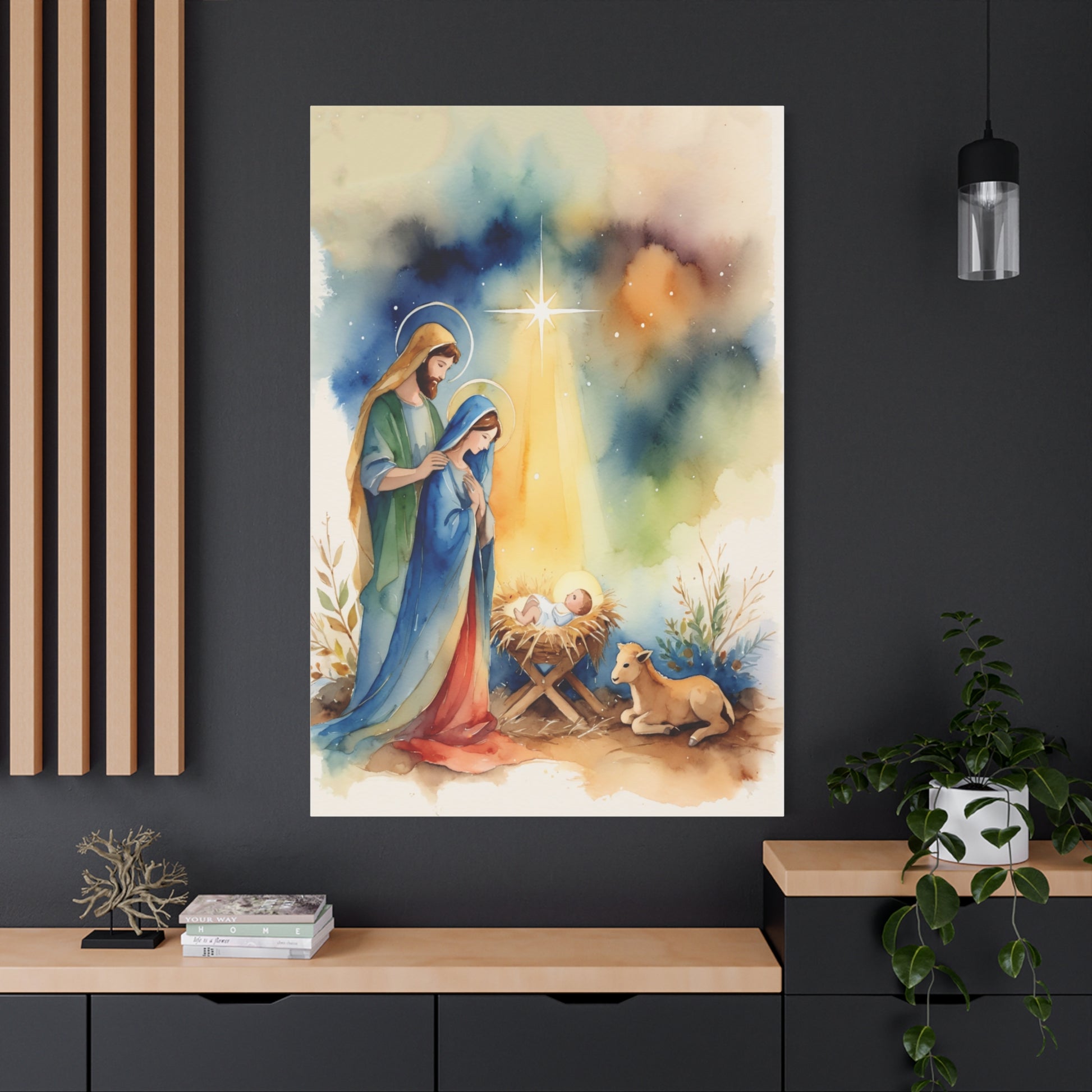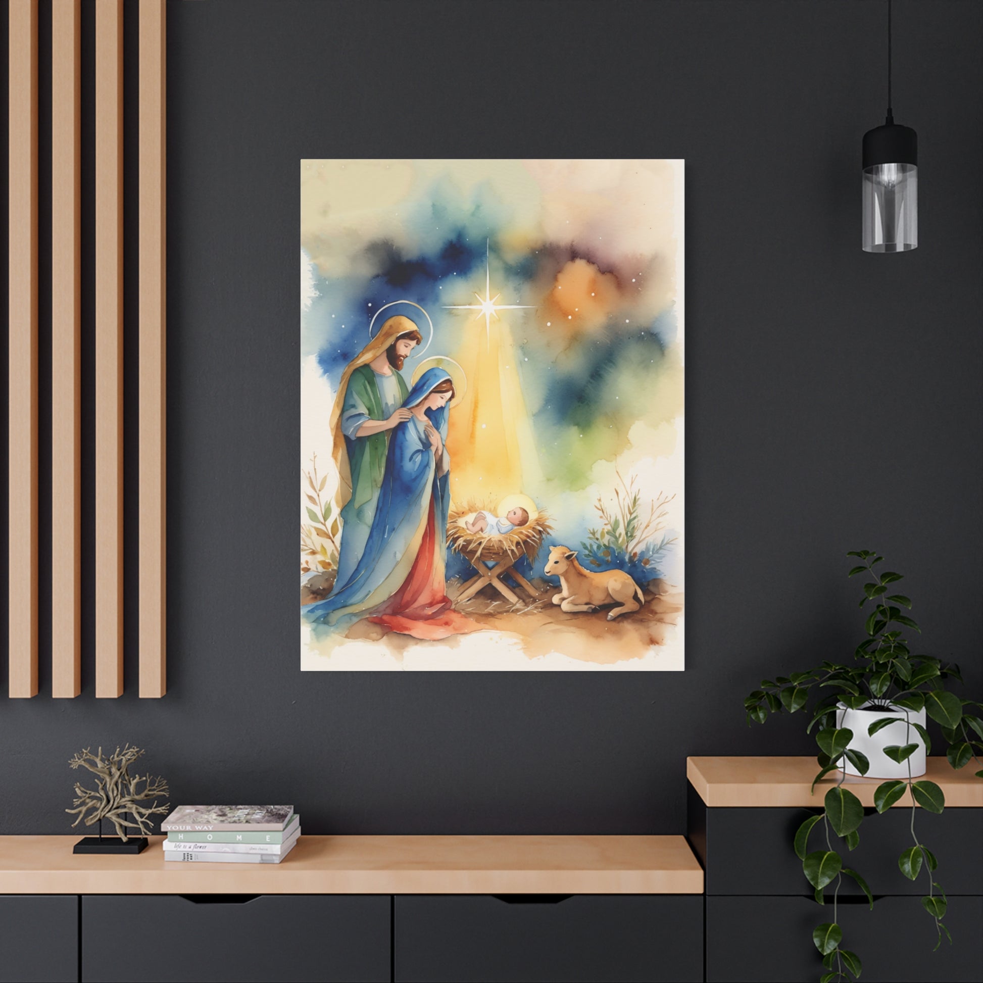 Nativity Scene Holy Family Canvas Wall Art, Christian Decor