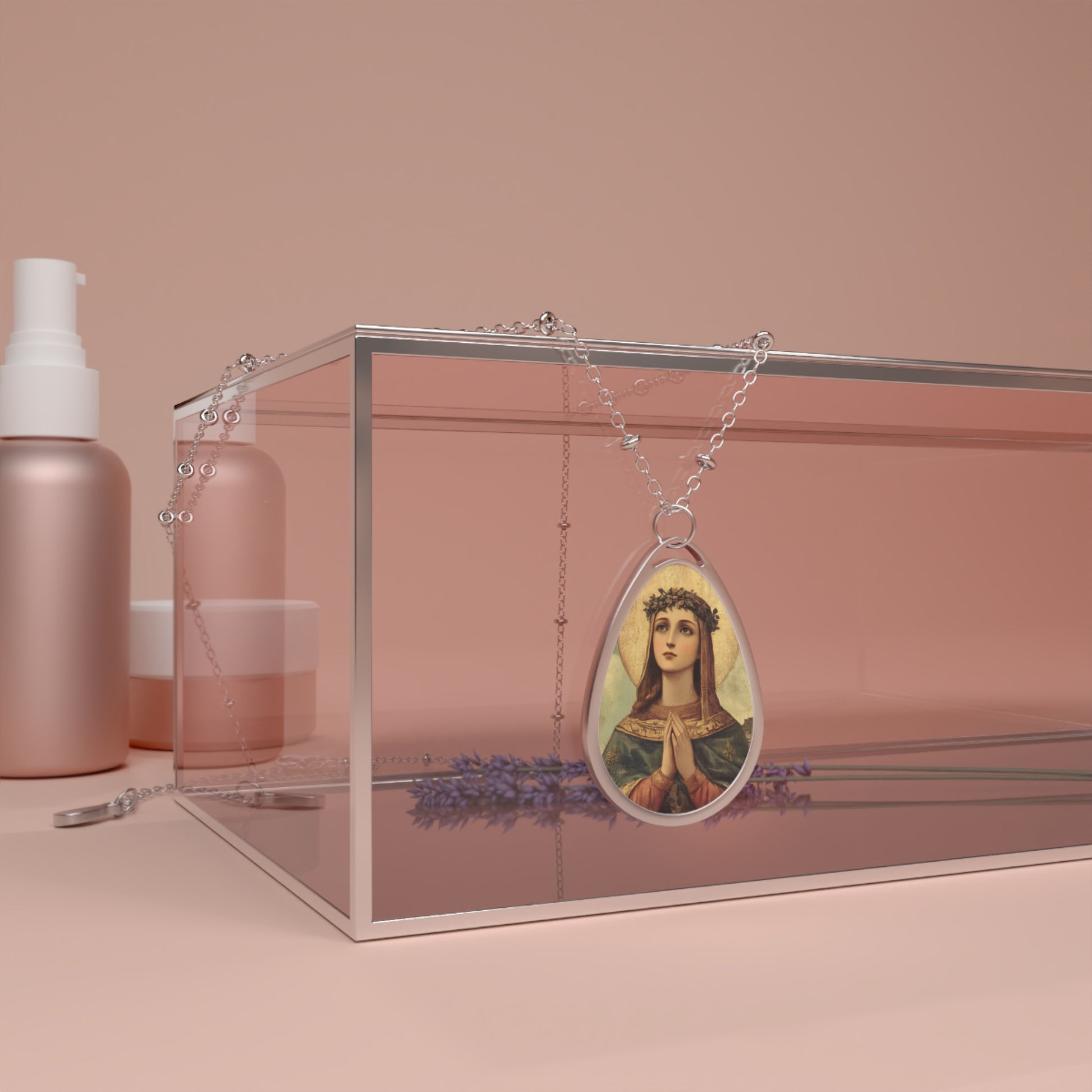 Necklace Pendant with Sacred Heart, Religious Jewelry, Oval Necklace, Christian Gift, Spiritual Accessory, Vintage Style