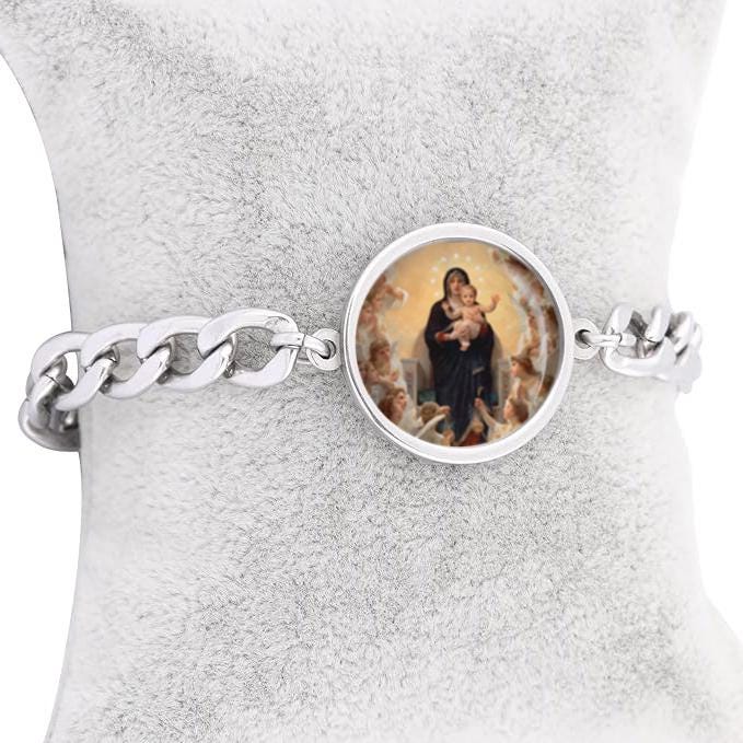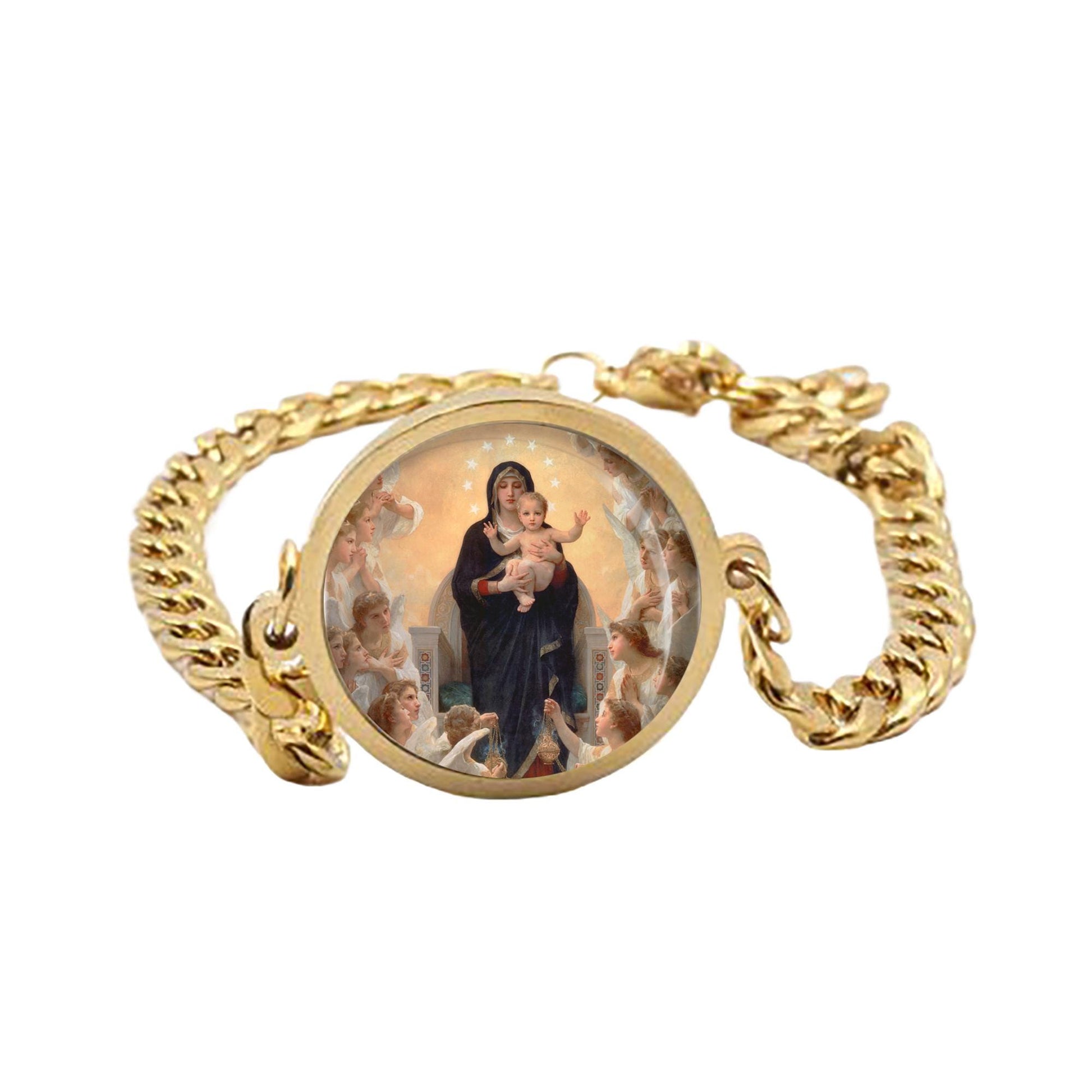 Our Lady Angels Mary Curb Bracelet Gold or Silver tone Religious Jewelry Simple Chain