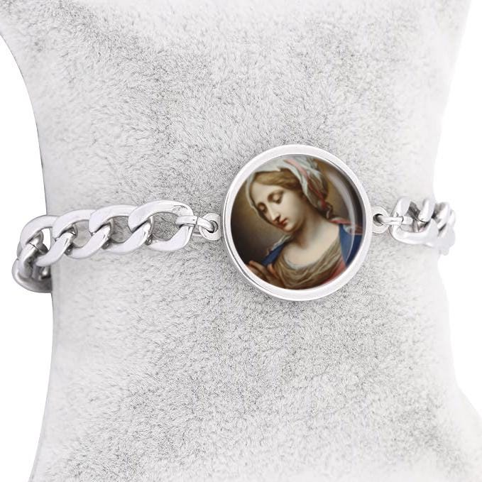 Our Lady Annunciate Mary Curb Bracelet Gold or Silver tone Religious Jewelry Simple Chain